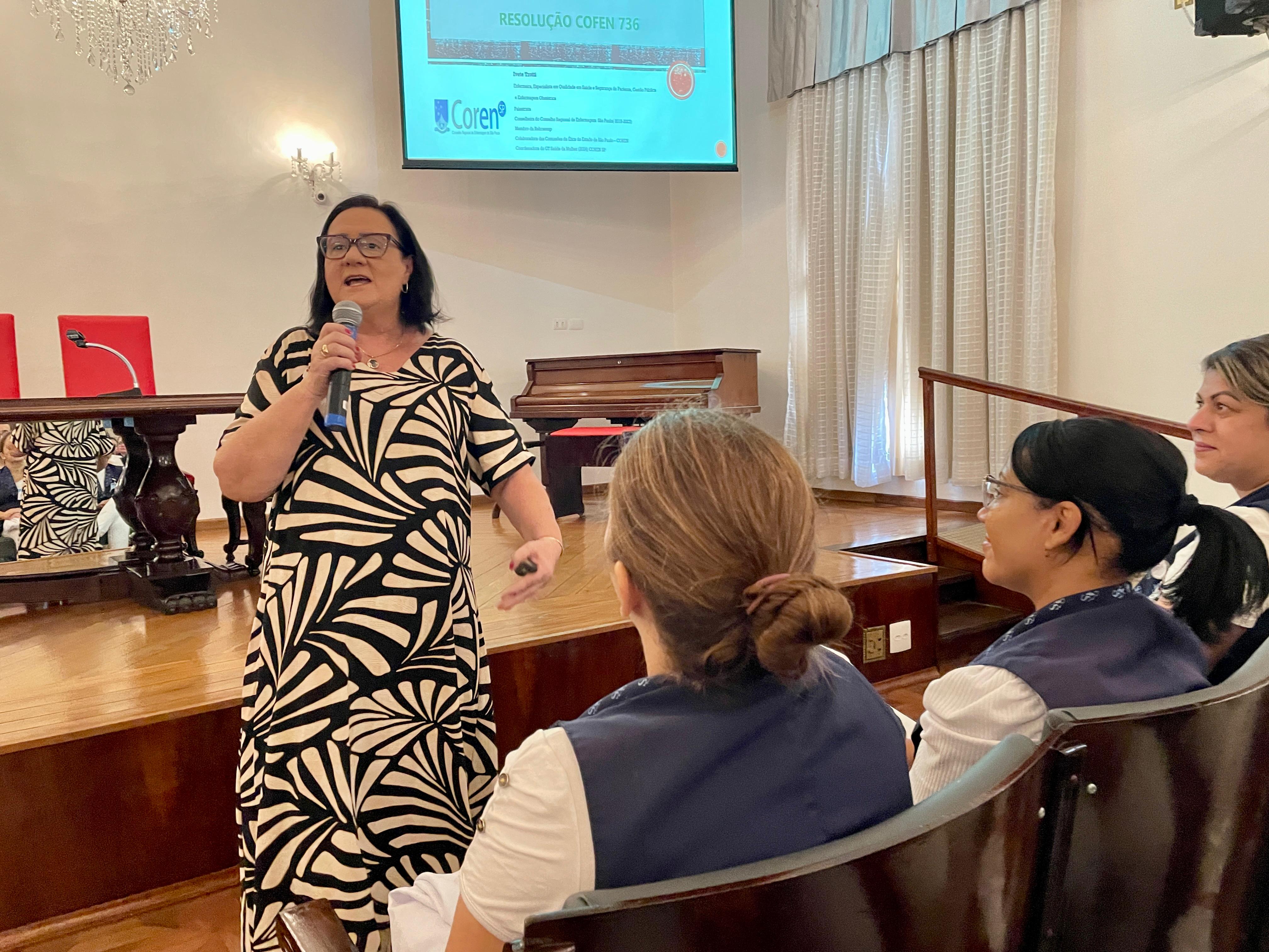 No dia 17/4, a nova gestão da enfermagem da Santa Casa de Santos promoveu uma palestra sobre a Resolução COFEN 736, ministrada pela enfermeira do COREN, Ivete Trotti, especialista em Qualidade em Saúde e Segurança do Paciente.