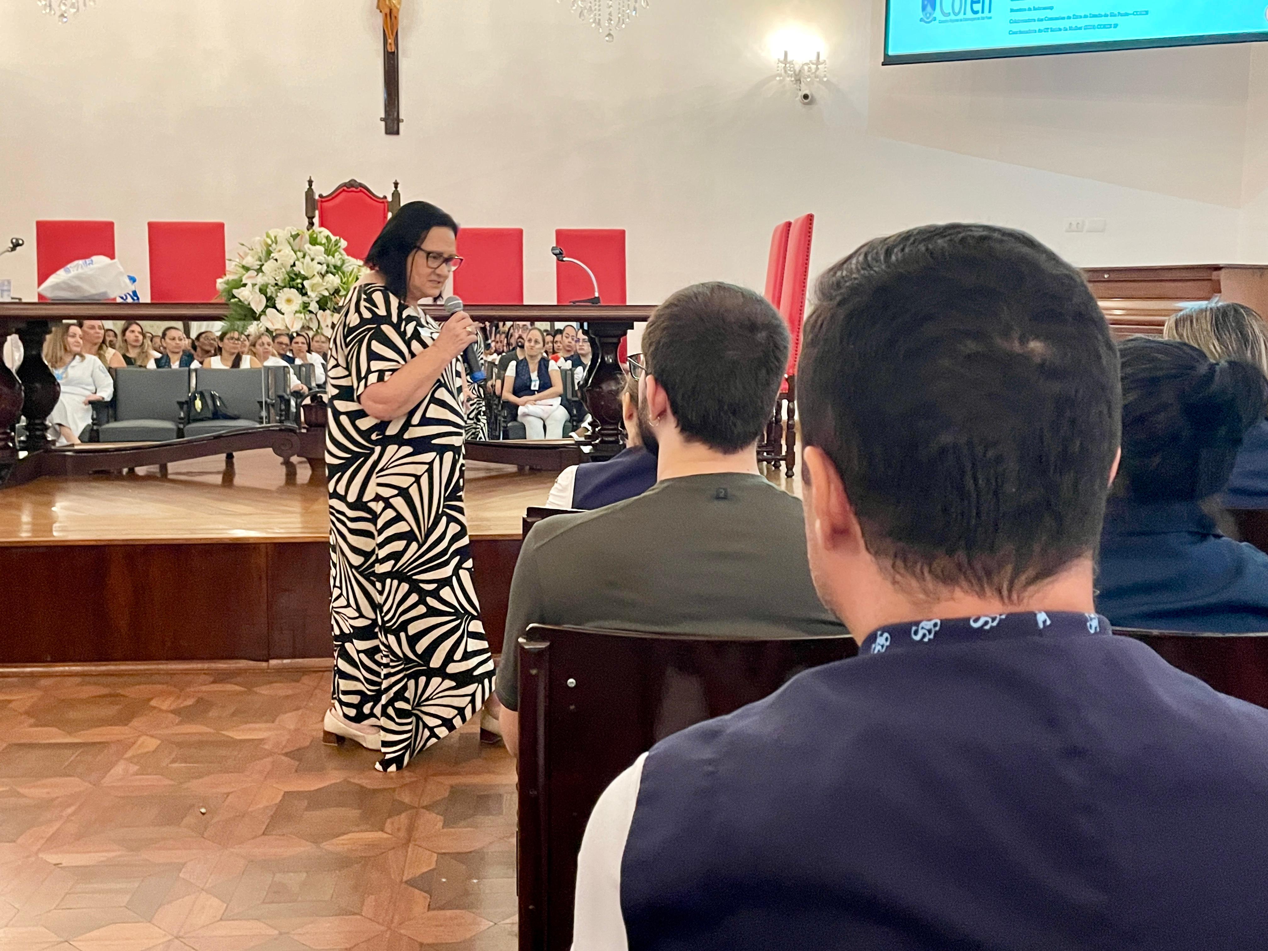 Rita Rocha destacou a importância do envolvimento do profissional de enfermagem com o paciente e que esta relação precisa ser estreitada, resgatando a “essência de ser enfermeiro”.