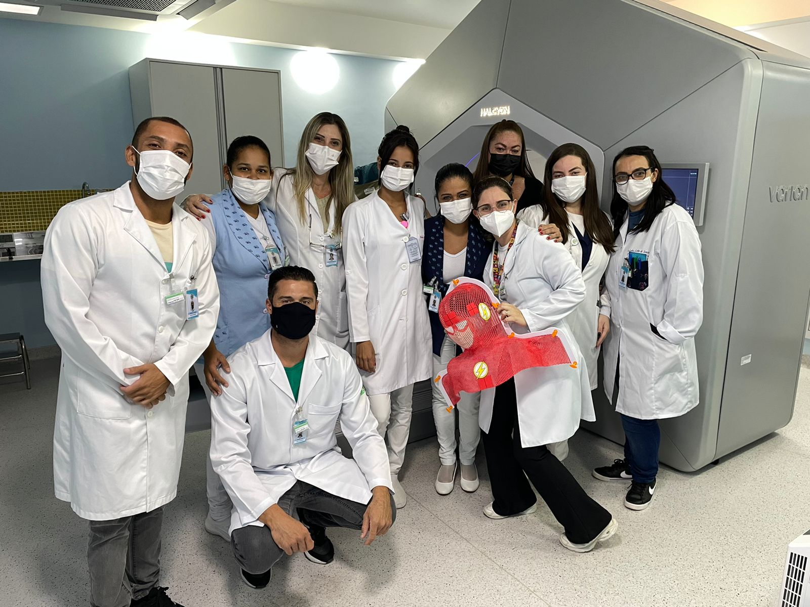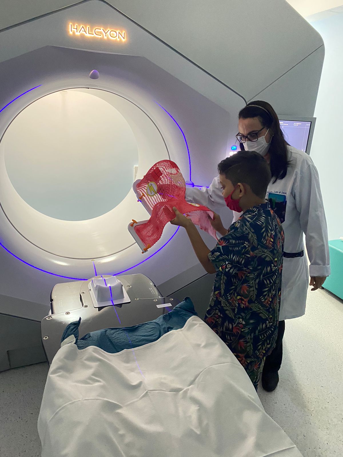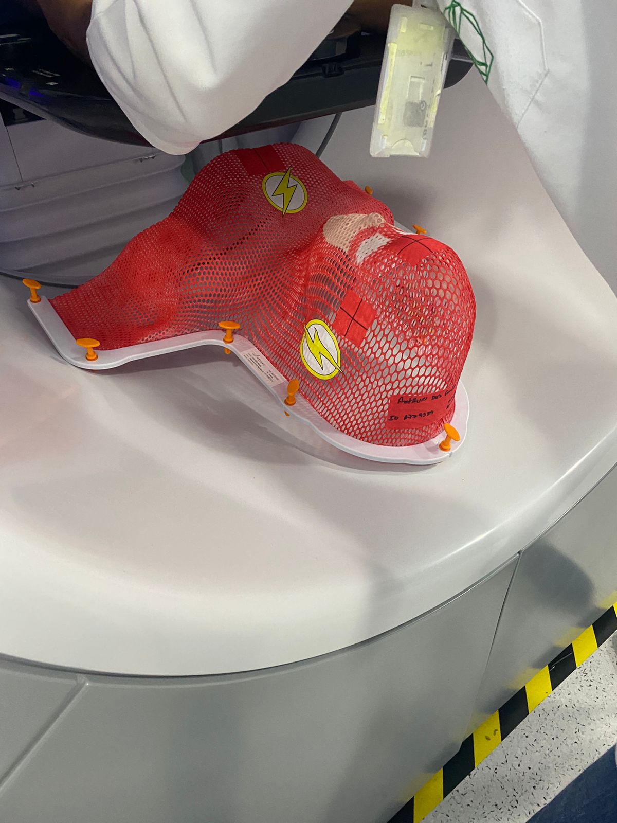 Para colocar em prática, Deborah contou com a ajuda dos colaboradores do serviço de Radioterapia, que ficaram muito entusiasmados com a ideia e se dedicaram na produção da primeira máscara pediátrica ilustrada com o “Flash”, super-herói da DC Comics.