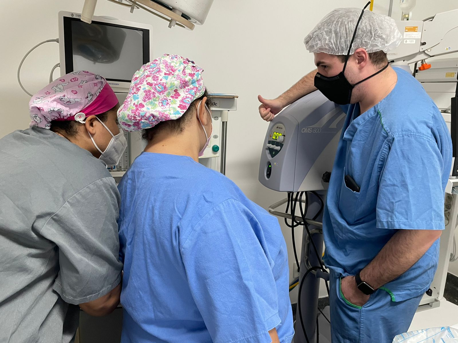 Enfermeiros e técnicos de enfermagem do Centro Cirúrgico Oftalmológico da Santa Casa de Santos receberam treinamento para utilização dos novos equipamentos recém adquiridos pela Irmandade. Foram dois dias de capacitação liderados pela empresa Adapt, reconhecida no mercado, e prepararam 100% dos envolvidos em cirurgias oftalmológicas. Os aparelhos são de última geração e o hospital agora conta com o centro cirúrgico oftalmológico mais completo e moderno da Região.