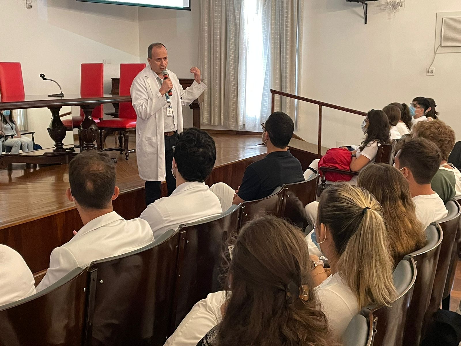 No dia 1º de fevereiro, a Santa Casa de Santos recebeu os estudantes do 6º ano de Medicina da UNILUS - Centro Universitário Lusíada para reunião de integração que marca o início do ano letivo na instituição. O encontro aconteceu no consistório, e o coordenador de Ensino do hospital, Dr. Maurício Sgarbi, apresentou aos alunos as principais normas que devem ser respeitadas durante o período de estágio, como também orientou sobre o uso dos armários, estacionamento, identificação no acesso, documentos necessários, entre outros assuntos relacionados.