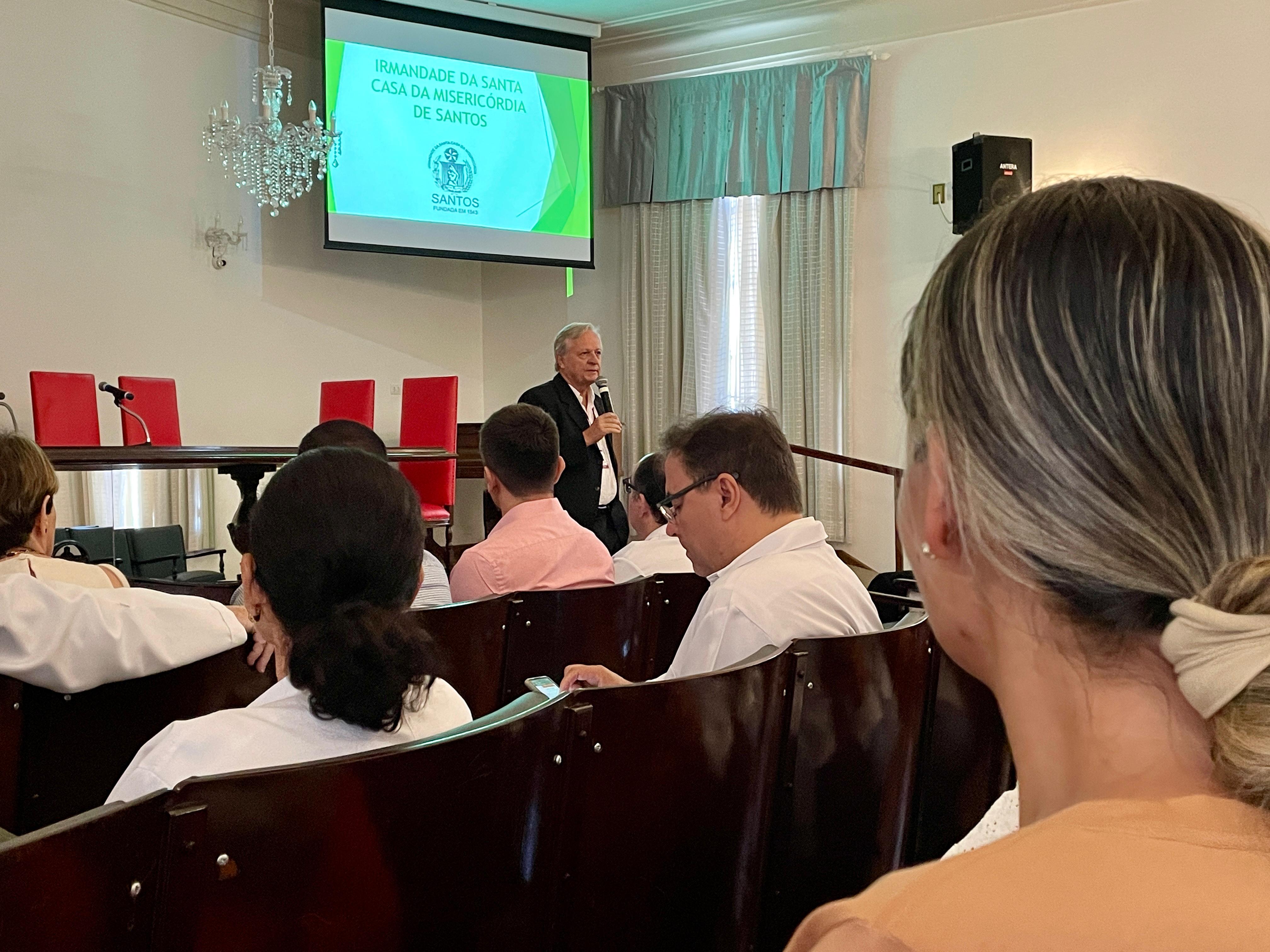 Dando sequência às palestras, o médico infectologista da Santa Casa, Dr. Sérgio Feijoó, explicou o papel do Serviço de Controle de Infecção Hospitalar e a importância da higienização das mãos em todos os momentos. Dr. Sérgio destacou que, apesar de parecer que está falando o óbvio, infelizmente constata-se que somente 30% estão fazendo o "óbvio". Assim, ele explicou inúmeras situações que a atenção redobrada nesta questão deve ser obrigatória.