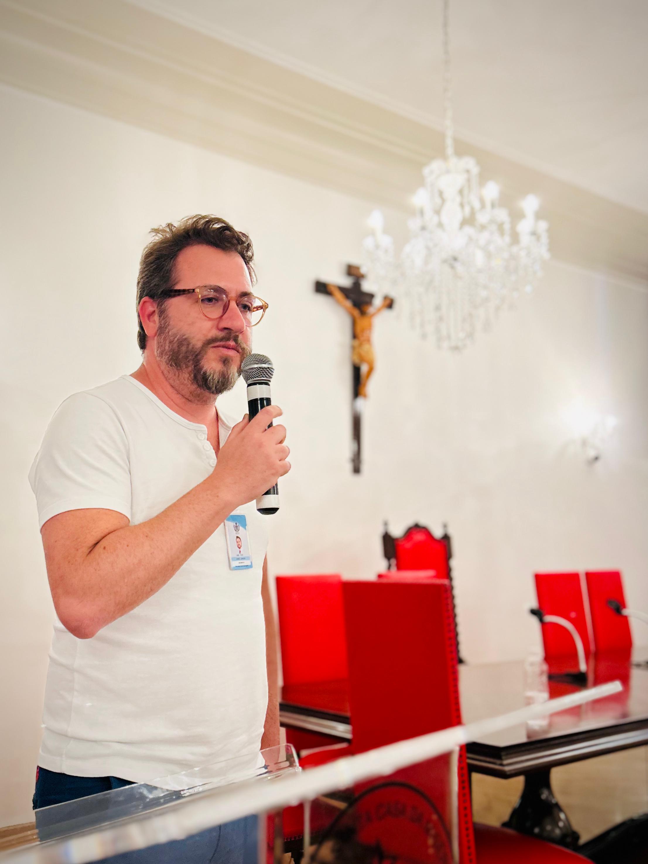 Durante a apresentação, o palestrante abordou os principais desafios da Odontologia Domiciliar em pacientes idosos, destacando a importância do olhar humanizado e das estratégias de atendimento que respeitam as limitações físicas, emocionais e sociais desses pacientes. Em seguida, após um breve coffee-break, ele retomou a fala com o tema “Soluções na Odontologia Domiciliar”, propondo caminhos viáveis para o fortalecimento dessa prática no contexto do cuidado integral em saúde.