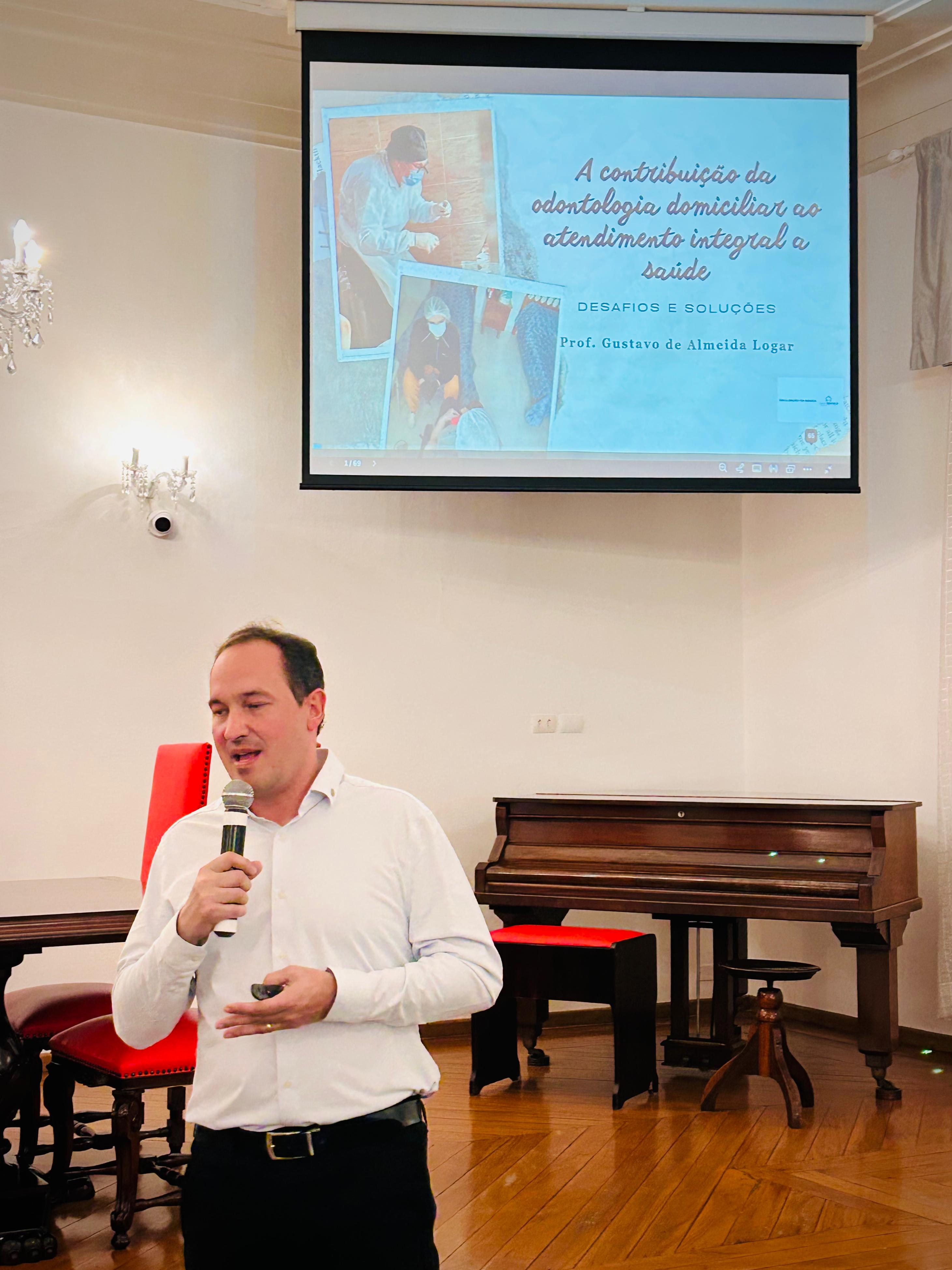 O destaque da programação foi a palestra ministrada pelo Prof. Me. Gustavo Logar, profissional amplamente reconhecido por sua atuação em Odontologia Hospitalar e Domiciliar. Formado pela UNESP de Araçatuba, Logar possui especializações em Prótese e Implante, além de mestrado em Fisiopatologia Animal pela UNOESTE, onde também atua como docente nas disciplinas de Microbiologia, Odontogeriatria, Odontologia para Pacientes Especiais e Estágios em Odontologia Hospitalar e Domiciliar.