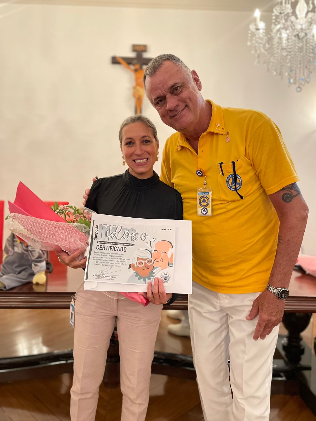 Antes de iniciar as palestras, foi exibido um vídeo institucional em homenagem ao Dia do Idoso, celebrado em 1º de outubro, reforçando a importância do respeito, da inclusão e da valorização da terceira idade. O cerimonialista do evento foi o voluntário amarelinho, Antonio Carlos.