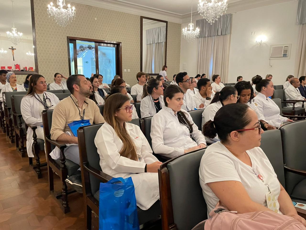 Em seguida, o Vice-Diretor Clínico Dr. Eloi Moccellin, destacou a importância de iniciativas como essa para a qualificação contínua dos profissionais de saúde, especialmente diante do envelhecimento progressivo da população brasileira. “Investir em conhecimento e atualização permanente garante não apenas melhores práticas assistenciais, mas também um atendimento cada vez mais humanizado e seguro para os idosos”.
