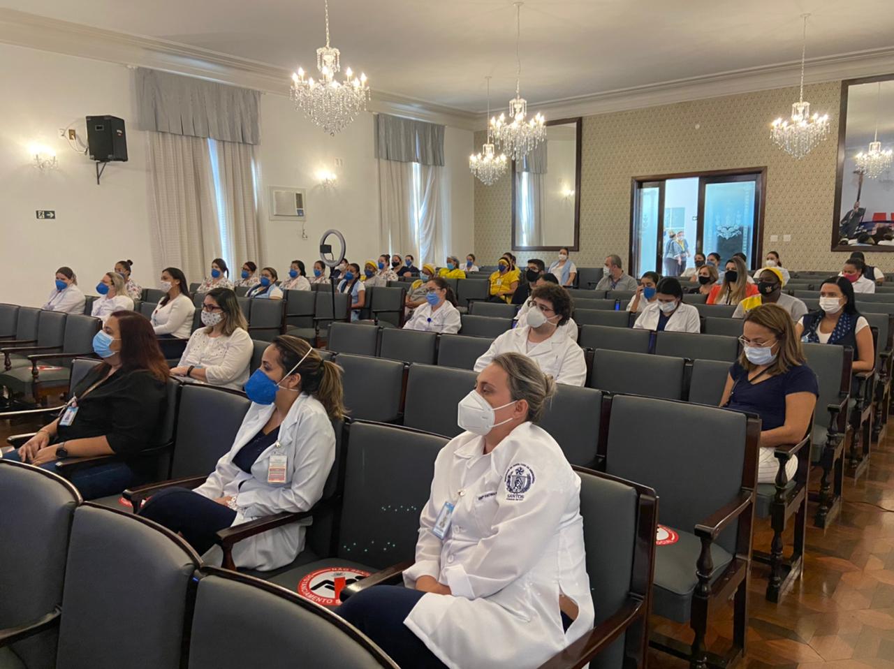 O evento “Semana de Enfermagem 2021” é uma realização da Santa Casa de Santos e apoios da Floricultura Gardênia, Stiletto Calçados, Amanda Cardoso Jóias, Design Gallery e Cine Roxy.