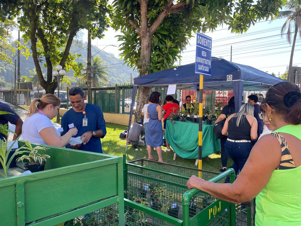 A Feira de Mudas promovida periodicamente pelo Setor de Parques e Jardins da Santa Casa de Santos costuma sempre ser um sucesso, mas a edição de hoje, dia 24/4, especialmente, foi surpreendente, afinal, precisou ser encerrada pouco depois de começar, com todos os vasinhos vendidos em menos de uma hora.