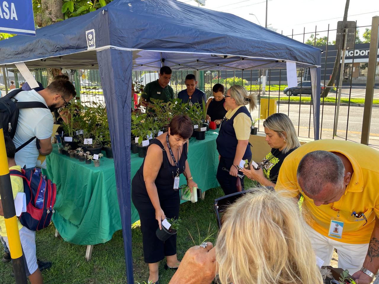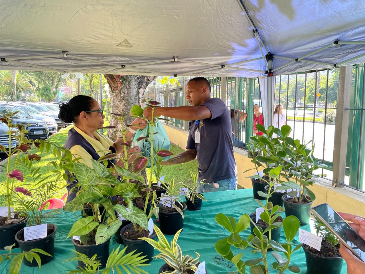 Entre os interessados em adquirir as mudas, estavam funcionários e pessoas que passavam pelo local, como pacientes e visitantes. Destaque para a enfermeira Raquel, da Central de Vagas, que não perde uma feira e sempre compra várias mudinhas.