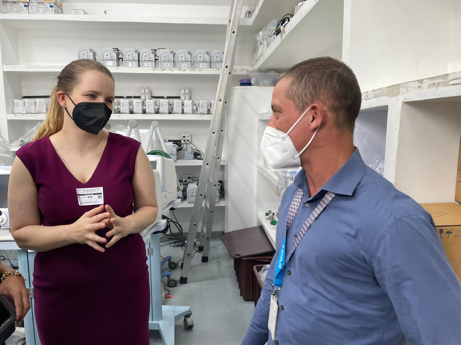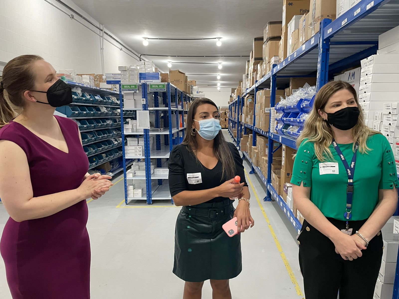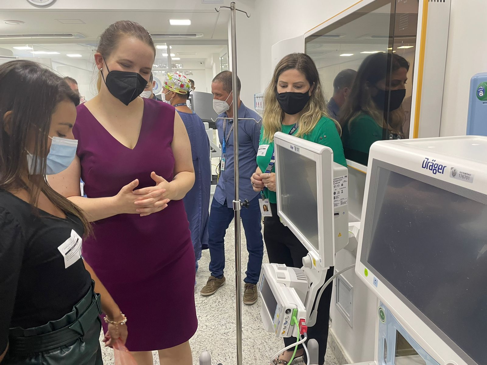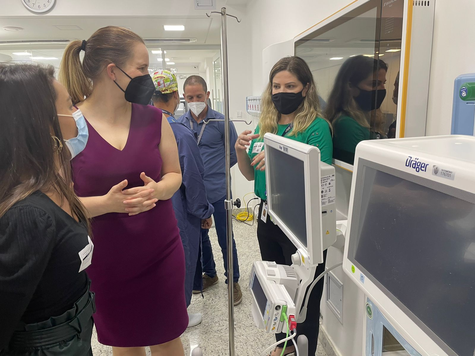 Melanie Ruge, Gerente de Negócios Global das Américas, veio ao hospital conhecer o modelo de gestão de recursos aplicado pela instituição.
