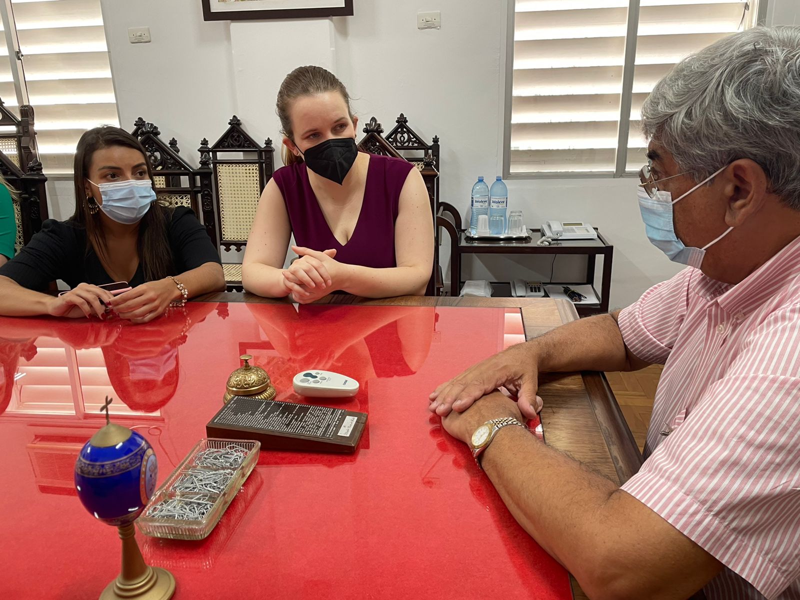 A comitiva foi recebida pelo vice provedor, Cacá Teixeira, e também pelo Supervisor da Central de Equipamentos e Engenharia Clínica, Márcio Neves, e Coordenadores, Vinícius Daval e Lucas Barbosa. O vice provedor contou um pouco da história da instituição, e explanou sobre algumas das etapas de modernização do hospital, como a renovação do parque tecnológico.