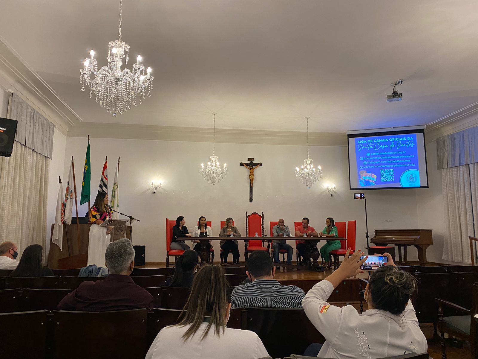 Promover a troca de conhecimento e compartilhar as experiências vividas na pandemia, foi o objetivo do ‘I Simpósio de Fisioterapia’ da Santa Casa de Santos realizado nesta quarta-feira (13), mesma data em que se comemora o Dia do Fisioterapeuta e Terapeuta Ocupacional. Com o tema principal, Fisioterapia – Atualidades e Desafios, o evento que durou cerca de cinco horas, gratuito e aberto ao público externo, com inscrições e certificados, direcionado aos profissionais e estudantes da especialidade de Fisioterapia. Participaram cerca de 100 pessoas.