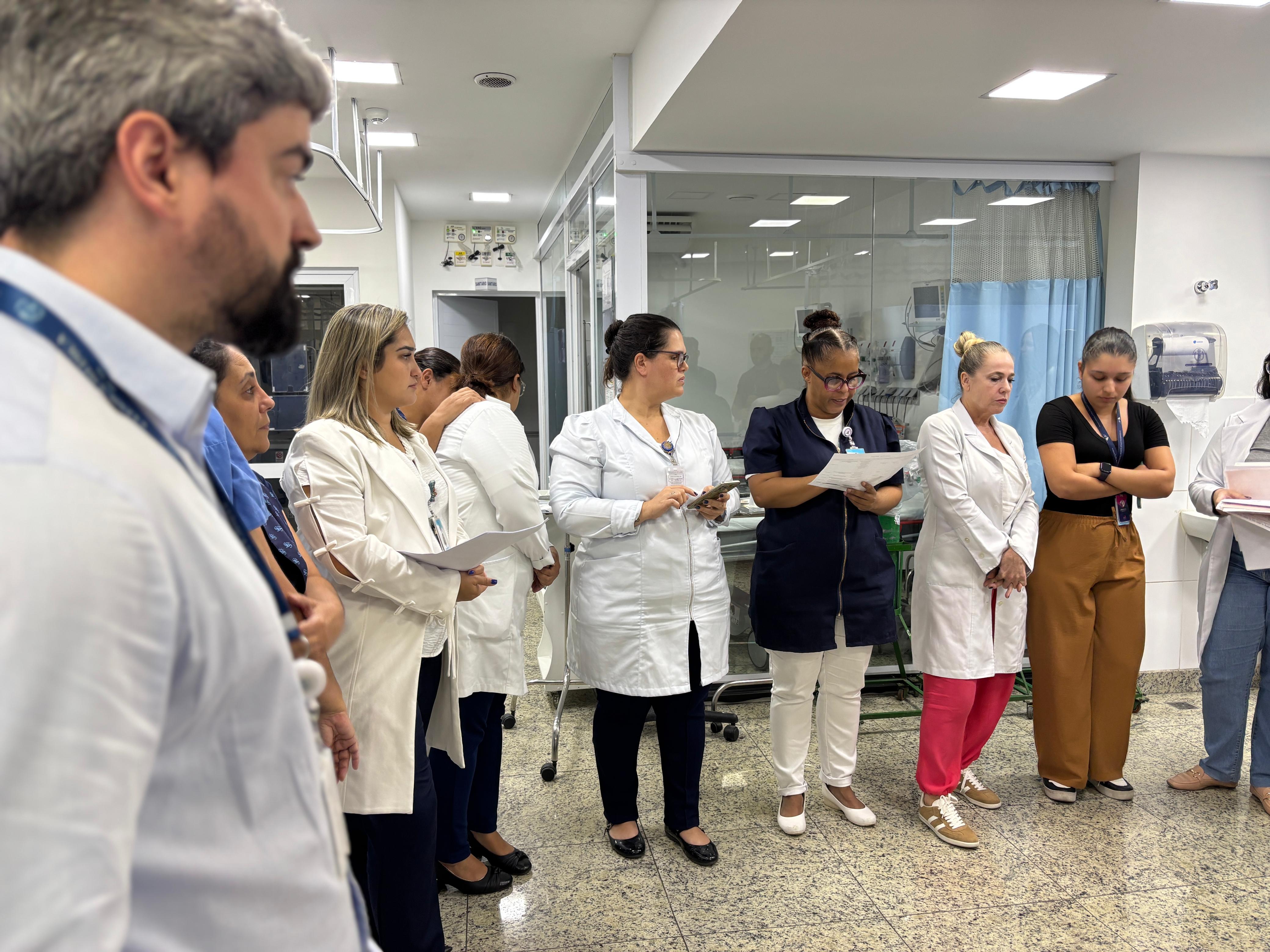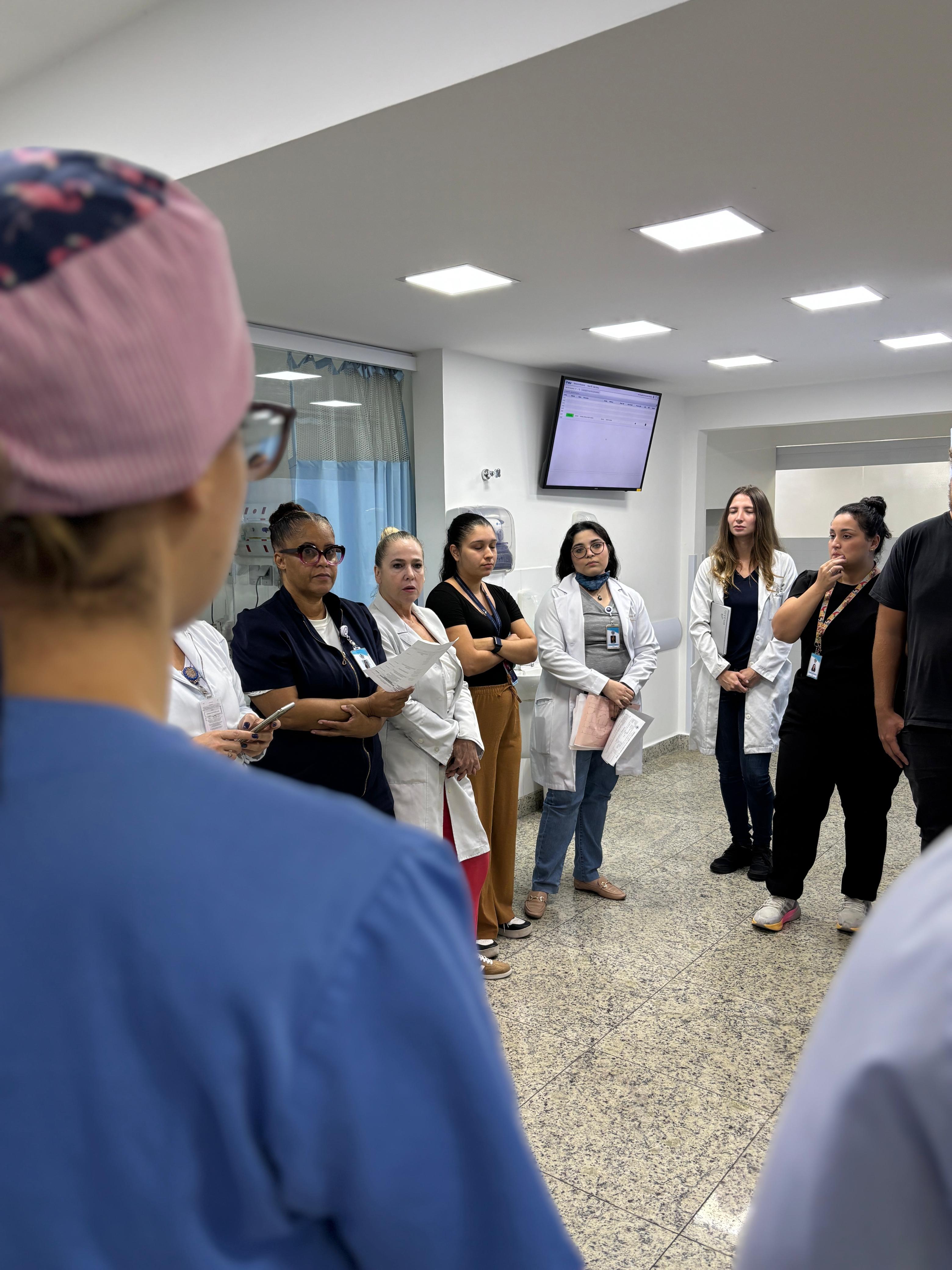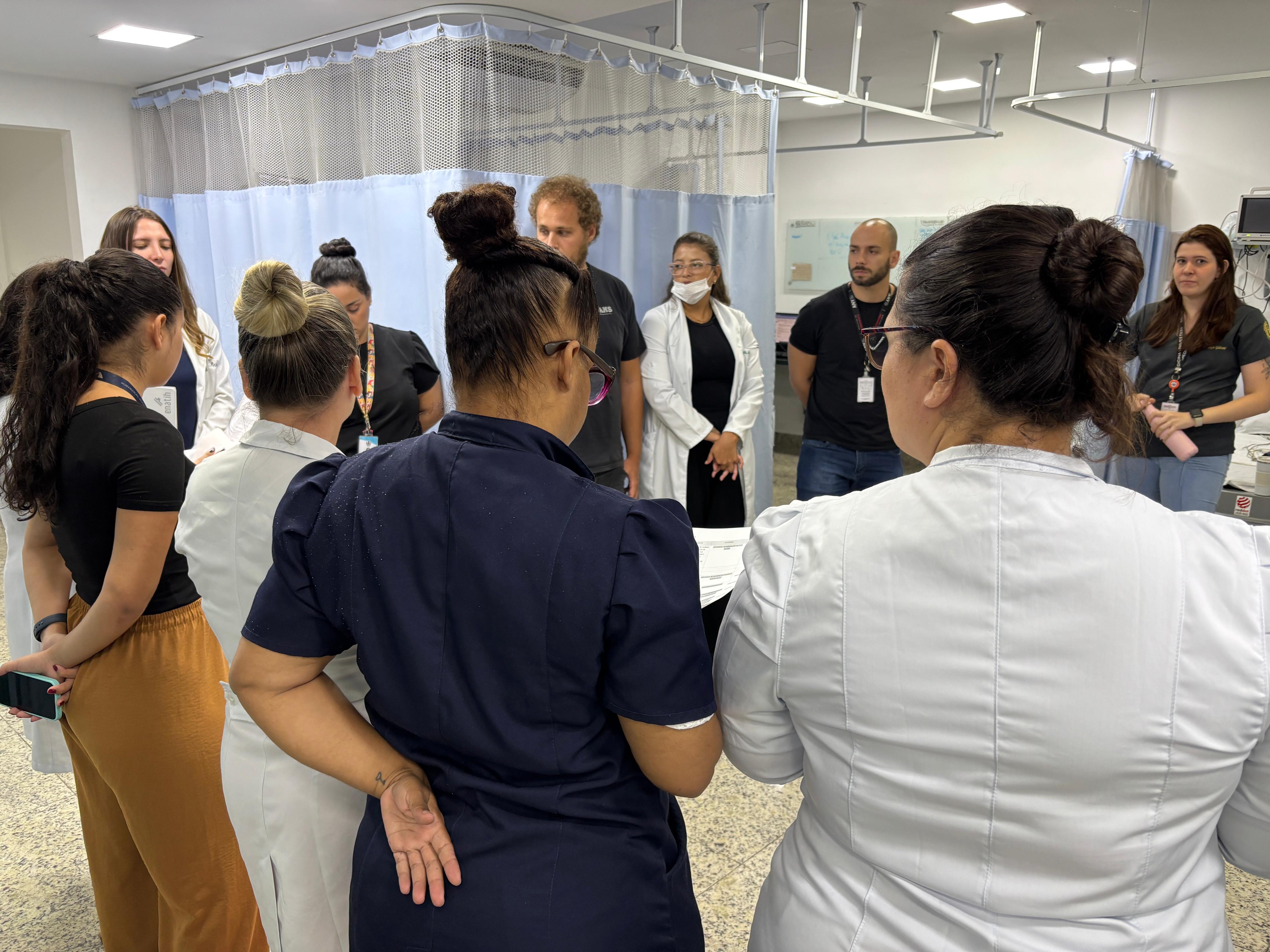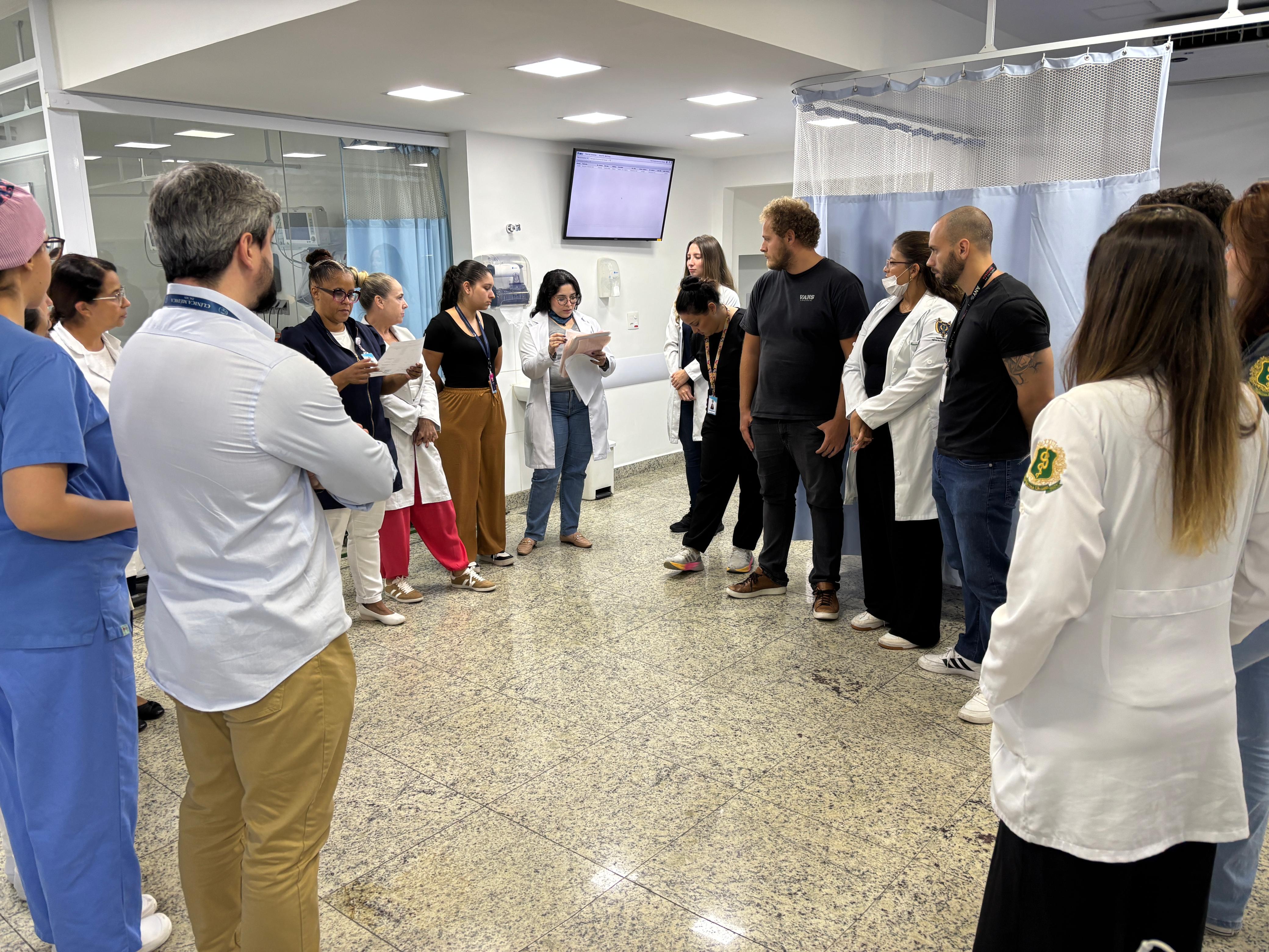 No pronto socorro adulto da instituição, o Safety Huddle é realizado em três períodos (manhã, tarde e noite) e tem como objetivo identificar riscos de segurança iminentes, compartilhar eventos ocorridos, promover a comunicação entre os membros da equipe, e reforçar prioridades e boas práticas. O encontro tem duração máxima de 10 minutos e tem a participação da equipe multidisciplinar, enfermeiros, médicos, lideranças e central de vagas.