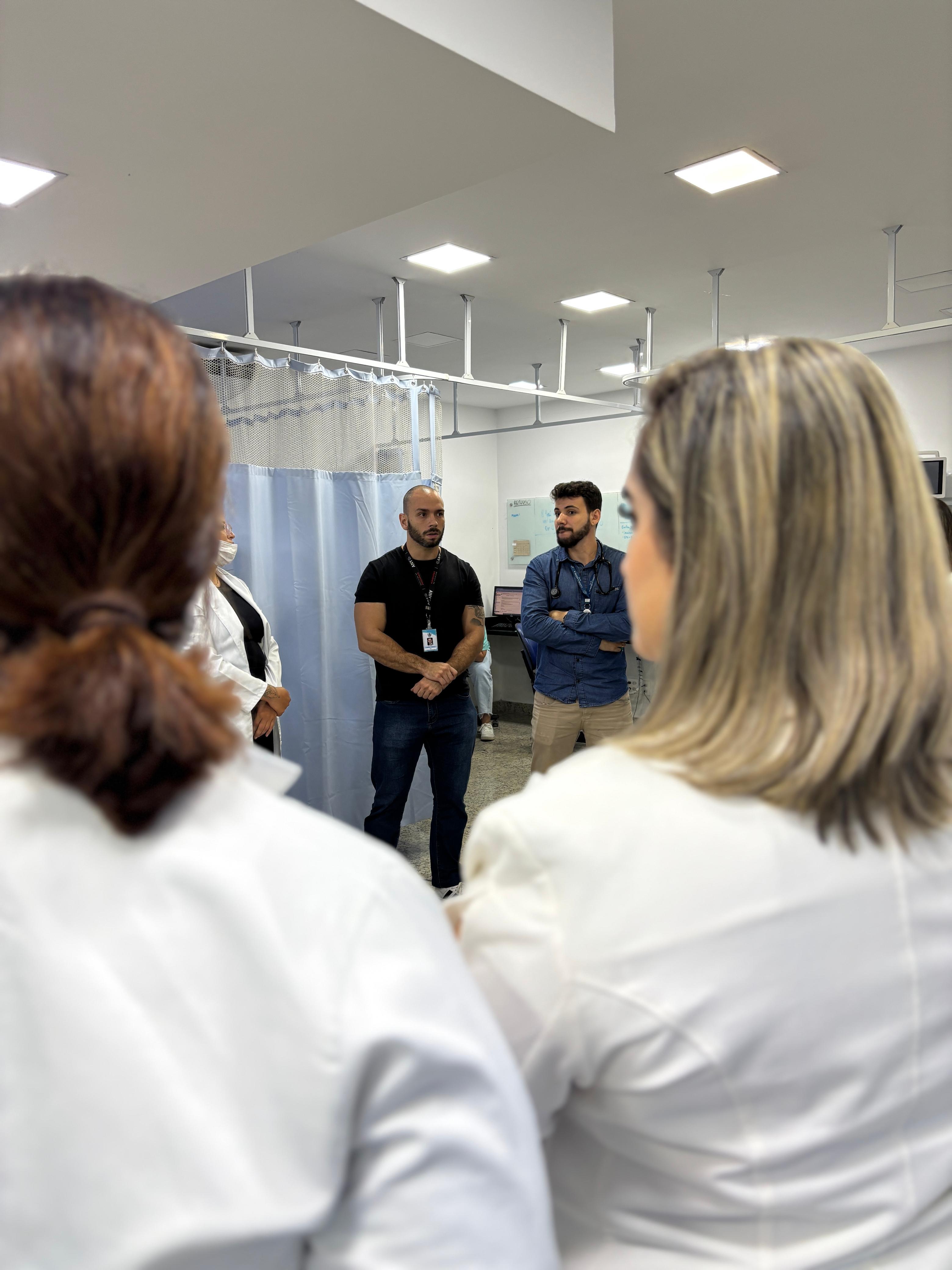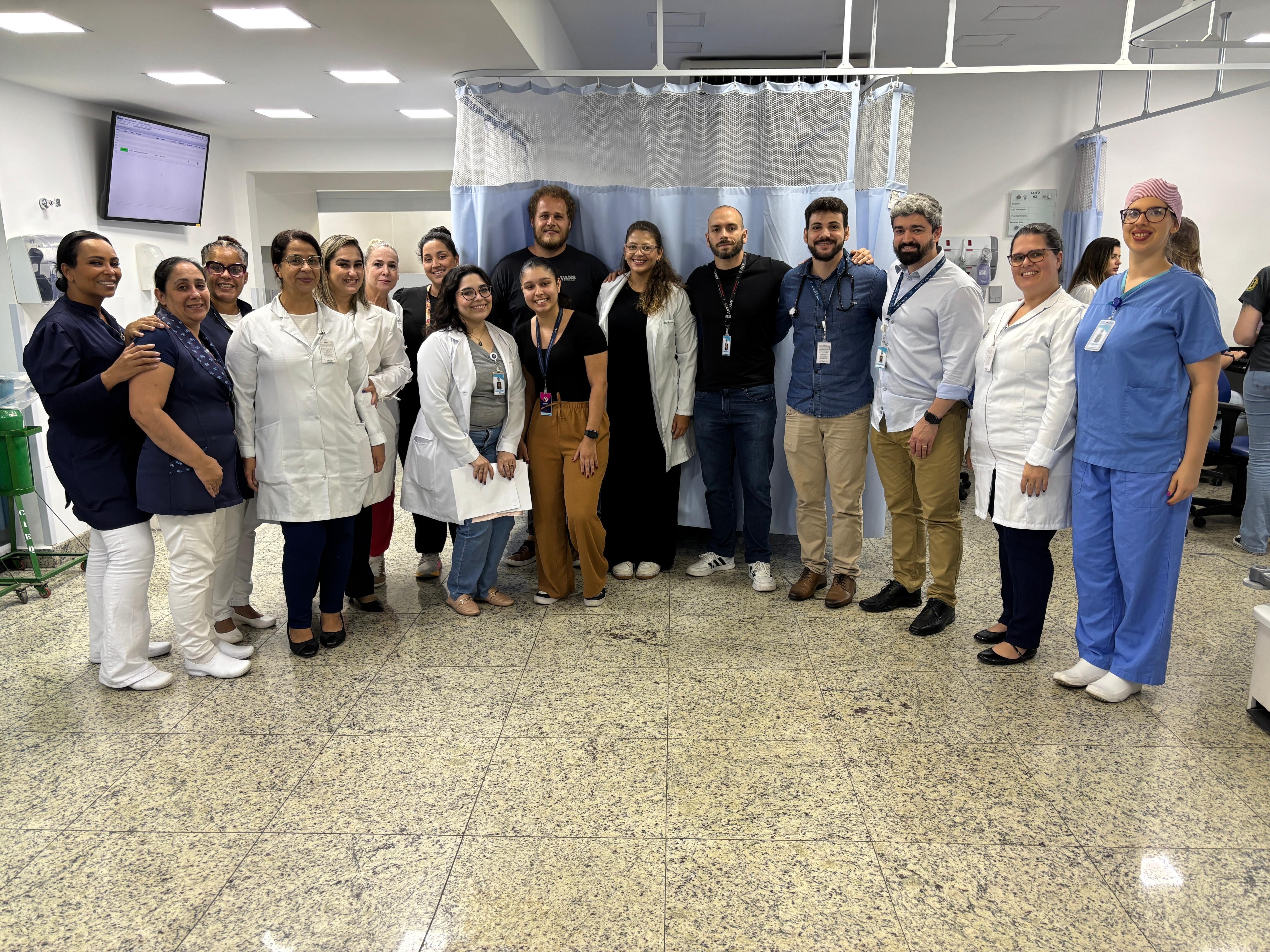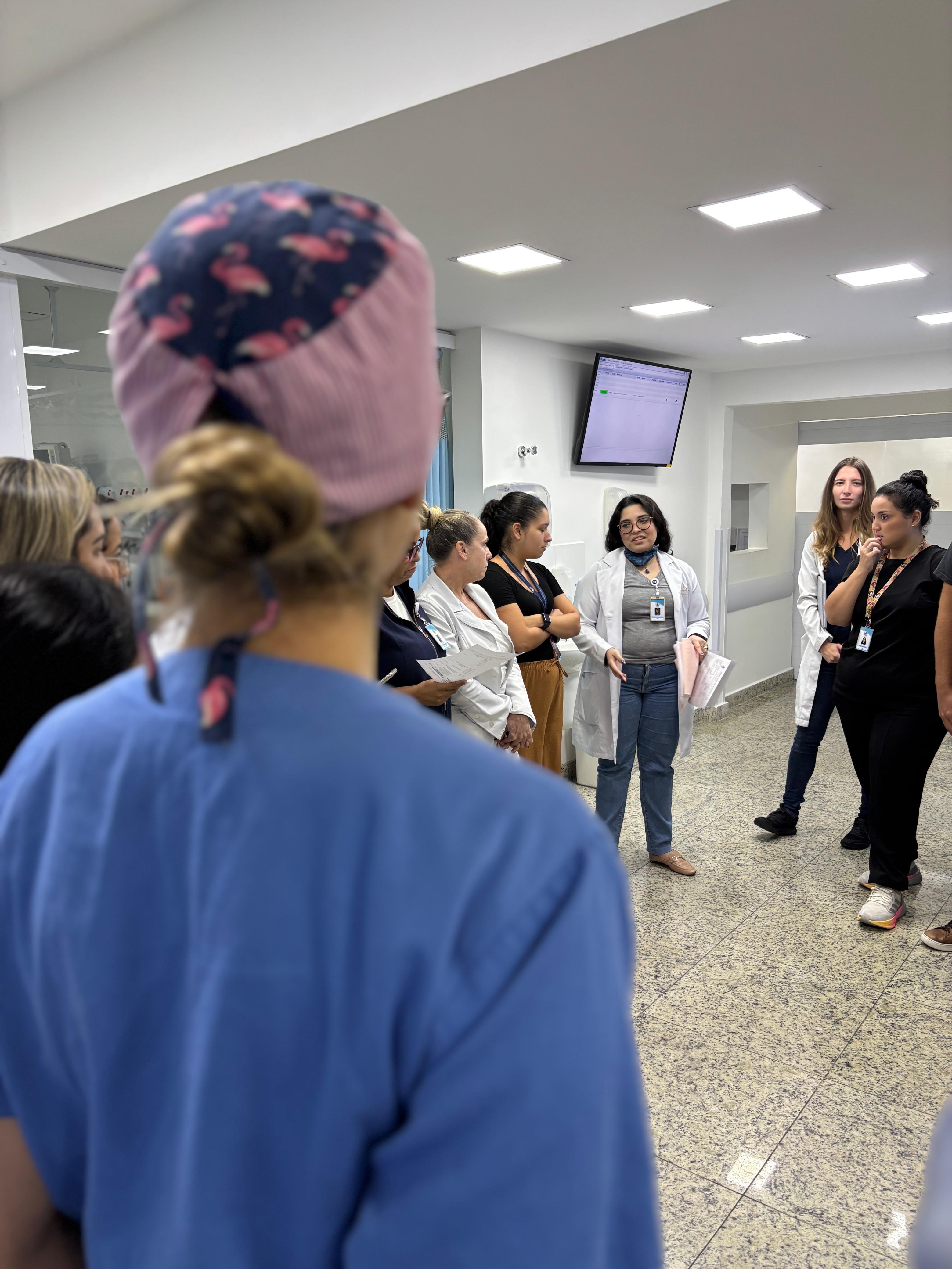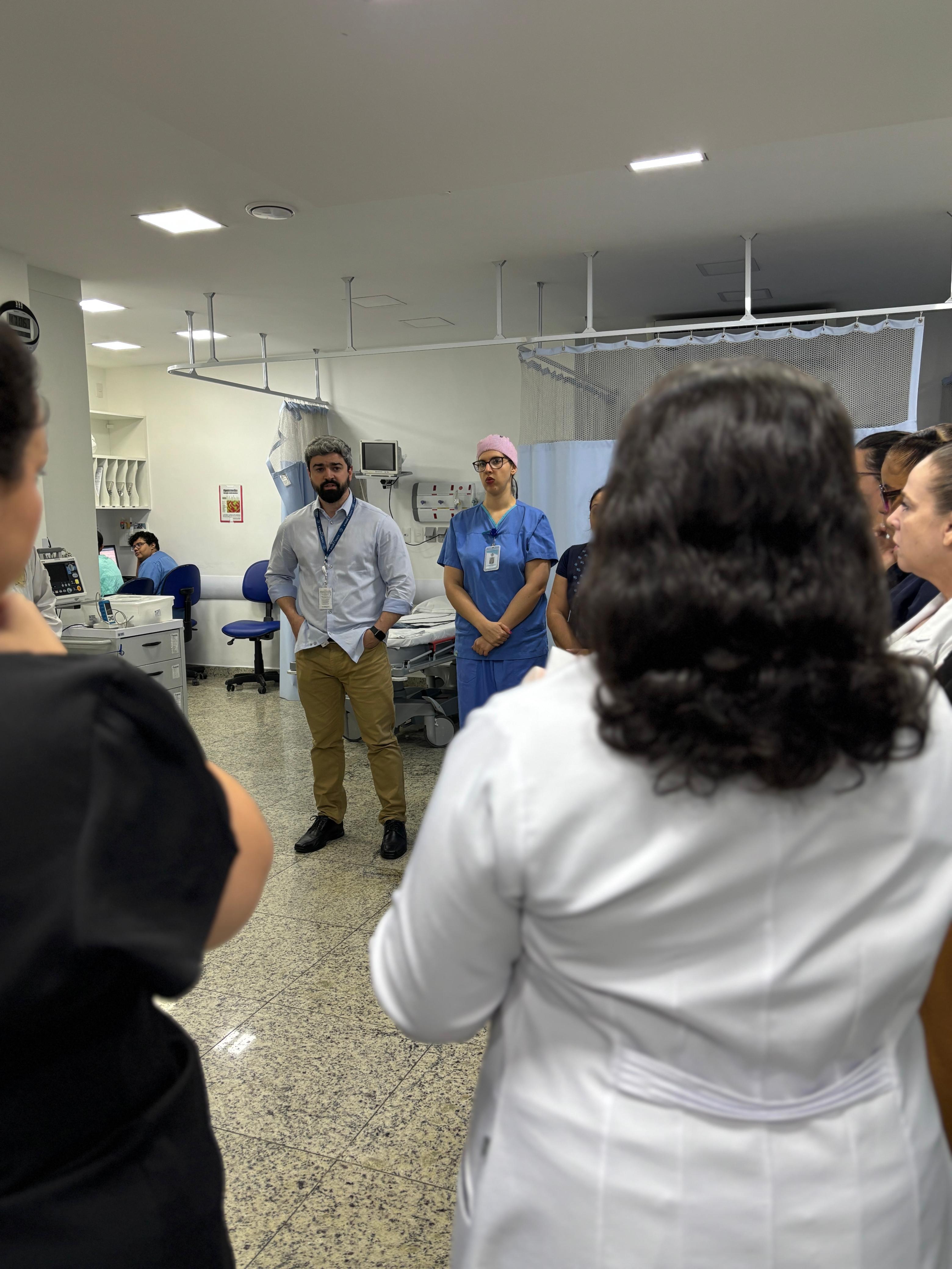 No pronto socorro adulto da instituição, o Safety Huddle é realizado em três períodos (manhã, tarde e noite) e tem como objetivo identificar riscos de segurança iminentes, compartilhar eventos ocorridos, promover a comunicação entre os membros da equipe, e reforçar prioridades e boas práticas. O encontro tem duração máxima de 10 minutos e tem a participação da equipe multidisciplinar, enfermeiros, médicos, lideranças e central de vagas.