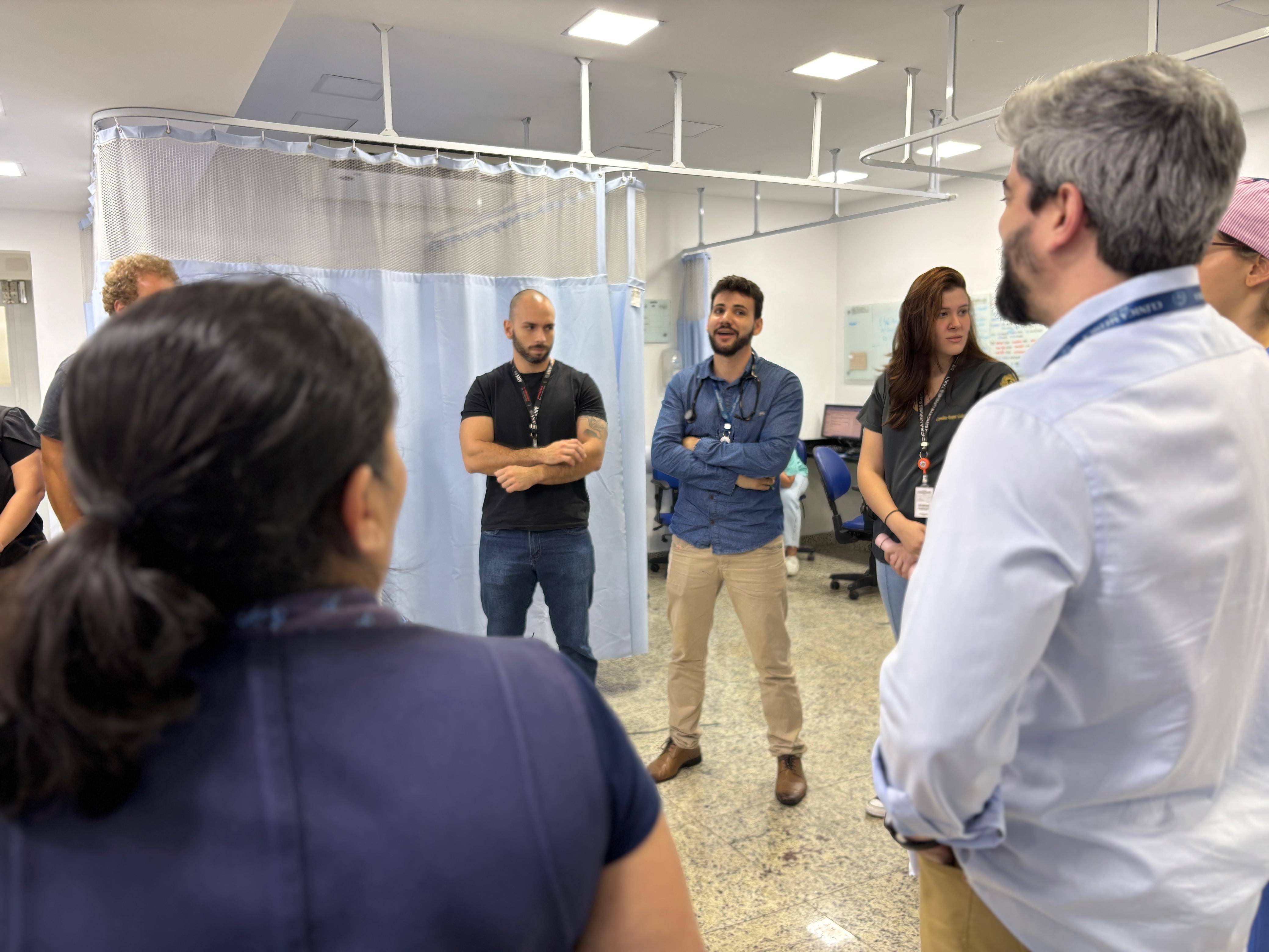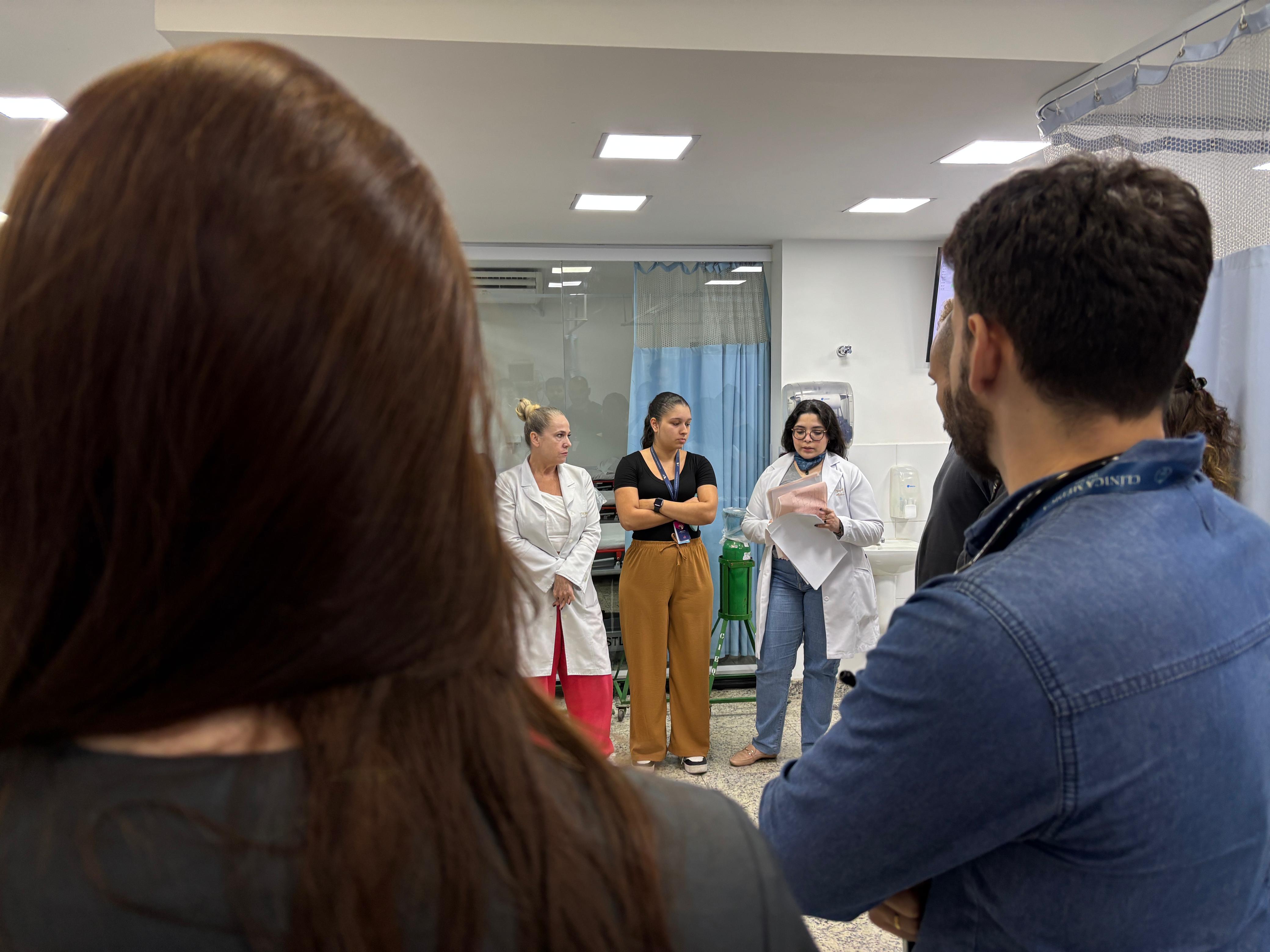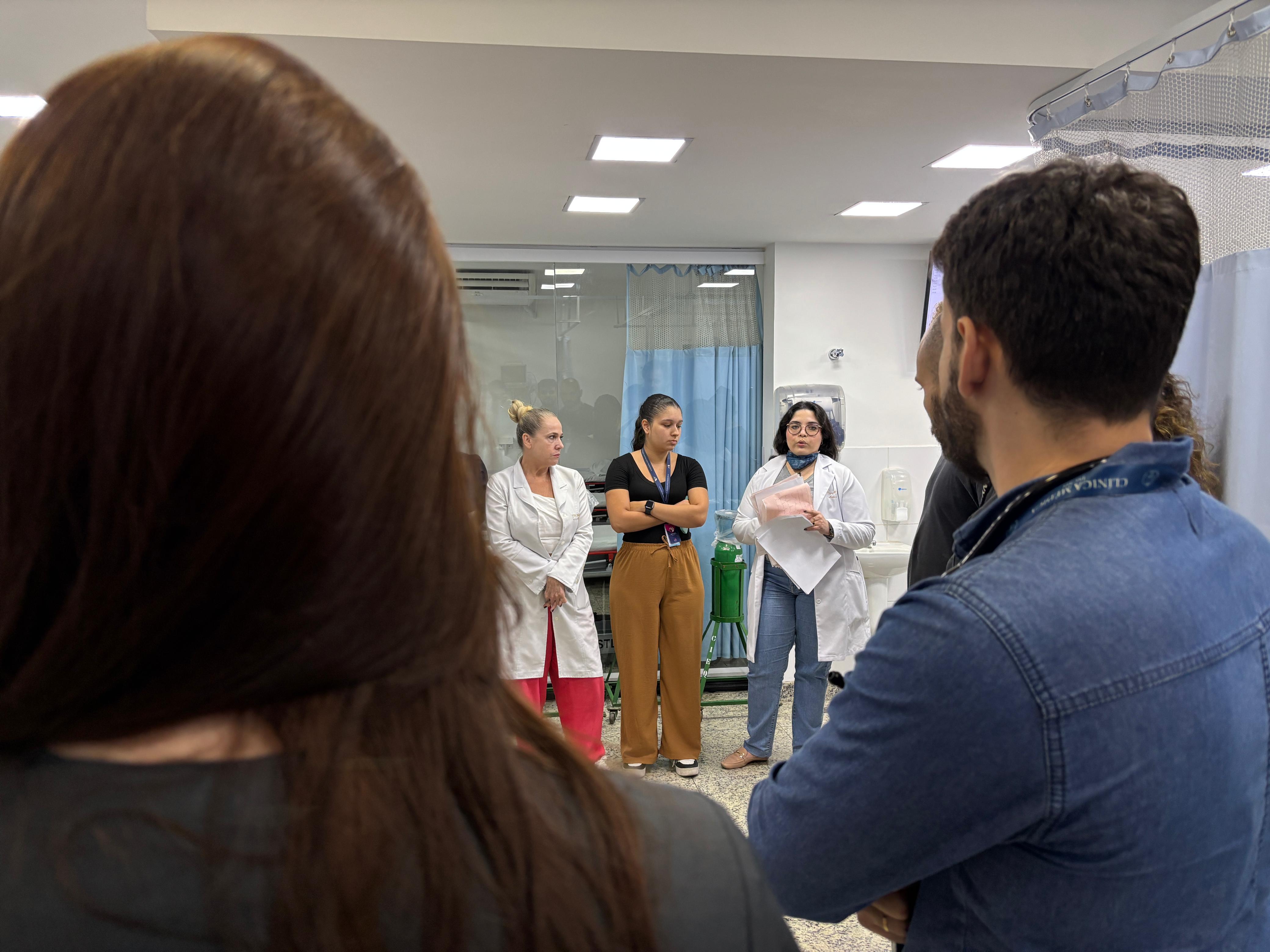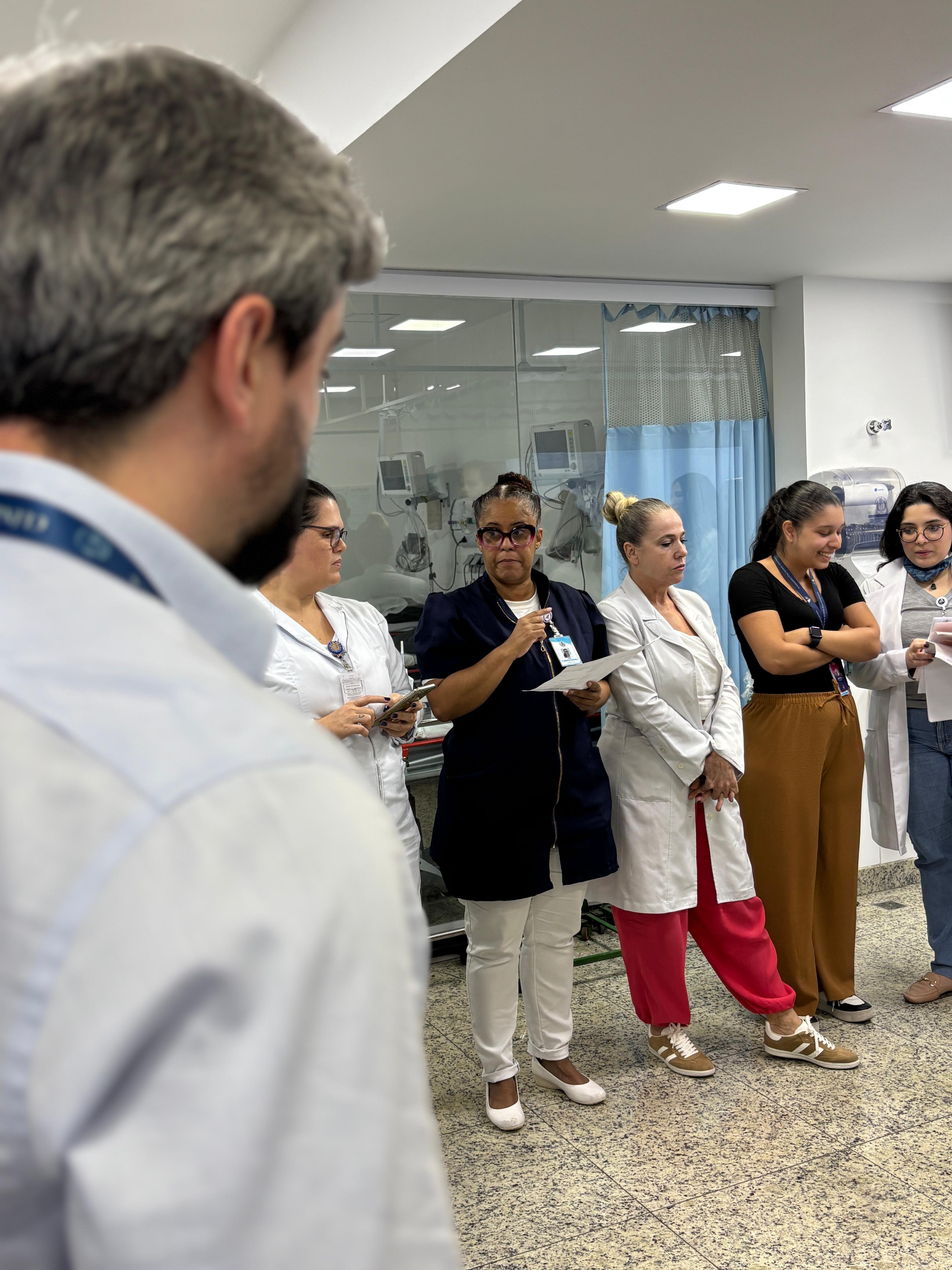No pronto socorro adulto da instituição, o Safety Huddle é realizado em três períodos (manhã, tarde e noite) e tem como objetivo identificar riscos de segurança iminentes, compartilhar eventos ocorridos, promover a comunicação entre os membros da equipe, e reforçar prioridades e boas práticas. O encontro tem duração máxima de 10 minutos e tem a participação da equipe multidisciplinar, enfermeiros, médicos, lideranças e central de vagas.