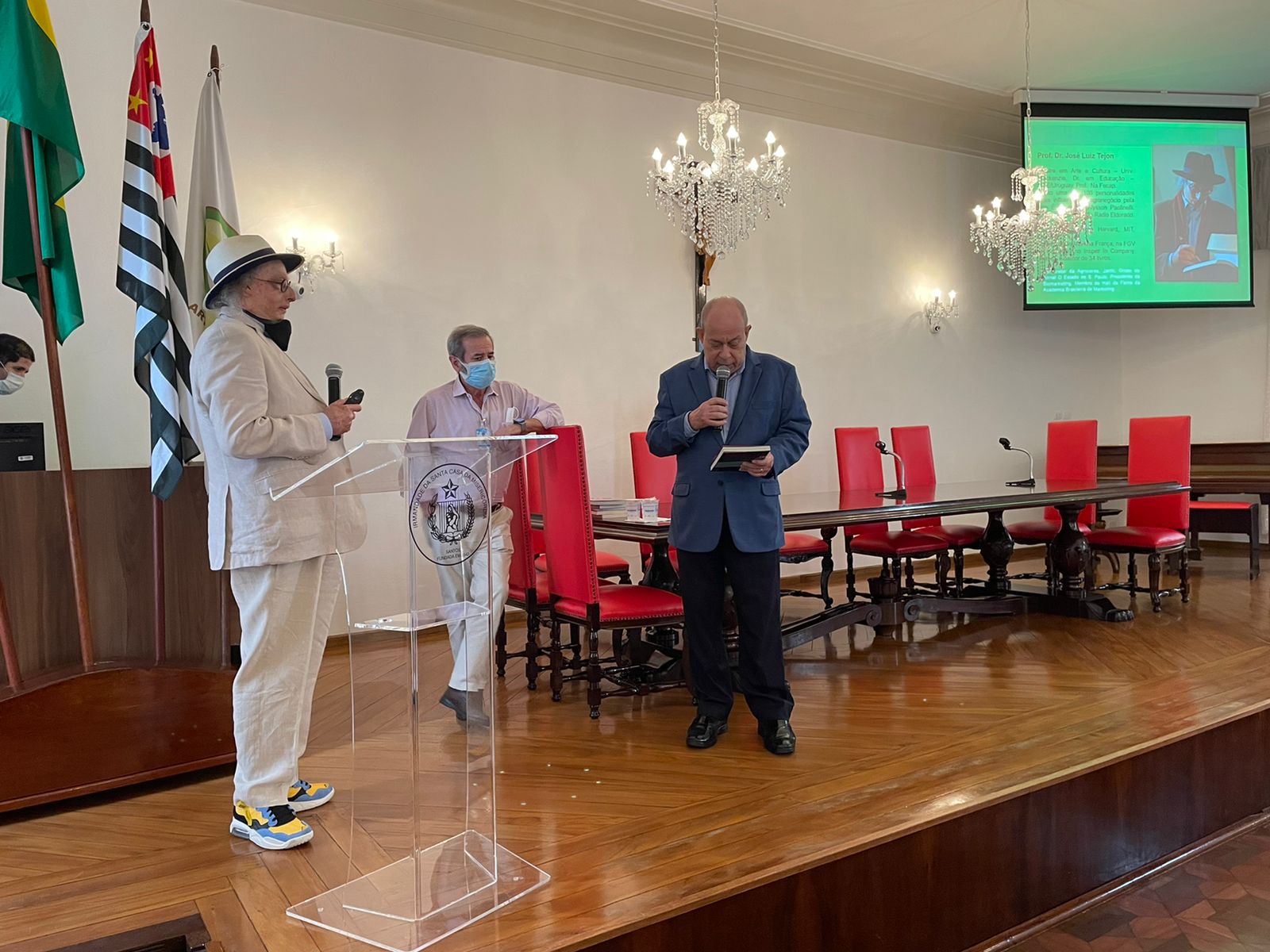 José Luiz Tejon é Doutor em Educação, jornalista, publicitário, e professor, mas em sua palestra lembrou como foi o início do aprendizado, quando estava em tratamento na Santa Casa de Santos, por conta das queimaduras, e estudou na antiga escola Nossa Senhora de Lourdes, que era mantida pelo hospital, dedicada às crianças que ficavam internadas por longa permanência.