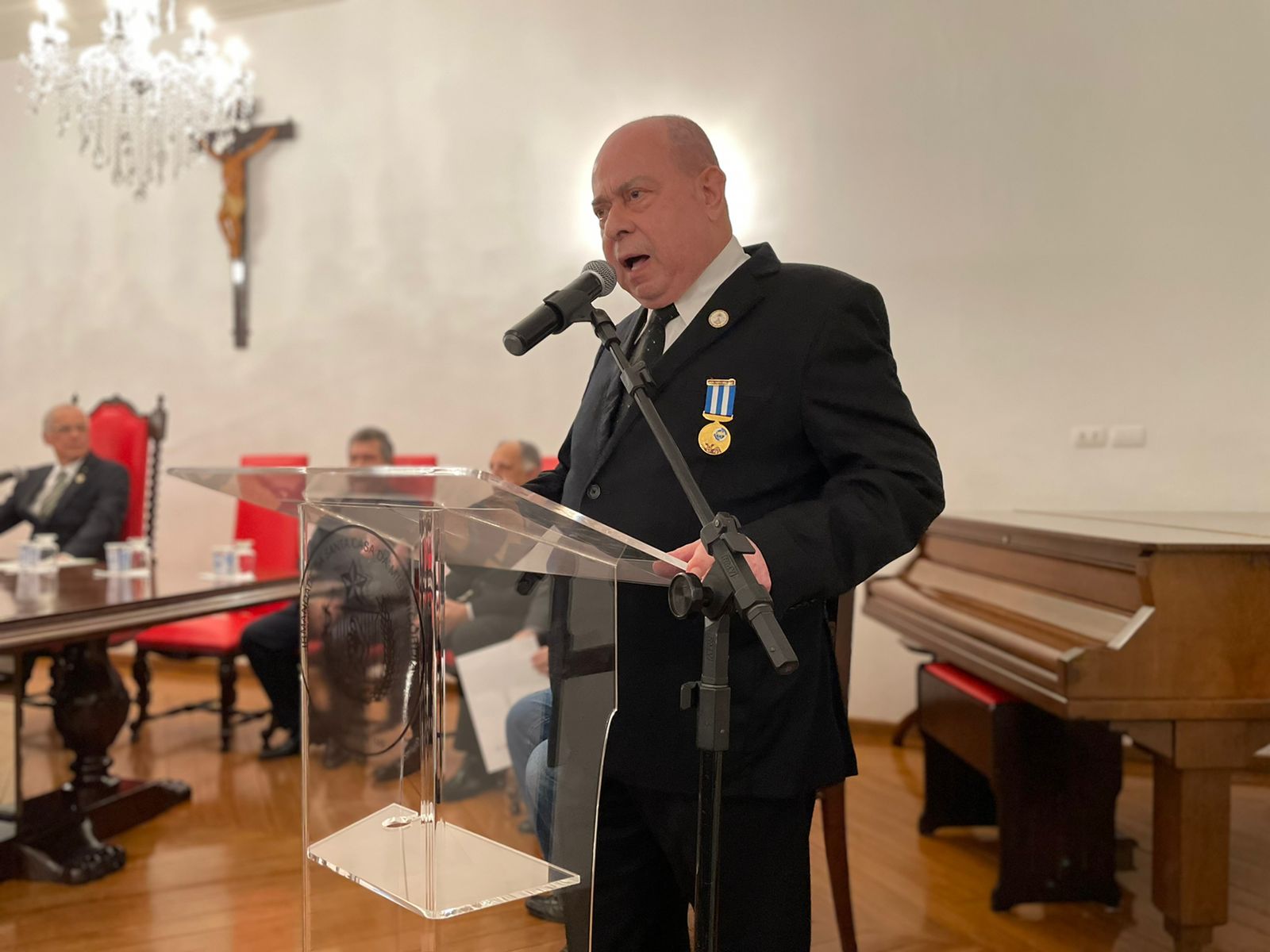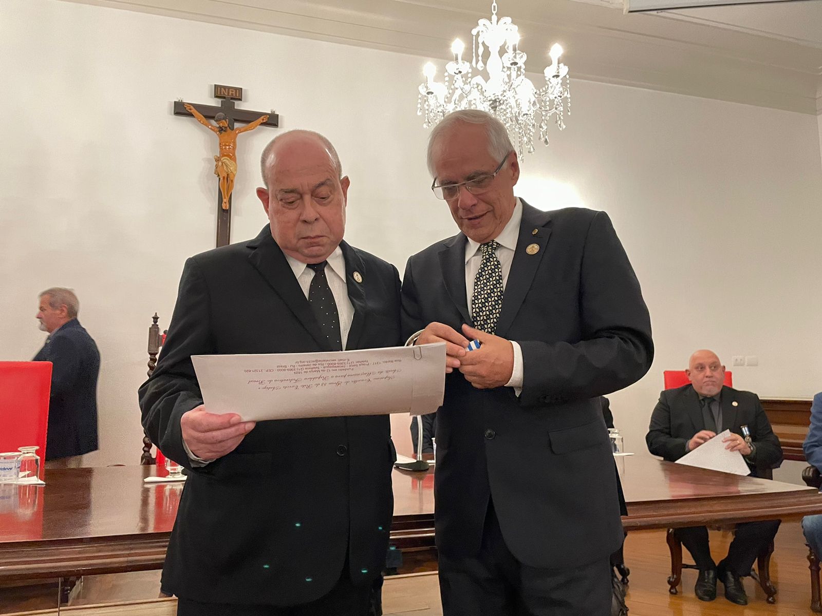 O Grande Inspetor Litúrgico Vitor Conde, em reconhecimento à excelente administração da instituição, fez a entrega da terceira Comenda ao Provedor Ariovaldo Feliciano.