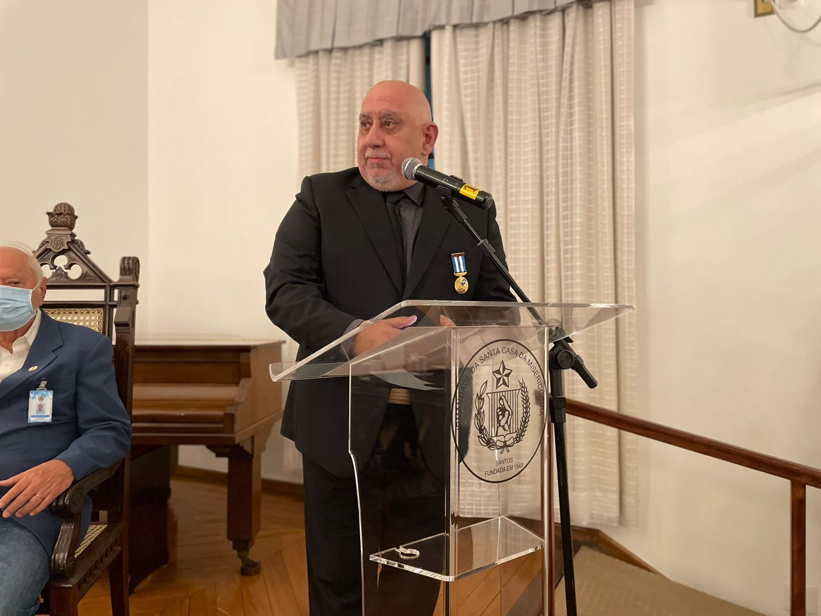 A segunda Comenda foi entregue pelo Grande Inspetor Geral da Ordem e 2º Tesoureiro da Mesa Administrativa da Irmandade, Antonio Carvalho, para o Diretor Técnico Dr. Alex Macedo Gonçalves, representando o quadro de profissionais técnicos e assistenciais.