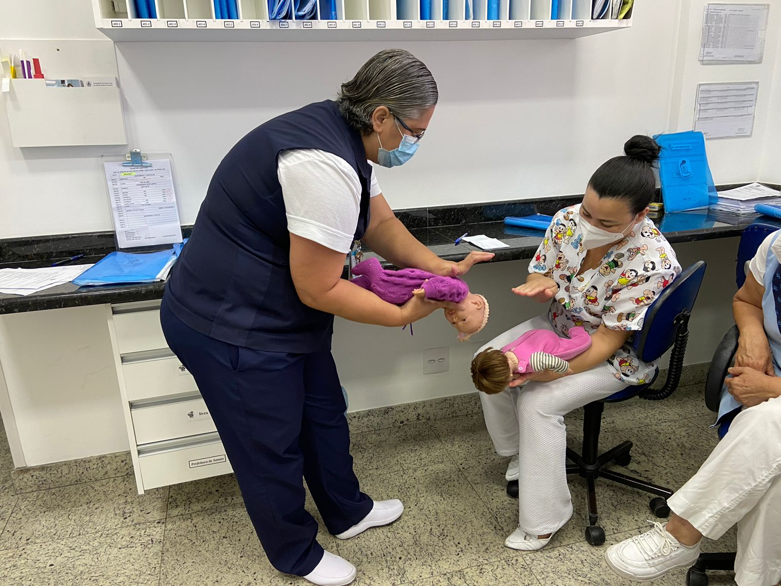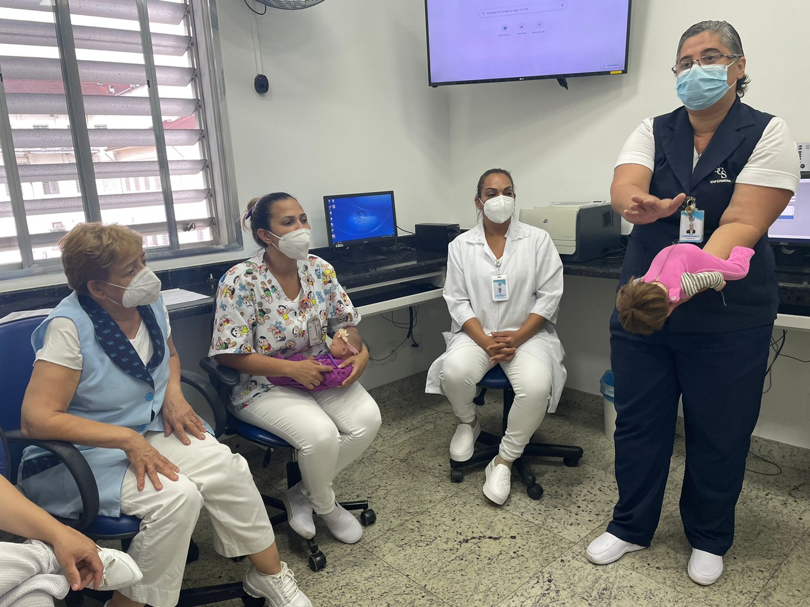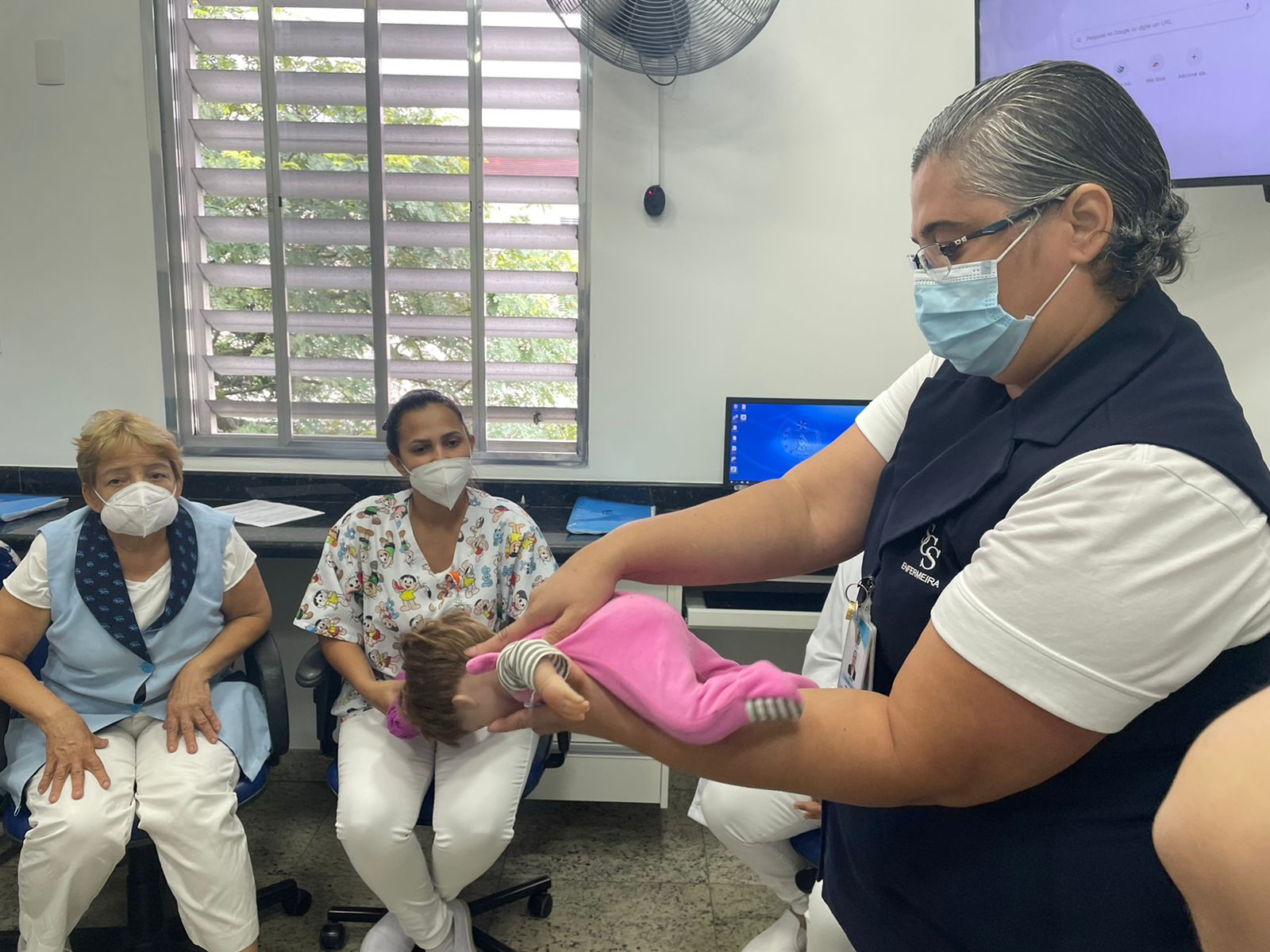 Objetivando promover a assistência de qualidade e manter a equipe de enfermagem sempre atualizada, o Serviço de Educação Continuada da Santa Casa de Santos iniciou esta semana o treinamento com a equipe da maternidade sobre as manobras de desengasgo.