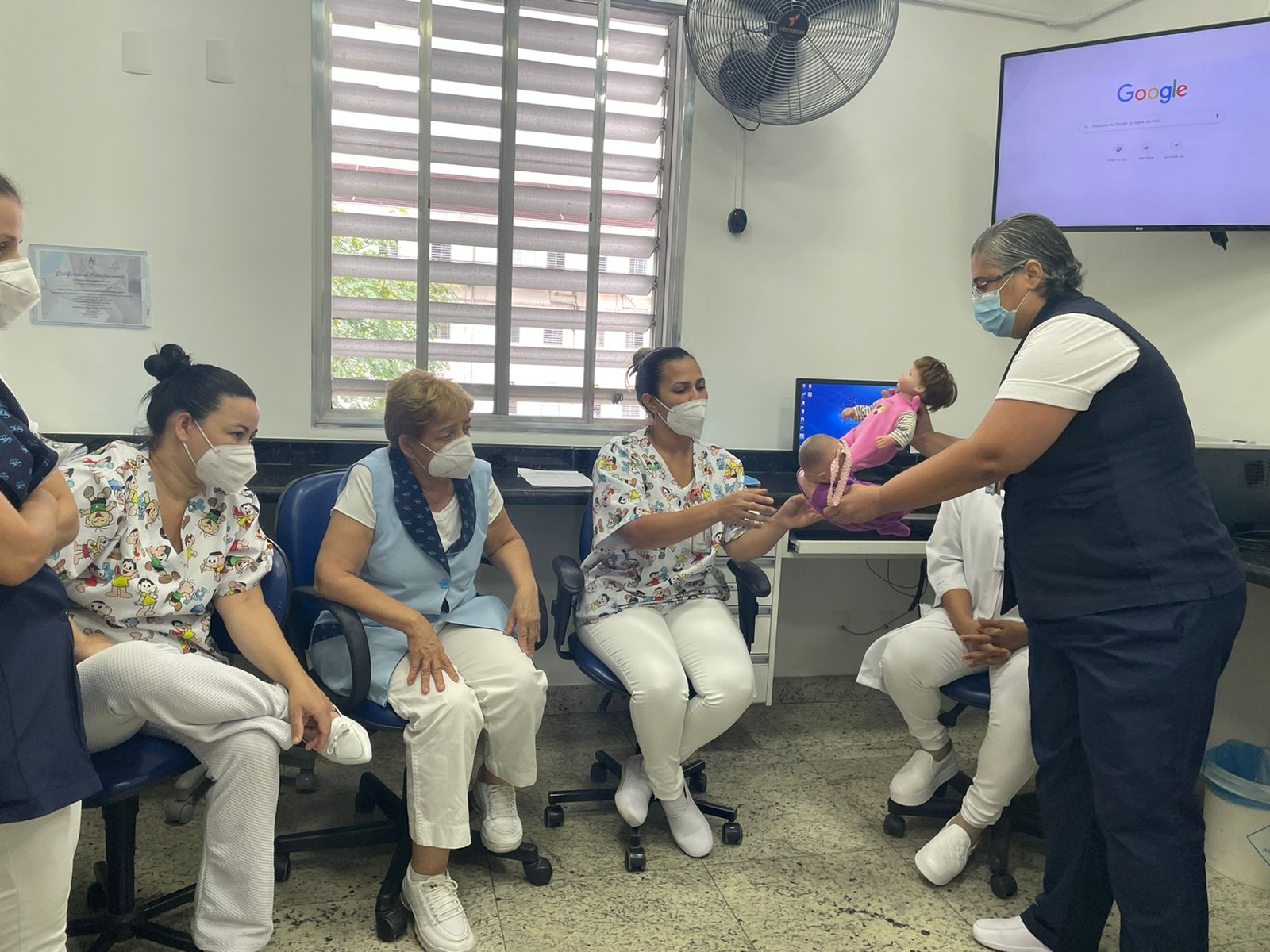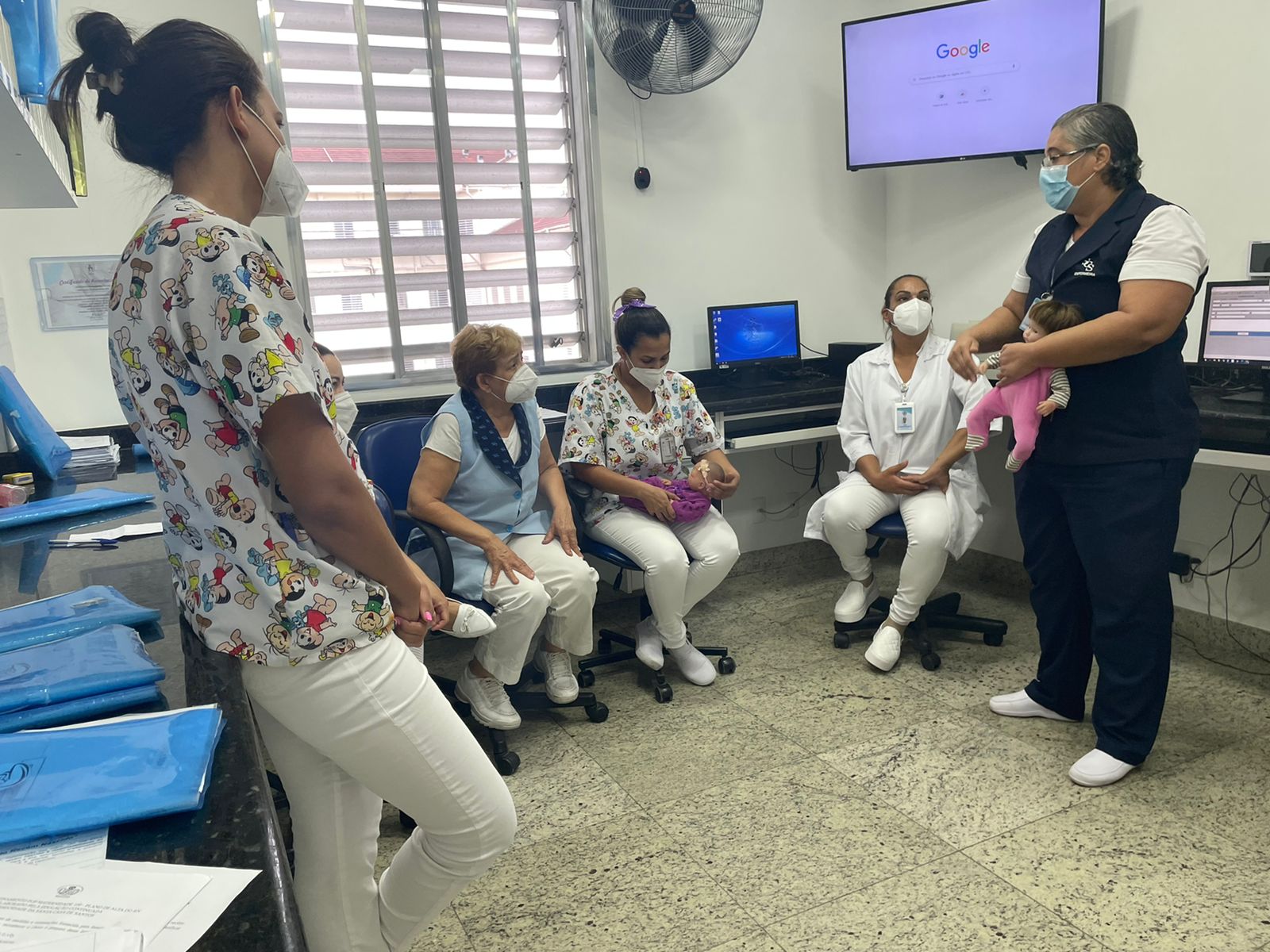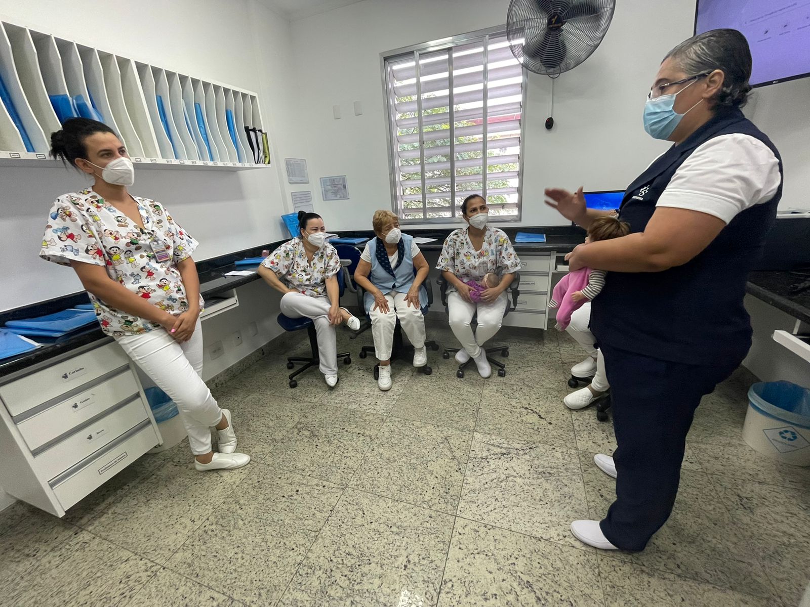 Objetivando promover a assistência de qualidade e manter a equipe de enfermagem sempre atualizada, o Serviço de Educação Continuada da Santa Casa de Santos iniciou esta semana o treinamento com a equipe da maternidade sobre as manobras de desengasgo.