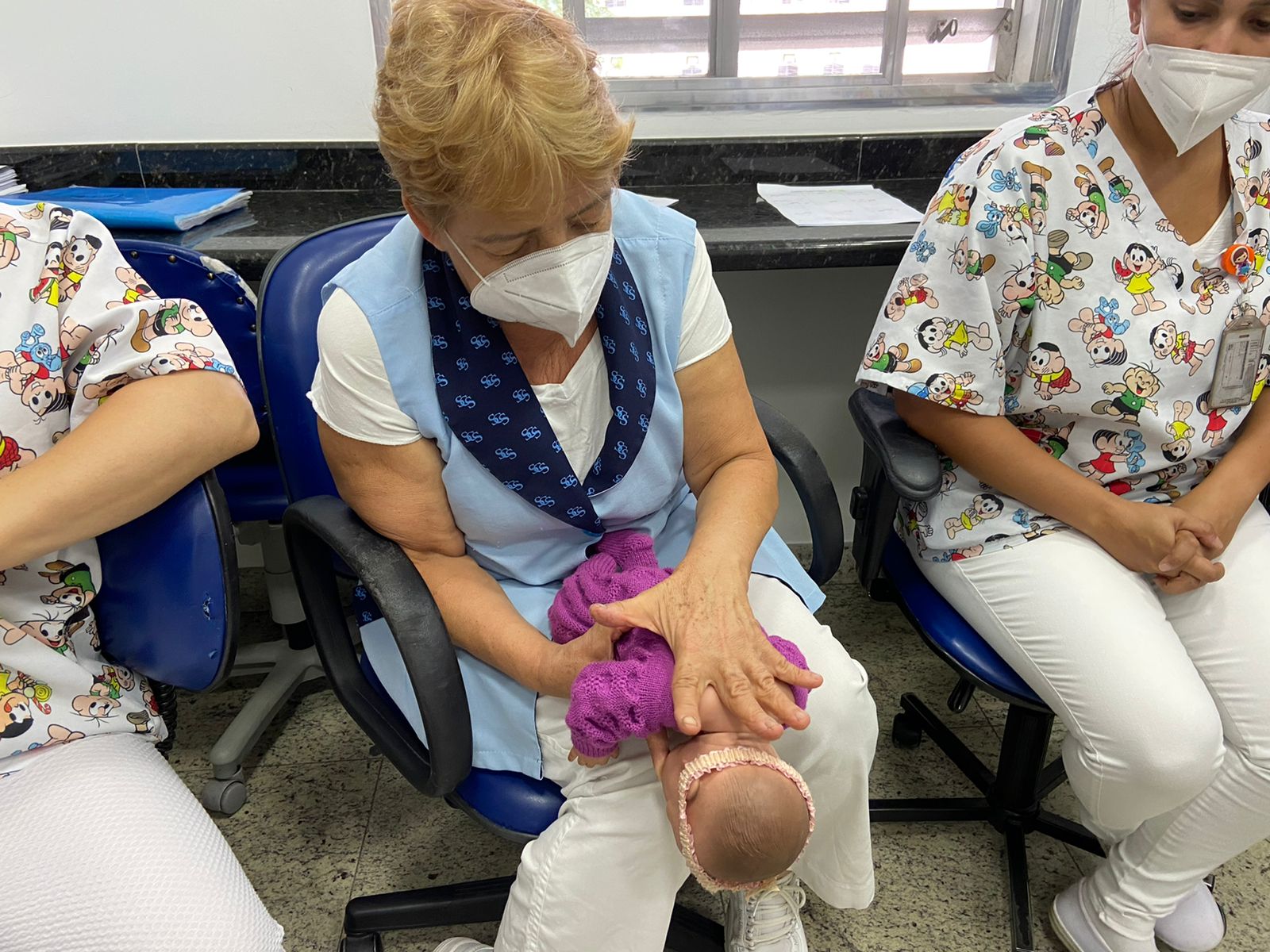 Para isso, foi criado o protocolo de “Cuidados na alta do recém-nascido”, e o treinamento das equipes de enfermagem objetiva qualificá-las para orientar as mães e responsáveis na hora da alta do RN. Além da orientação, também é entregue um folder ilustrado mostrando o passo a passo das manobras de desengasgo.