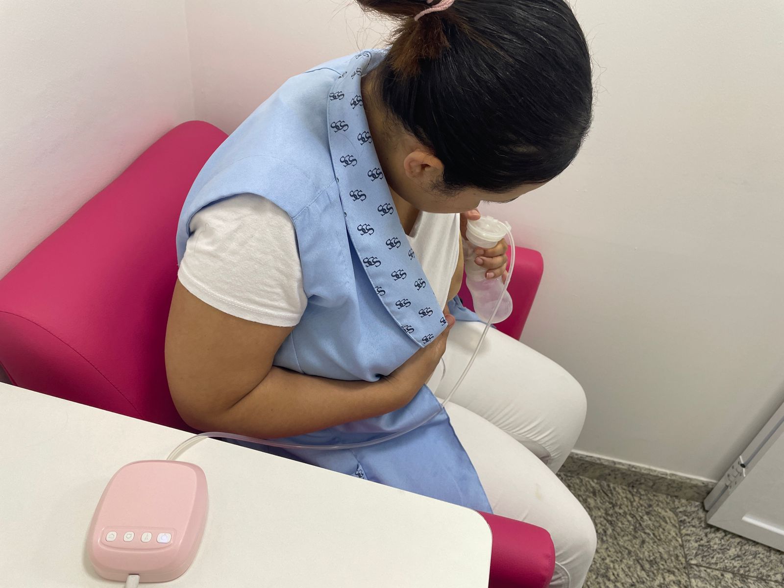 A sala fica ao lado da Medicina do Trabalho e funcionará 24h. Está disponível uma poltrona confortável e geladeira para armazenamento. Será necessário que a lactante leve o material de estoque e identificação.