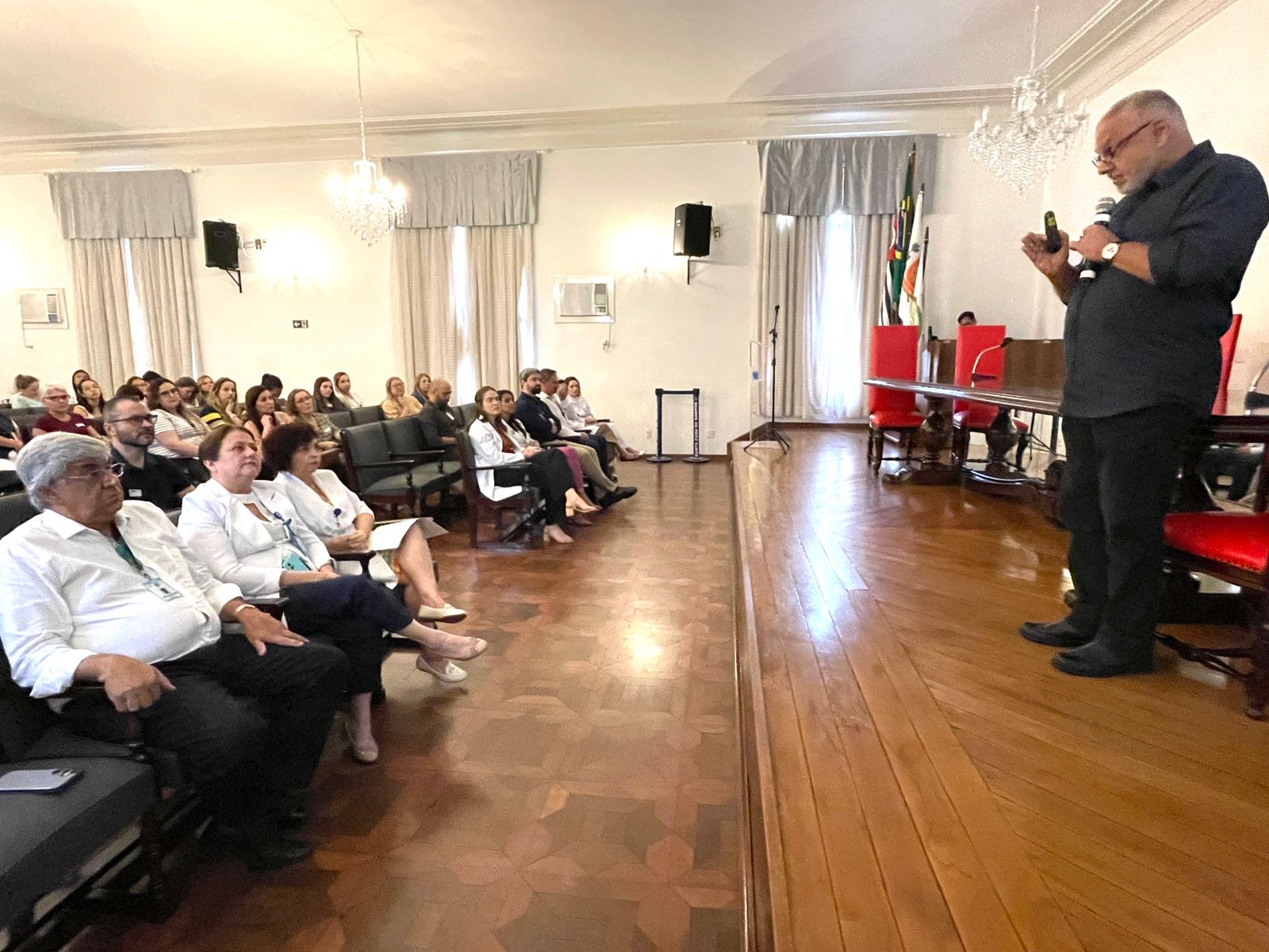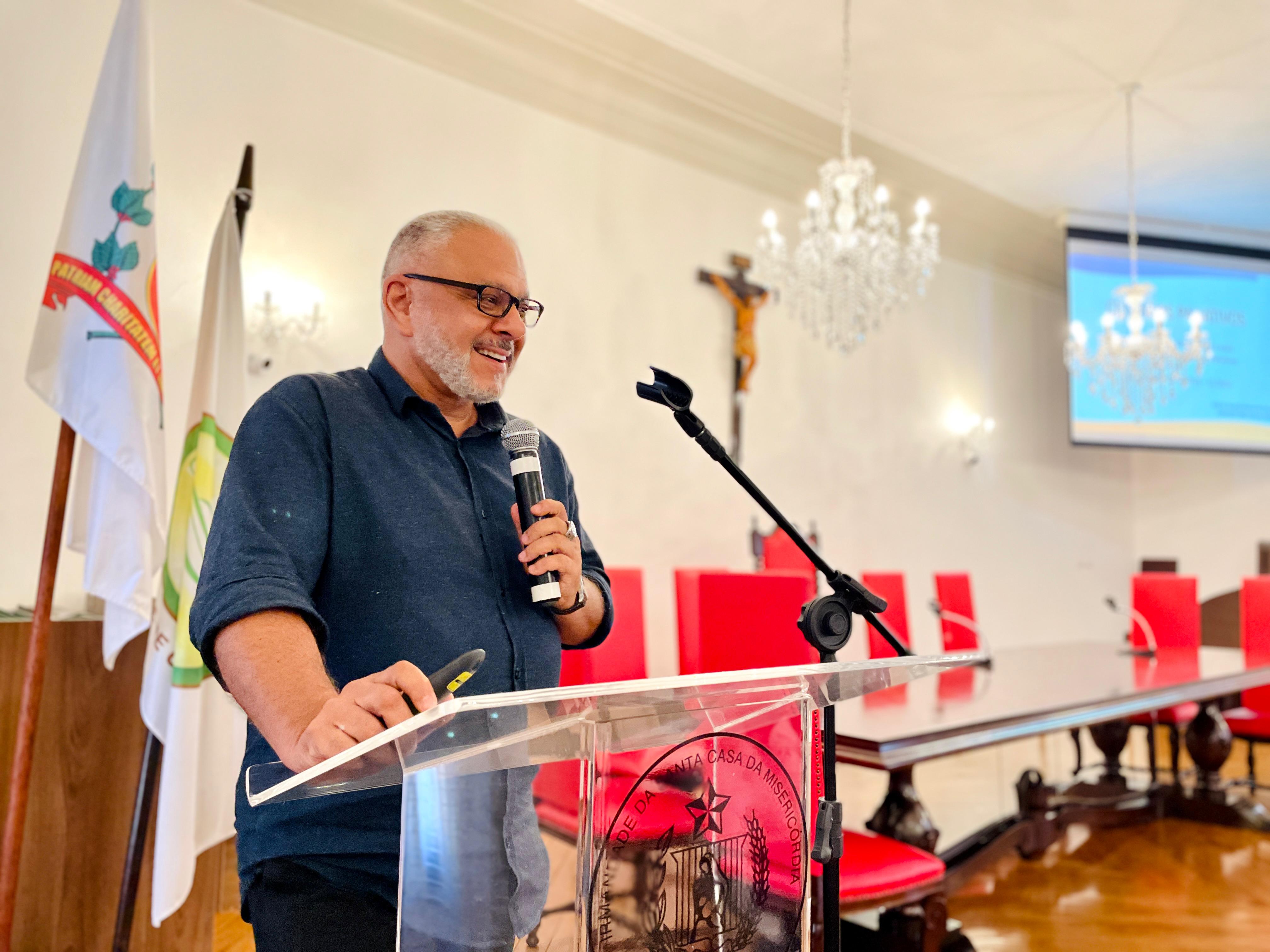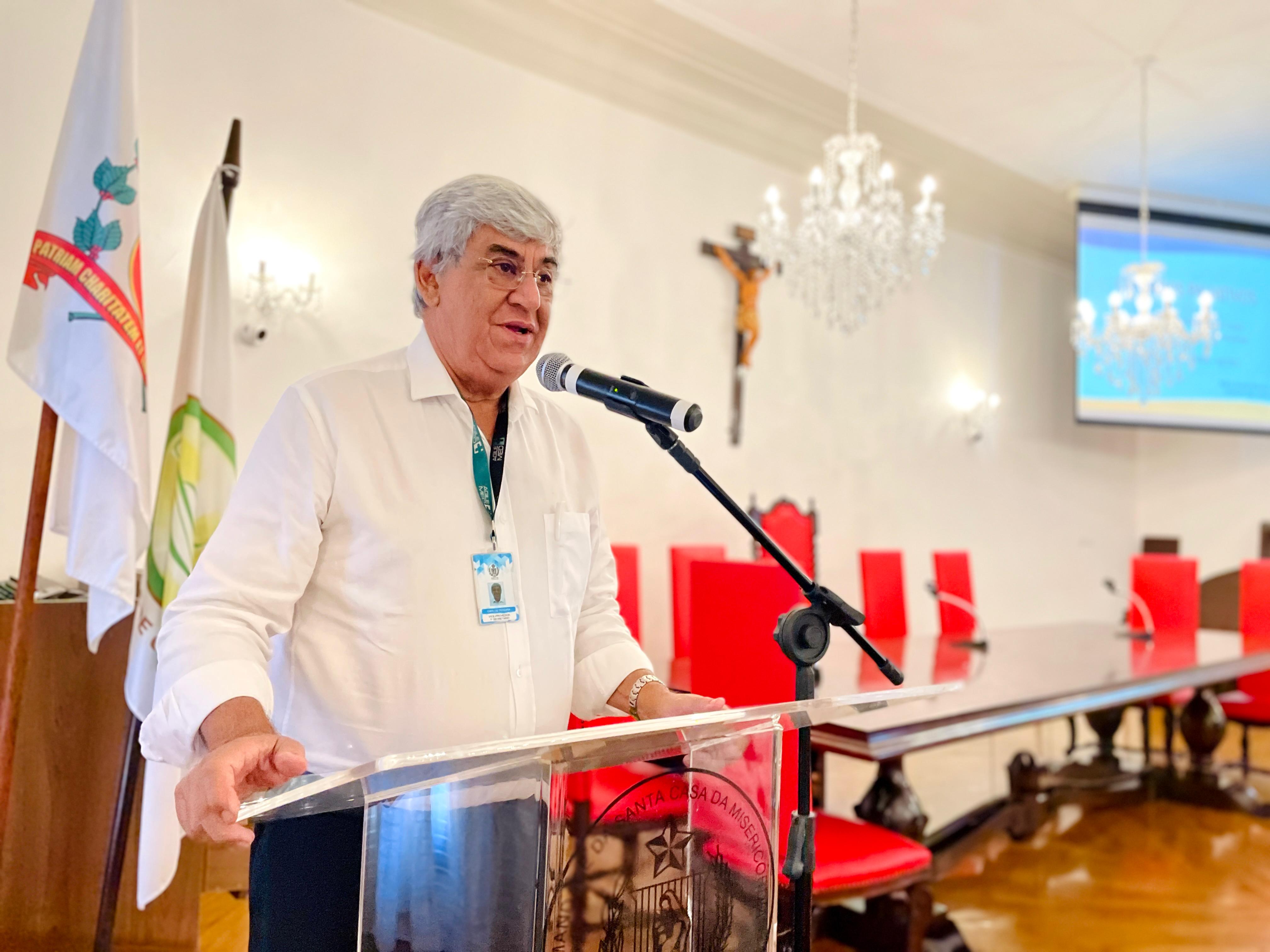 O vice provedor da Santa Casa e presidente da Câmara dos Vereadores de Santos, Carlos Teixeira Filho, fez a abertura oficial do evento e mencionou a Política Municipal de Cuidados Paliativos (Lei nº 4.465, de 11 de abril de 2024), que foi instituída a partir do Projeto de Lei Nº 89/2023 de sua autoria.