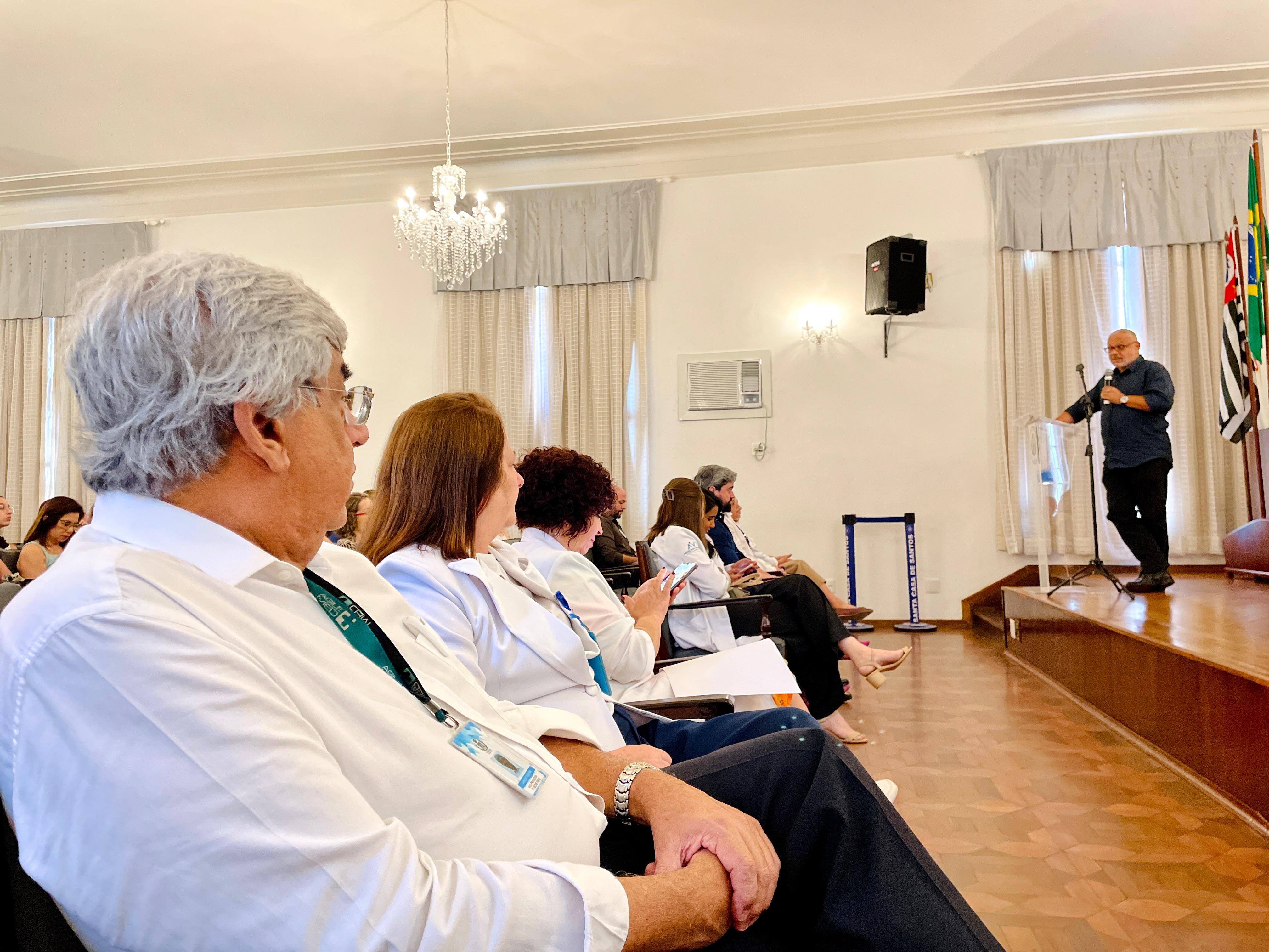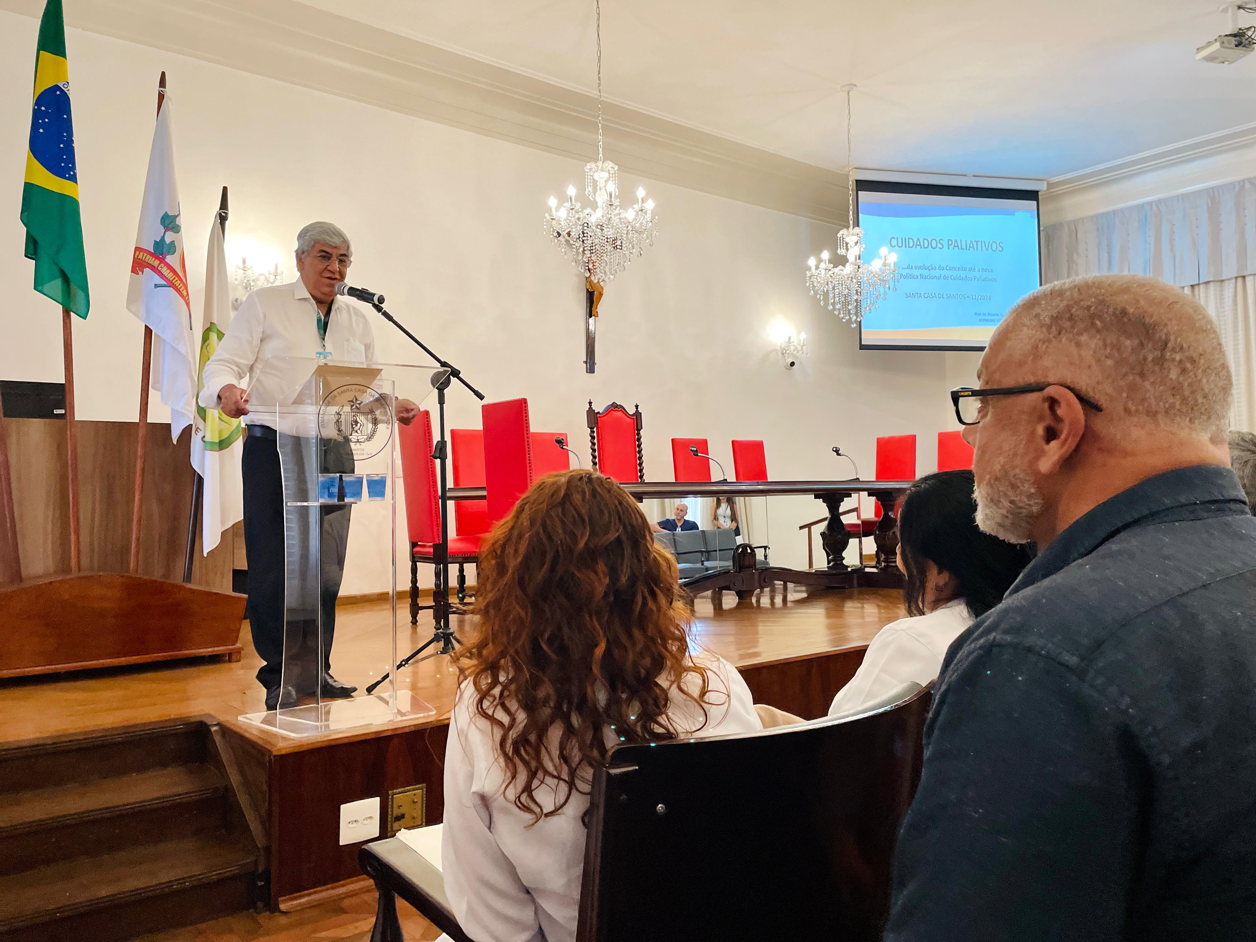 No dia 26/11, a Santa Casa de Santos recebeu o médico referência em Cuidados Paliativos, Dr. Ricardo Tavares, do Instituto Paliar e Coordenador do Núcleo de Cuidados Paliativos da HCFMUSP, para ministrar palestra sobre o tema para os profissionais de saúde da instituição.