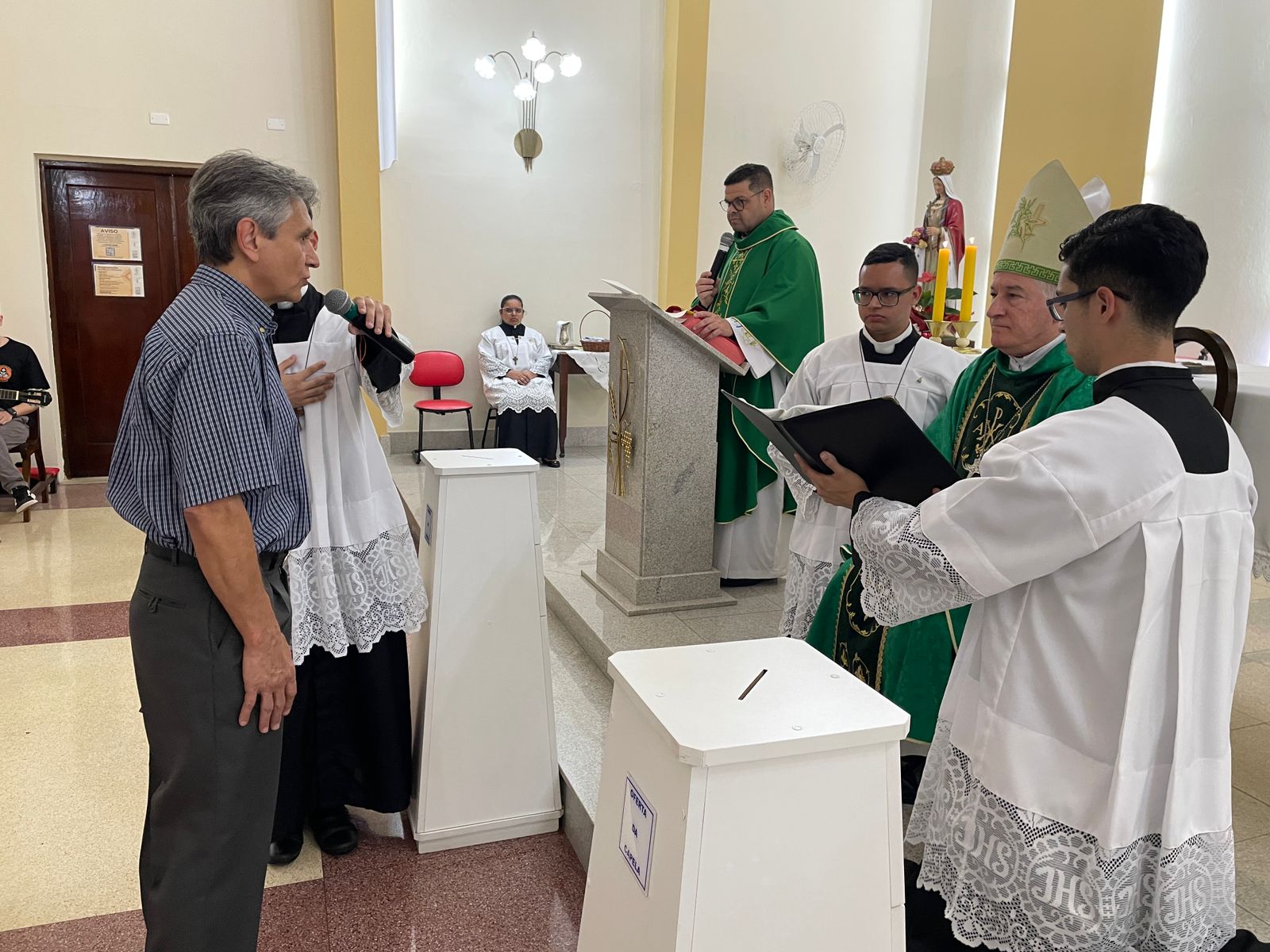 No último sábado, dia 21 de setembro, às 17 horas, a Capela Santa Isabel da Santa Casa de Santos, celebrou a Missa para o Mandato dos Ministros Extraordinários das Exéquias para o Serviço de Luto do hospital. A cerimônia foi presidida por Dom Tarcísio Scaramussa,SDB, Bispo Diocesano de Santos, ao lado do Capelão da Santa Casa, Padre Denilson. O vice provedor da Irmandade, Carlos Teixeira Filho e o Gerente de Obras e Infraestrutura, Bruno Dantas, marcaram presença.