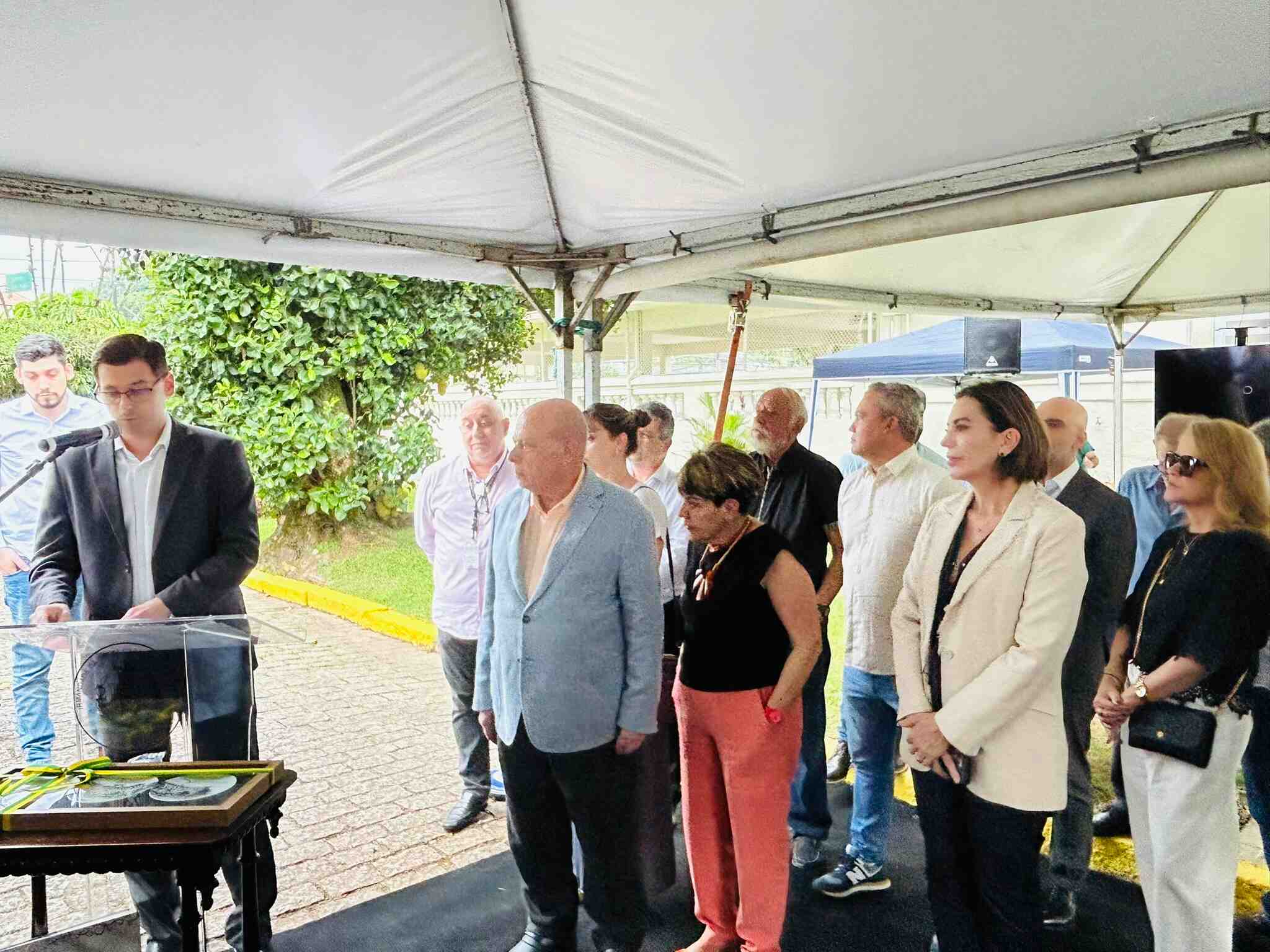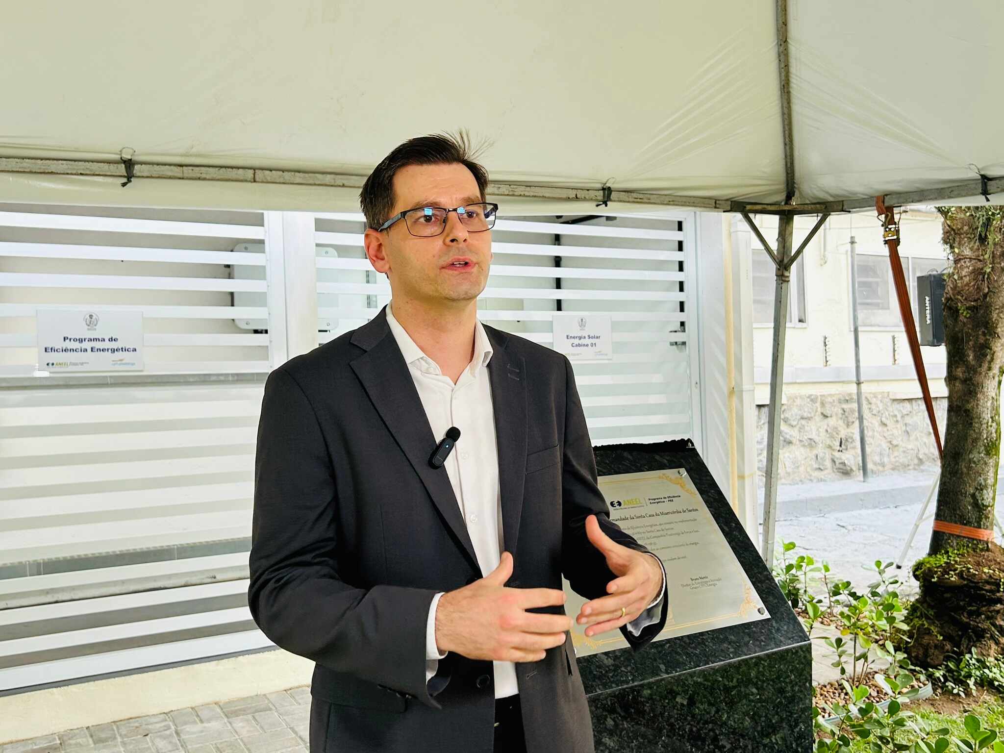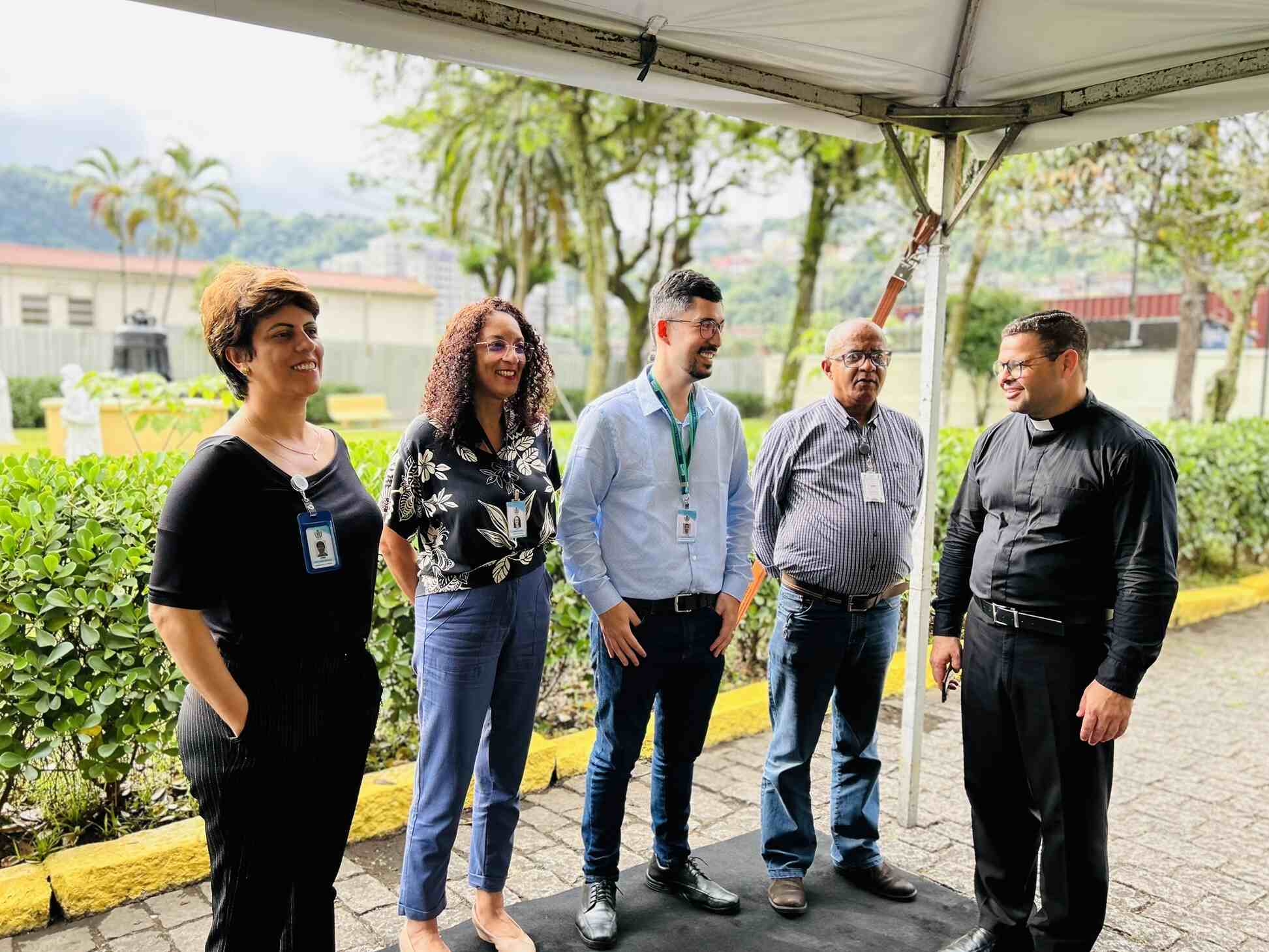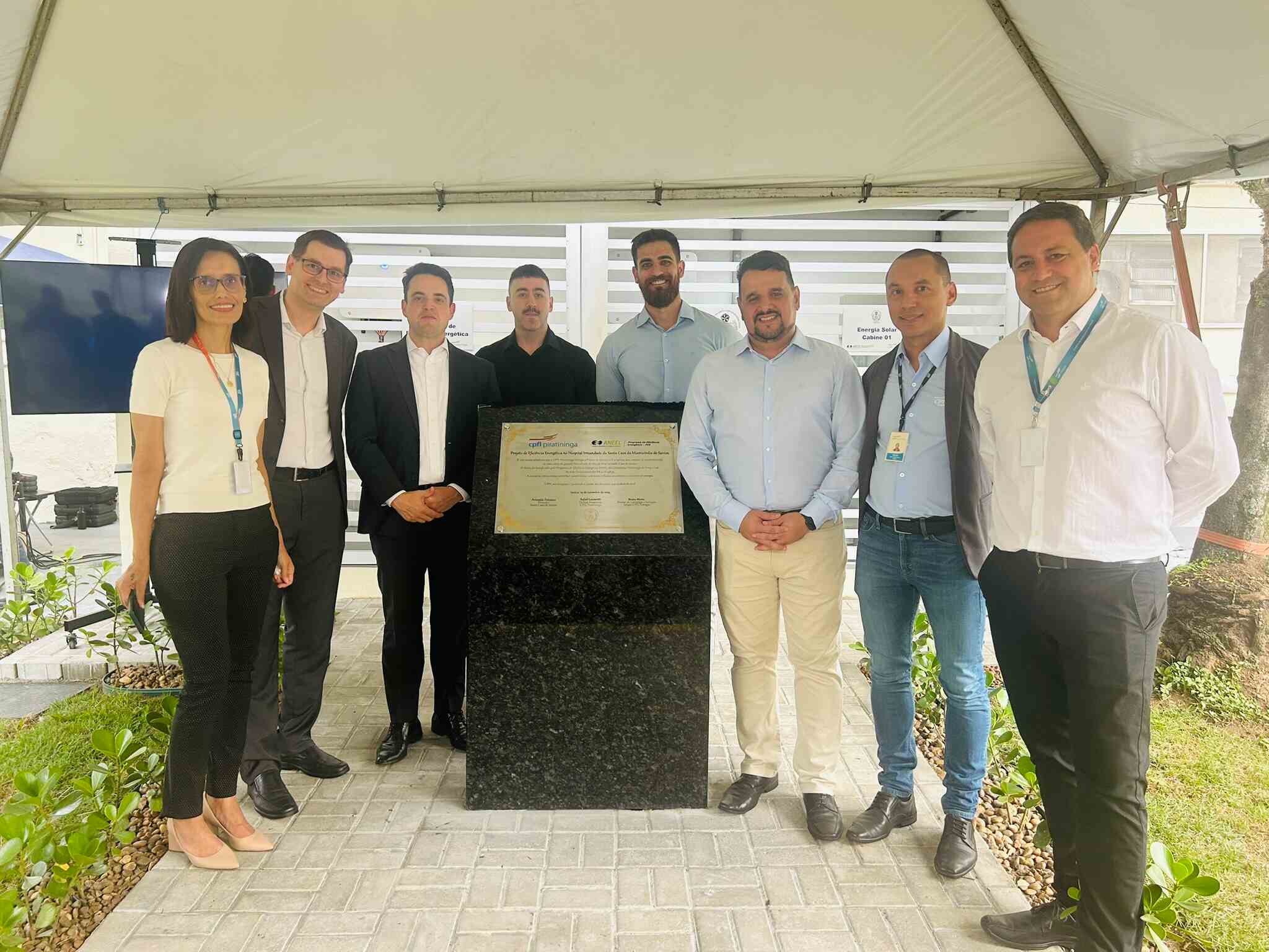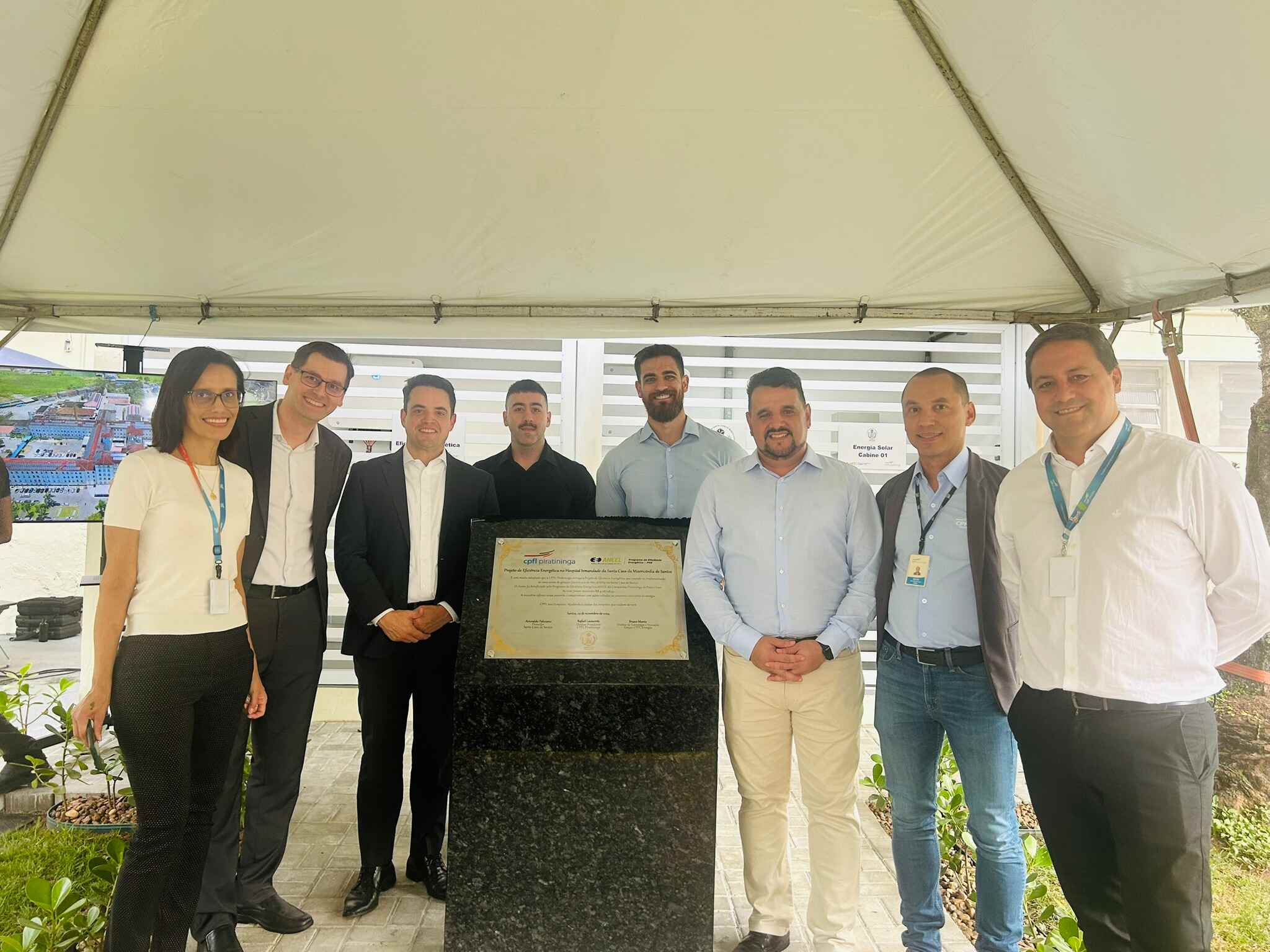 Houve descerramento da placa instalada em frente à cabine de inversores, para marcar o novo momento da instituição, mais uma vez pioneira em projetos tecnológicos e sustentáveis no Litoral Paulista.