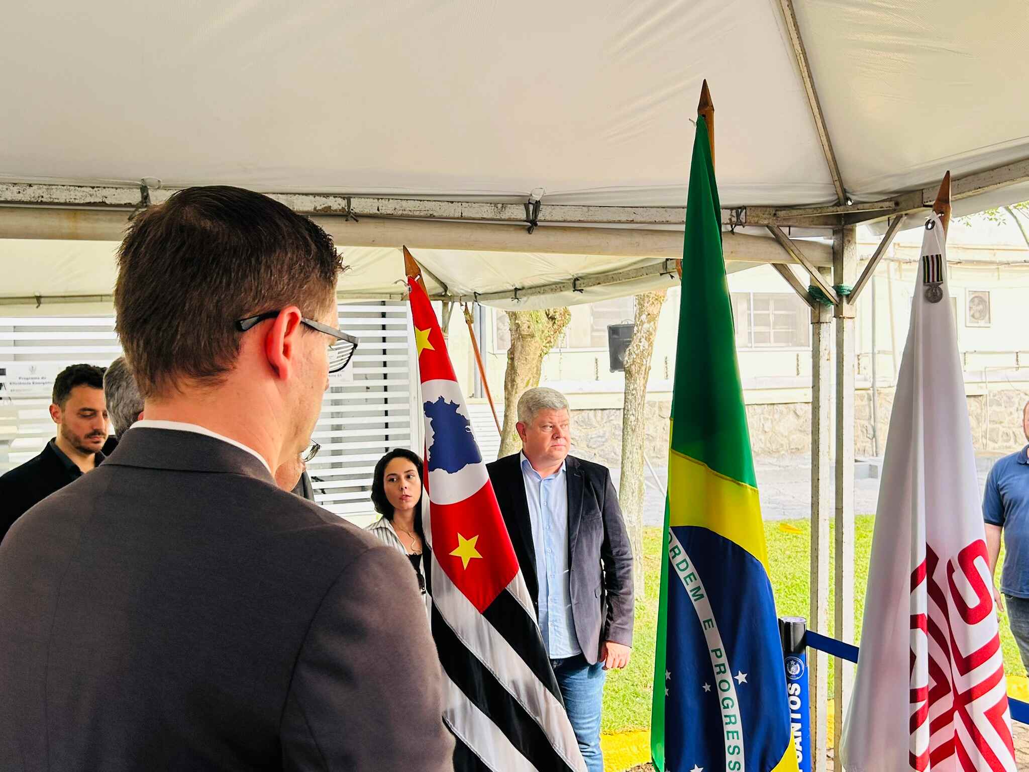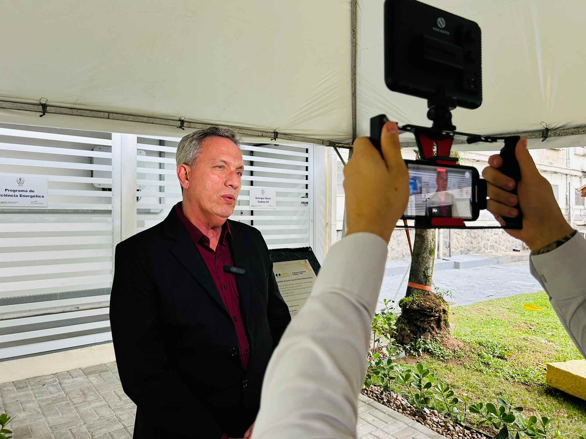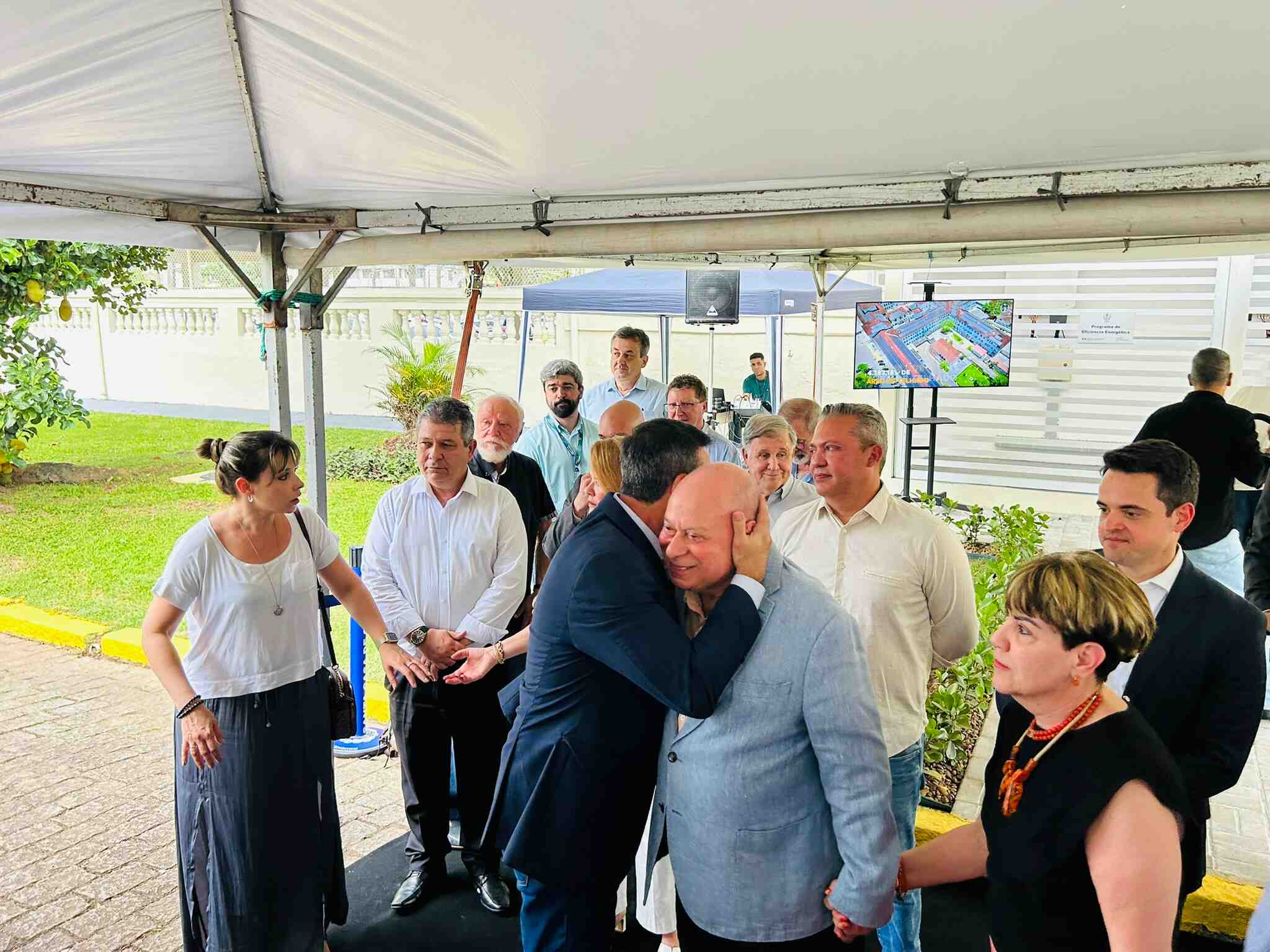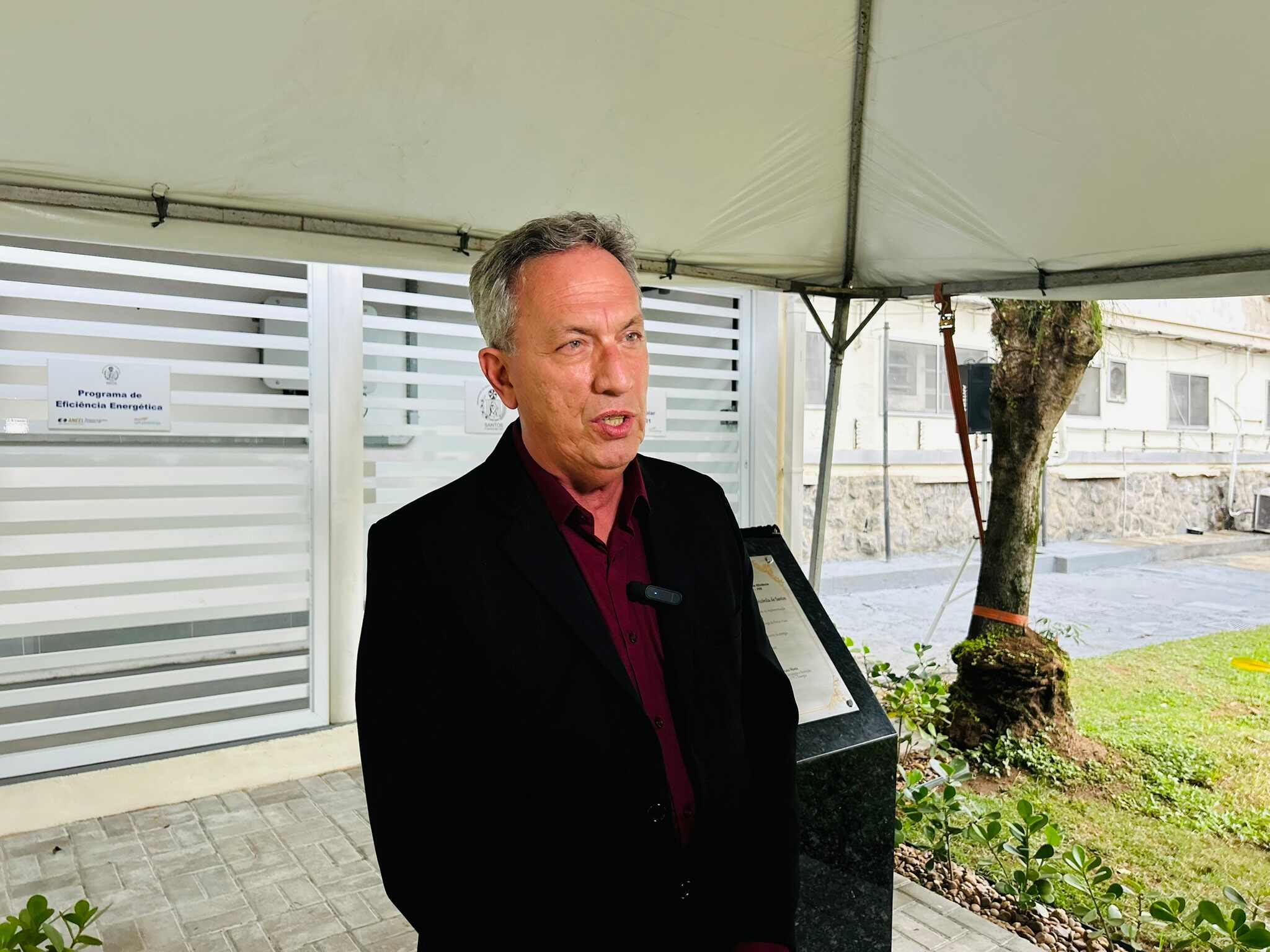 Houve descerramento da placa instalada em frente à cabine de inversores, para marcar o novo momento da instituição, mais uma vez pioneira em projetos tecnológicos e sustentáveis no Litoral Paulista.