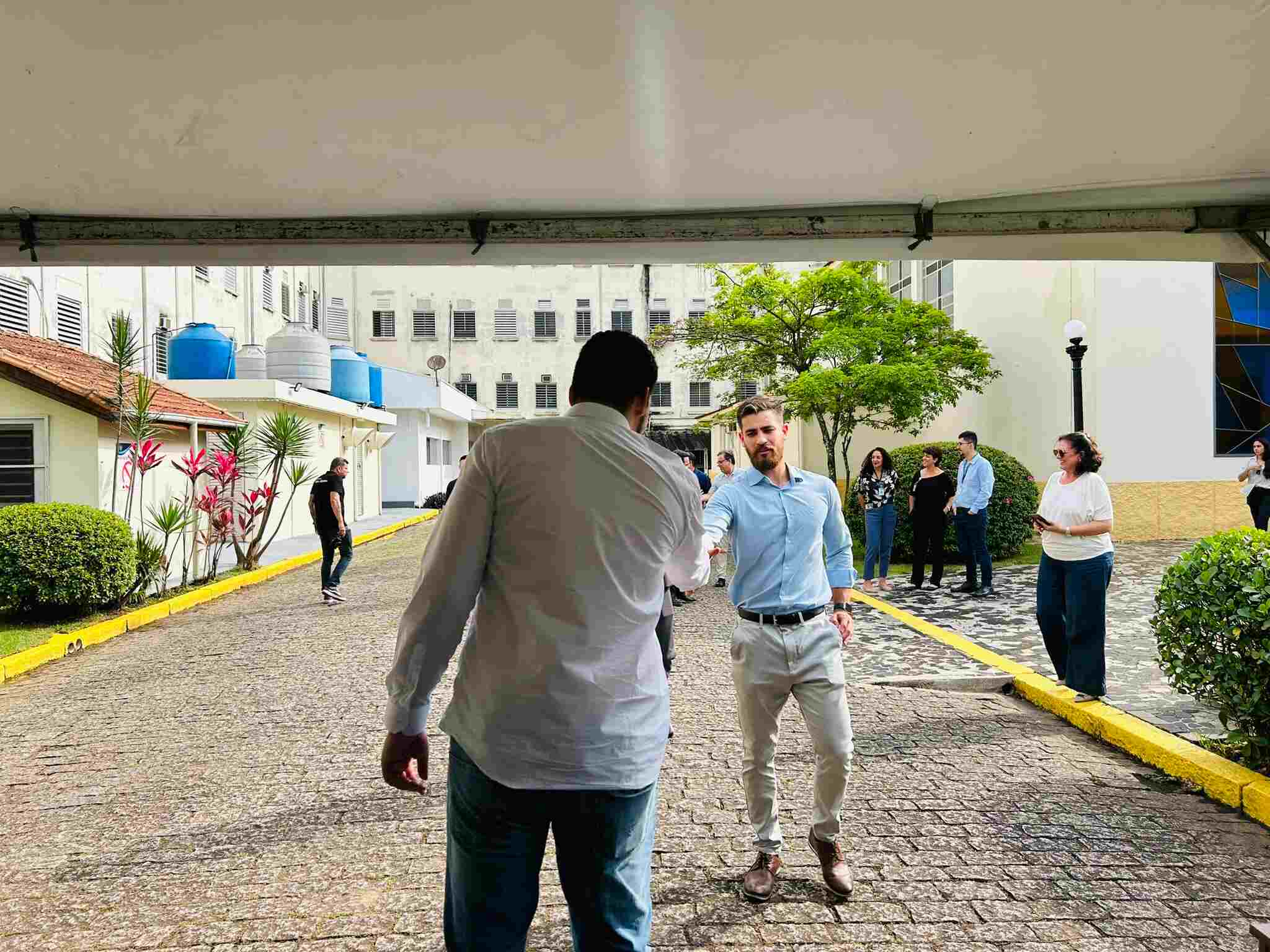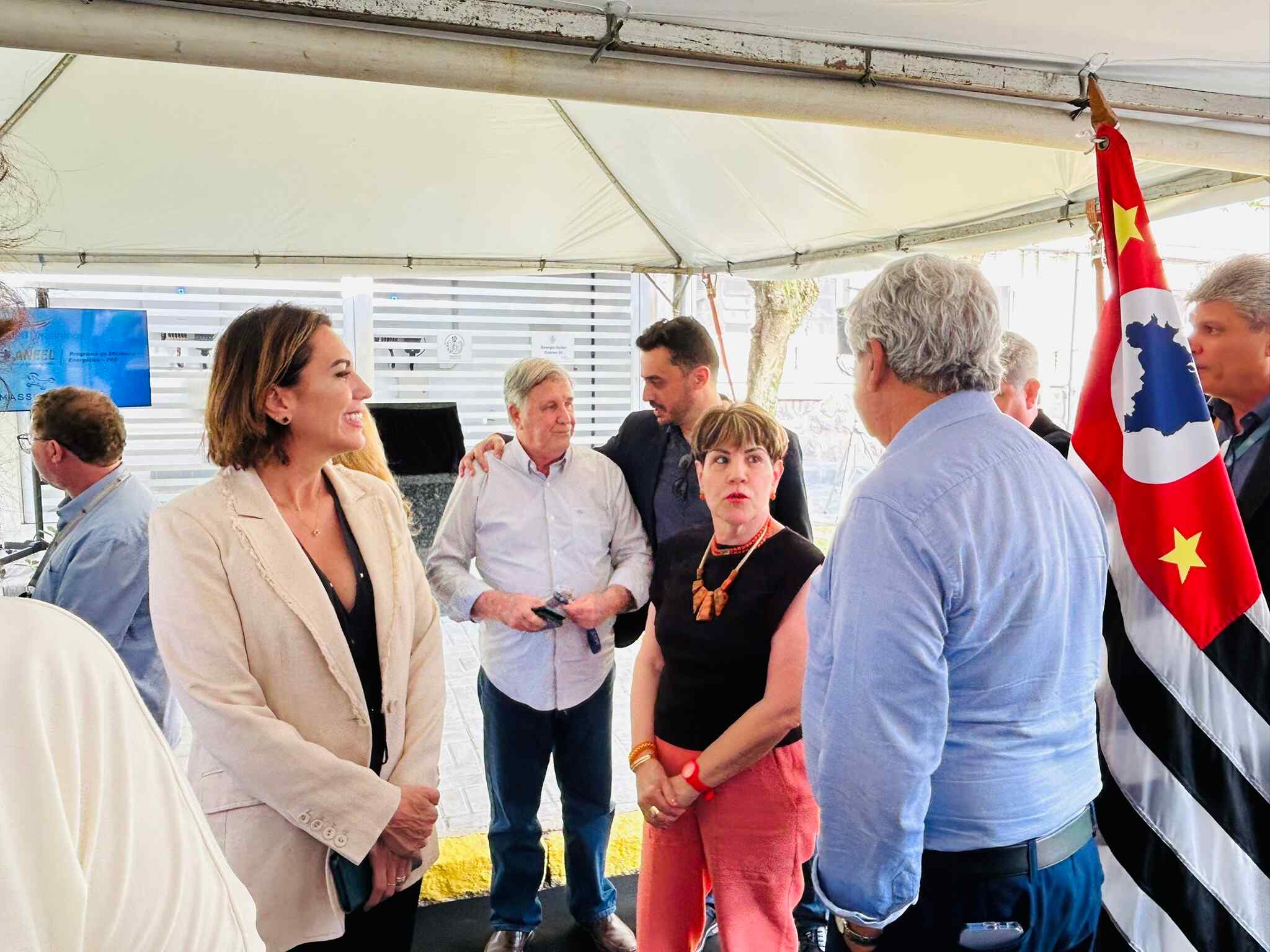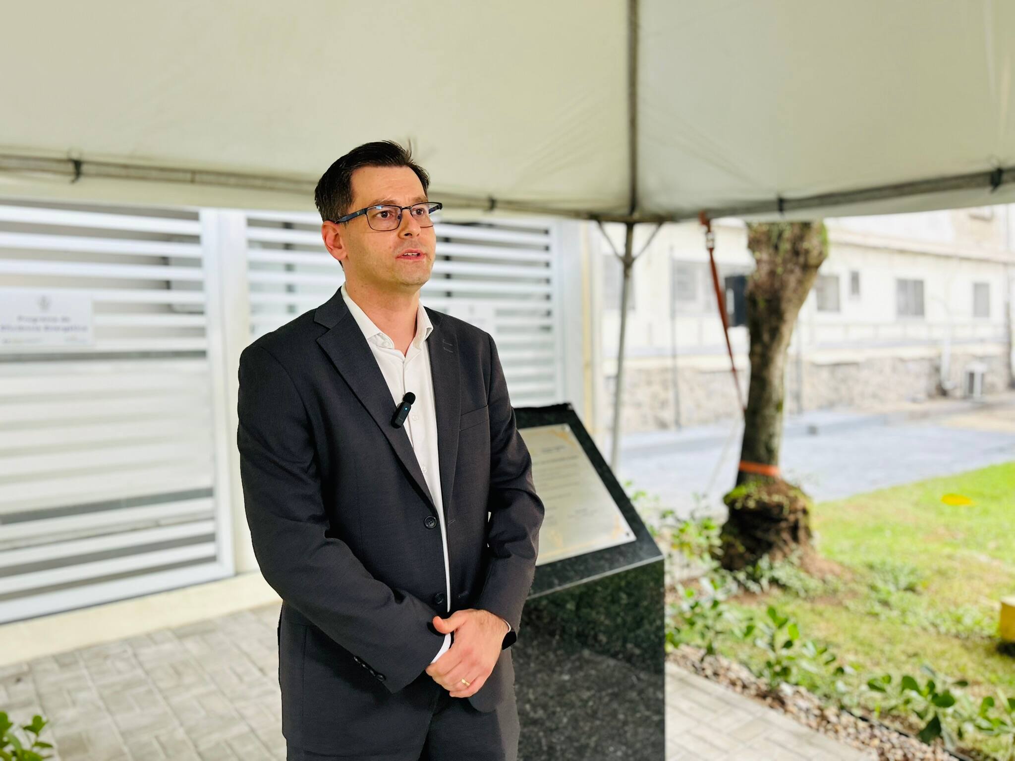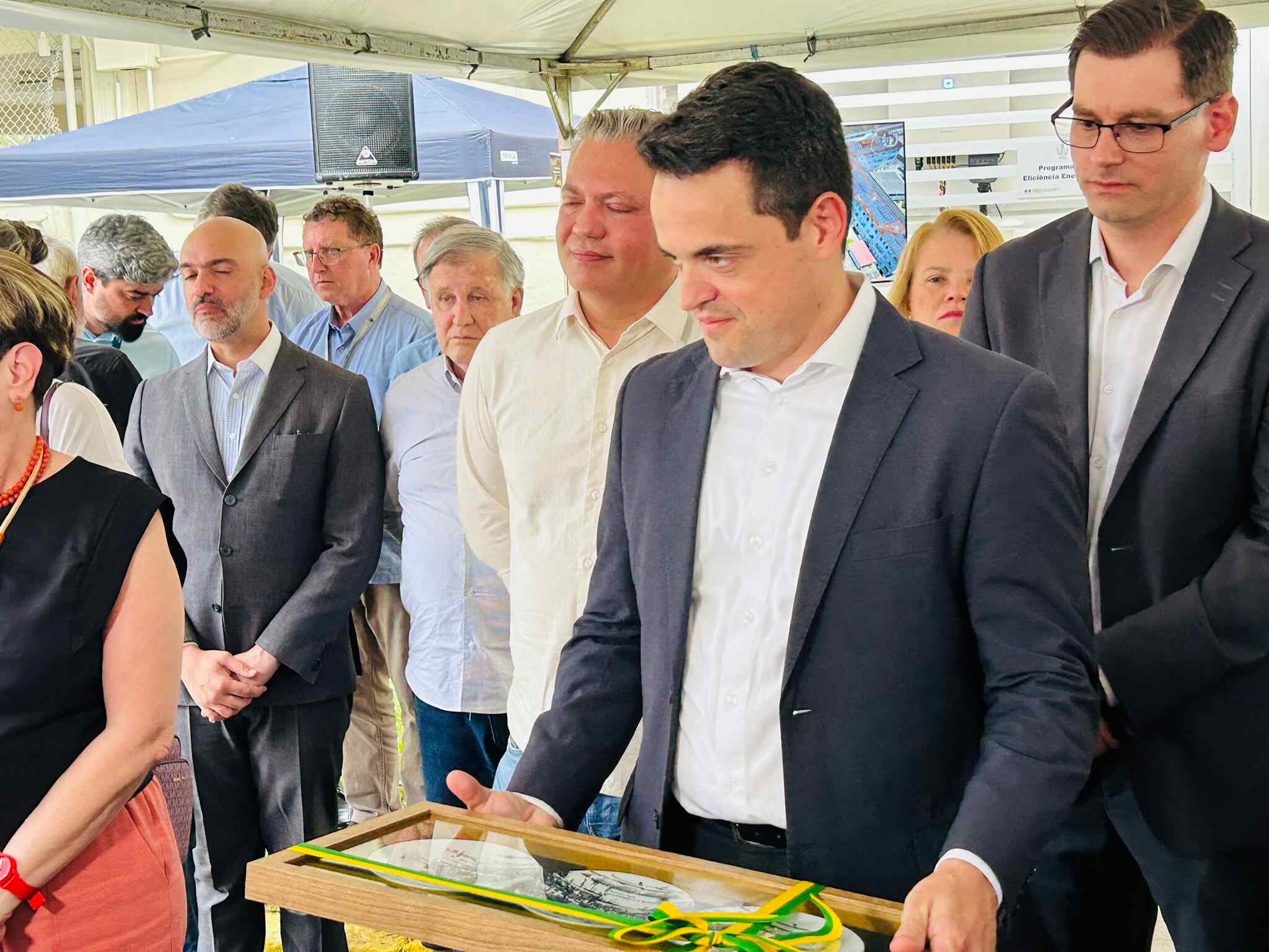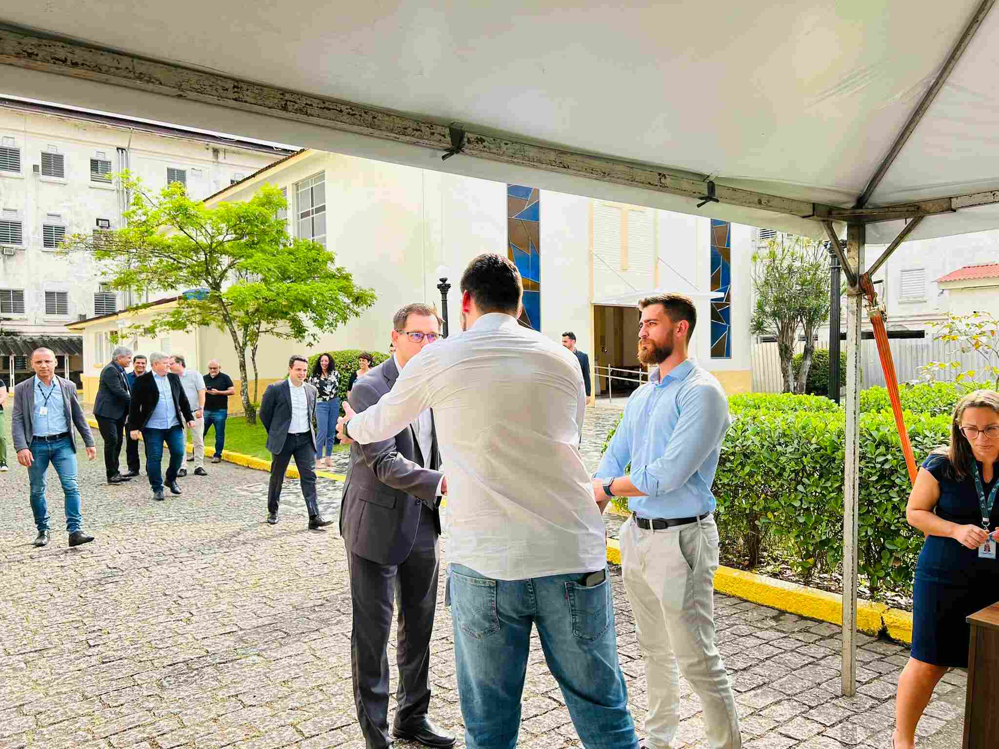 Houve descerramento da placa instalada em frente à cabine de inversores, para marcar o novo momento da instituição, mais uma vez pioneira em projetos tecnológicos e sustentáveis no Litoral Paulista.