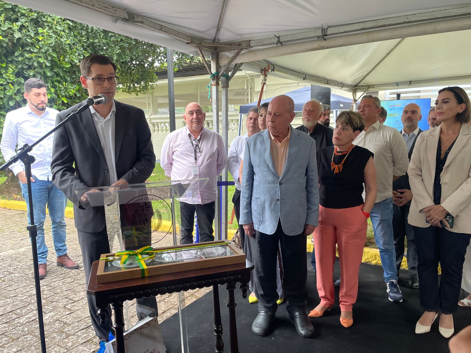 No evento, o provedor Ariovaldo Feliciano, presenteou a CPFL com um conjunto de peças exclusivas em porcelana, que retratam a fachada histórica da Santa Casa de Santos, produzidas na ocasião da comemoração dos 480 anos da instituição.