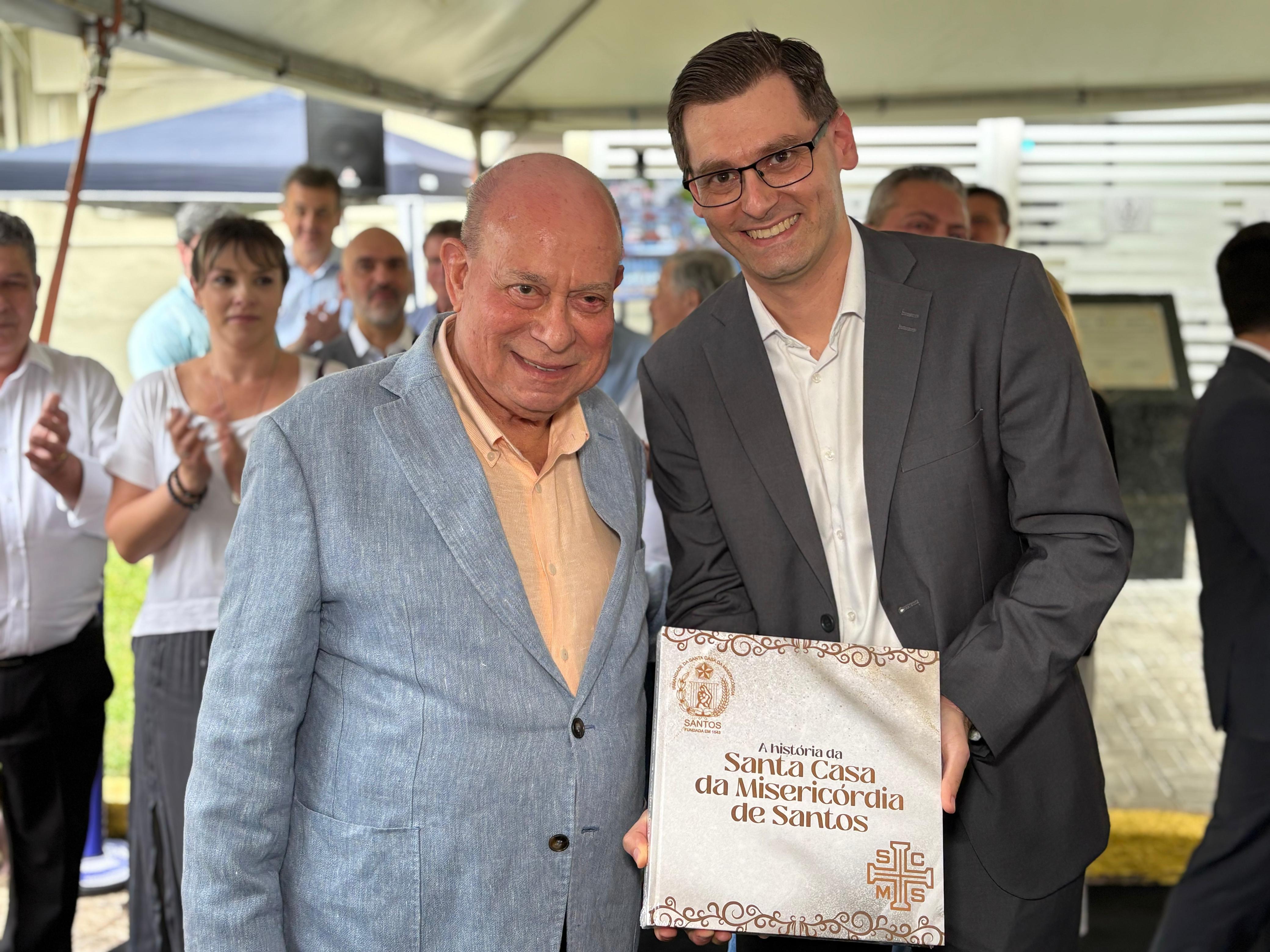 Ariovaldo Feliciano também fez a entrega de exemplares do livro que conta a história do hospital para o diretor presidente da CPFL Piratininga, Rafael Lazzaretti; para o diretor de Estratégia e Inovação do Grupo CPFL Energia, Bruno Monte; e também para a deputada federal, Rosana Valle; e para o deputado estadual, Paulo Corrêa Junior.