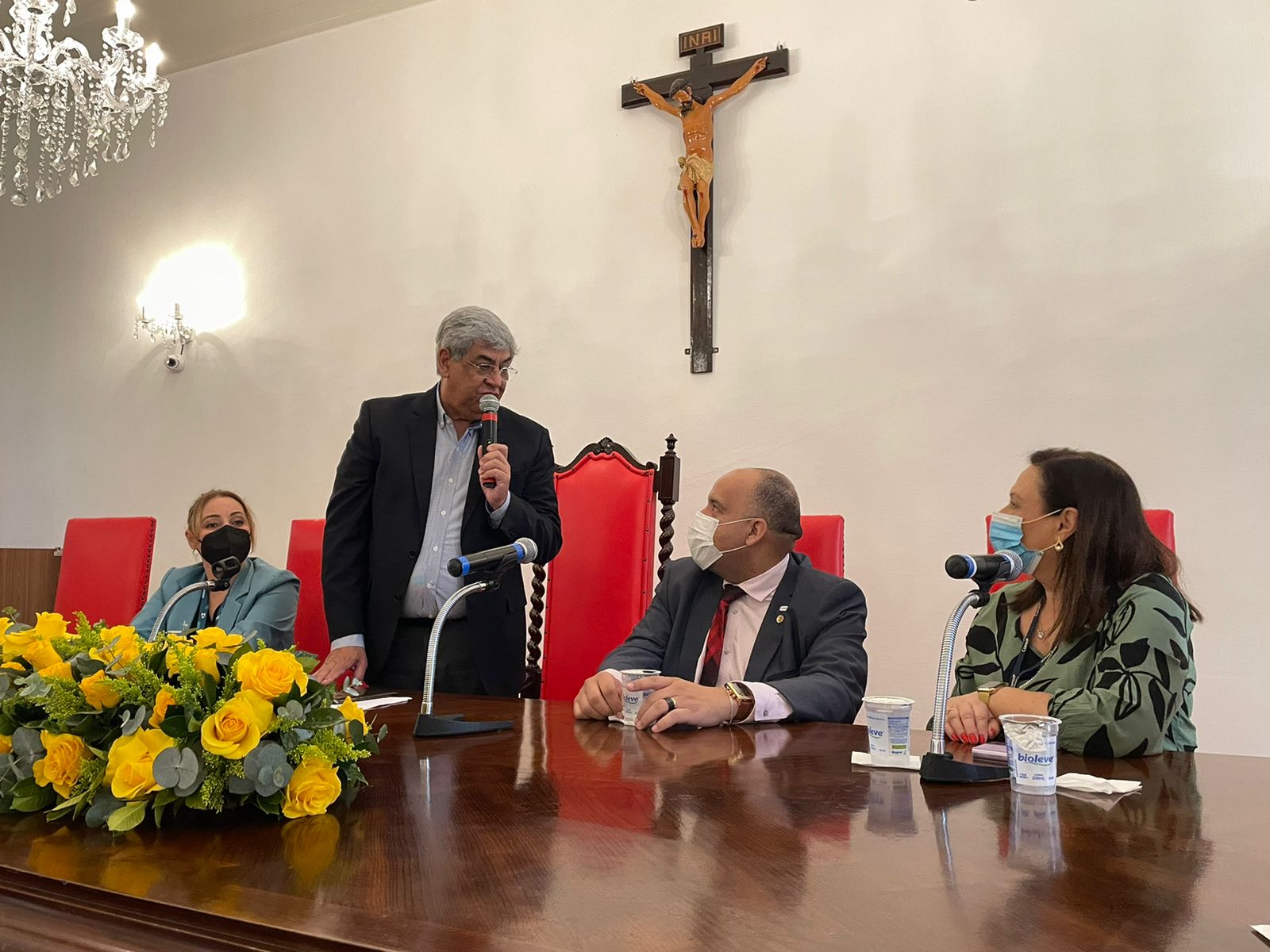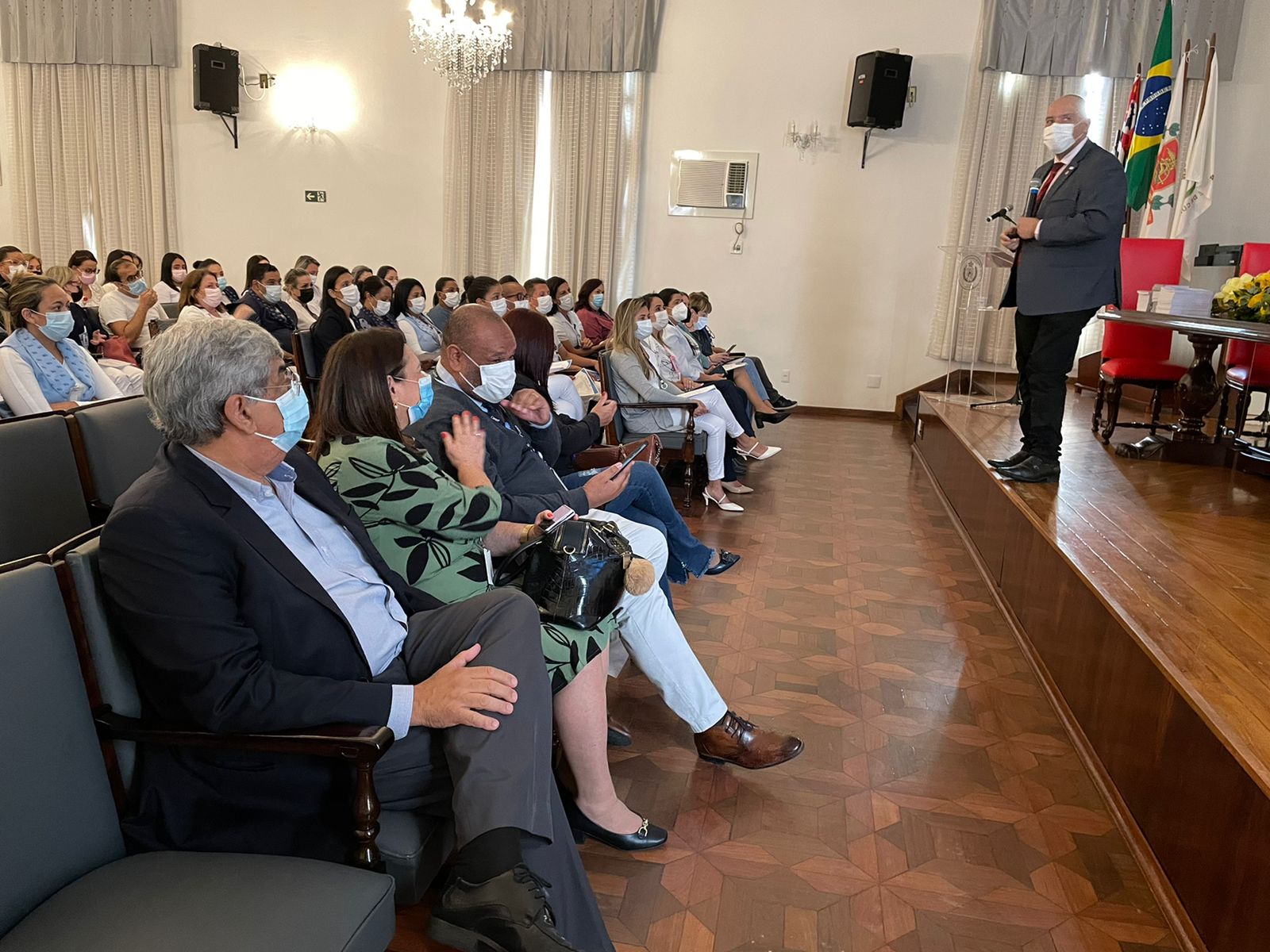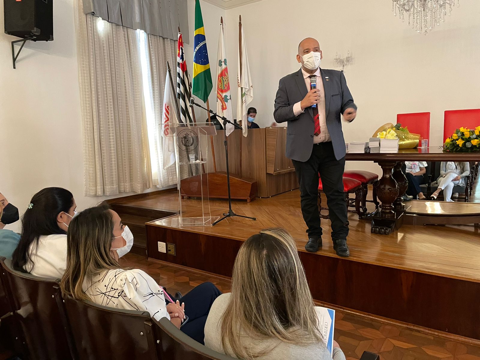 O vice provedor da Irmandade, Carlos Teixeira Filho, tomou a vez da palavra e aproveitou a oportunidade para enaltecer a representatividade da atuação da presidente da Comissão de Controle da Qualidade, Eliana Lopes Feliciano, esposa do provedor Ariovaldo Feliciano, parafraseando que “’ao lado’ de um grande homem, sempre existe uma grande mulher”, se referindo à importância de suas ações para a evolução e transformação da instituição.