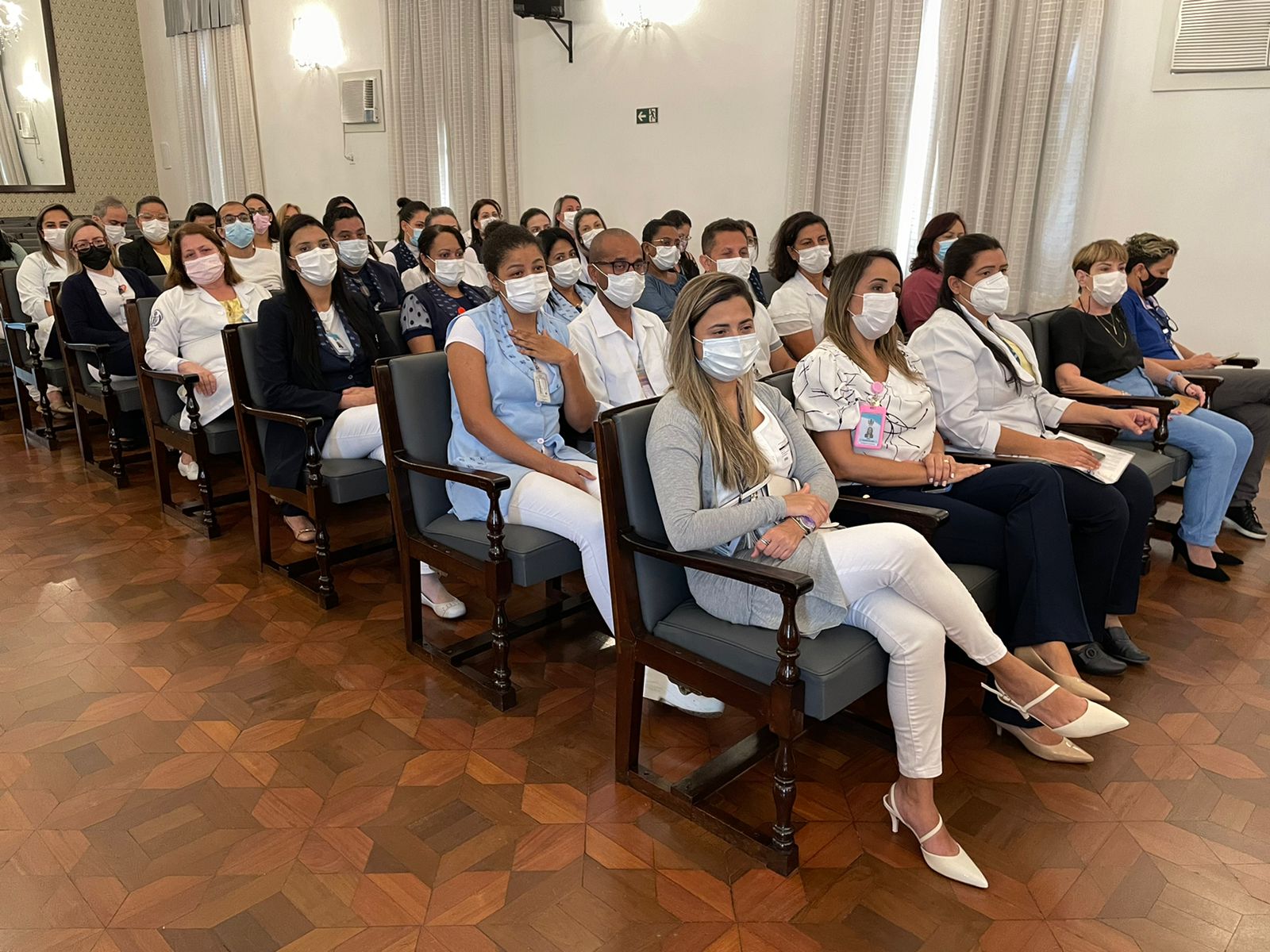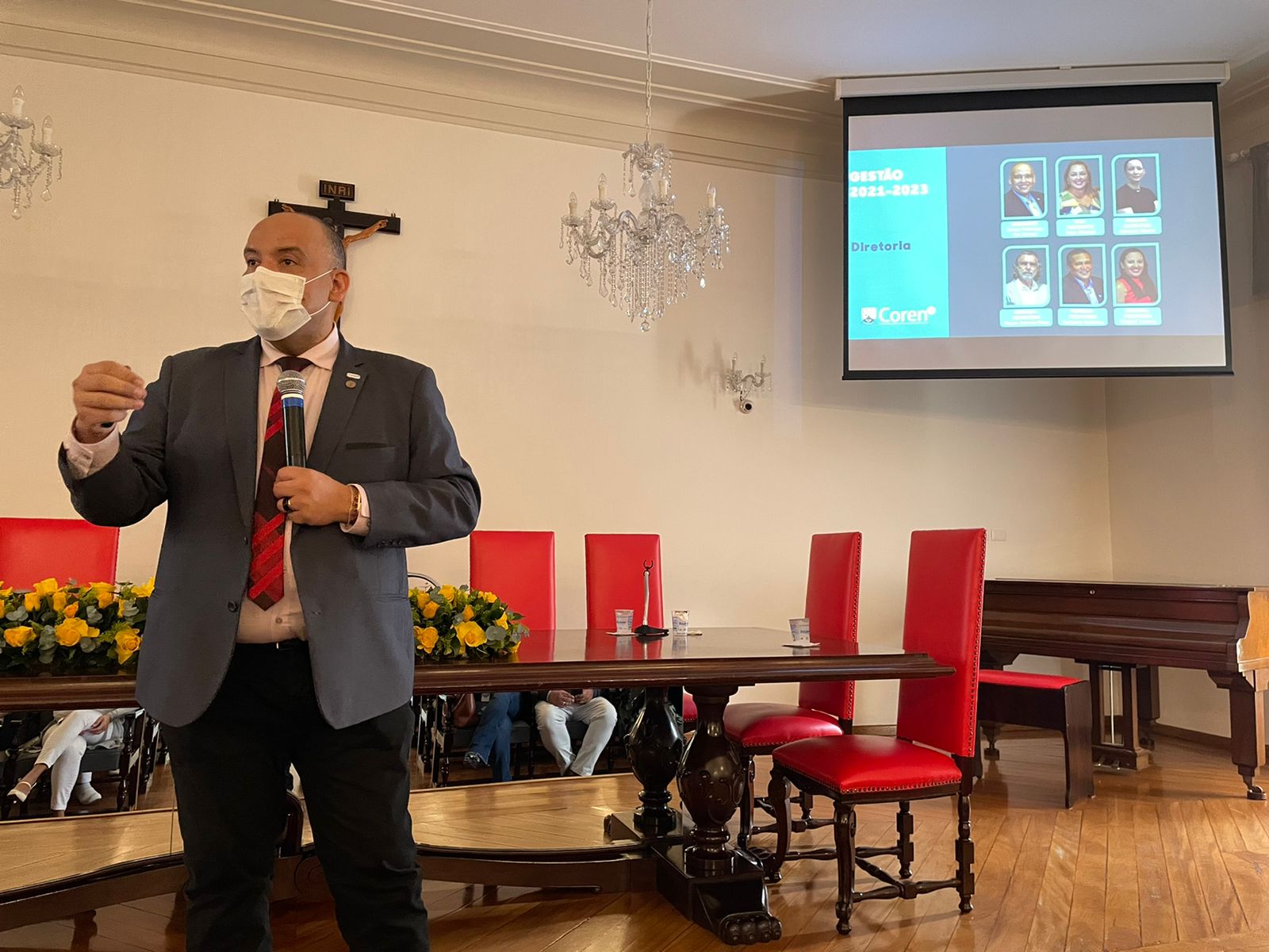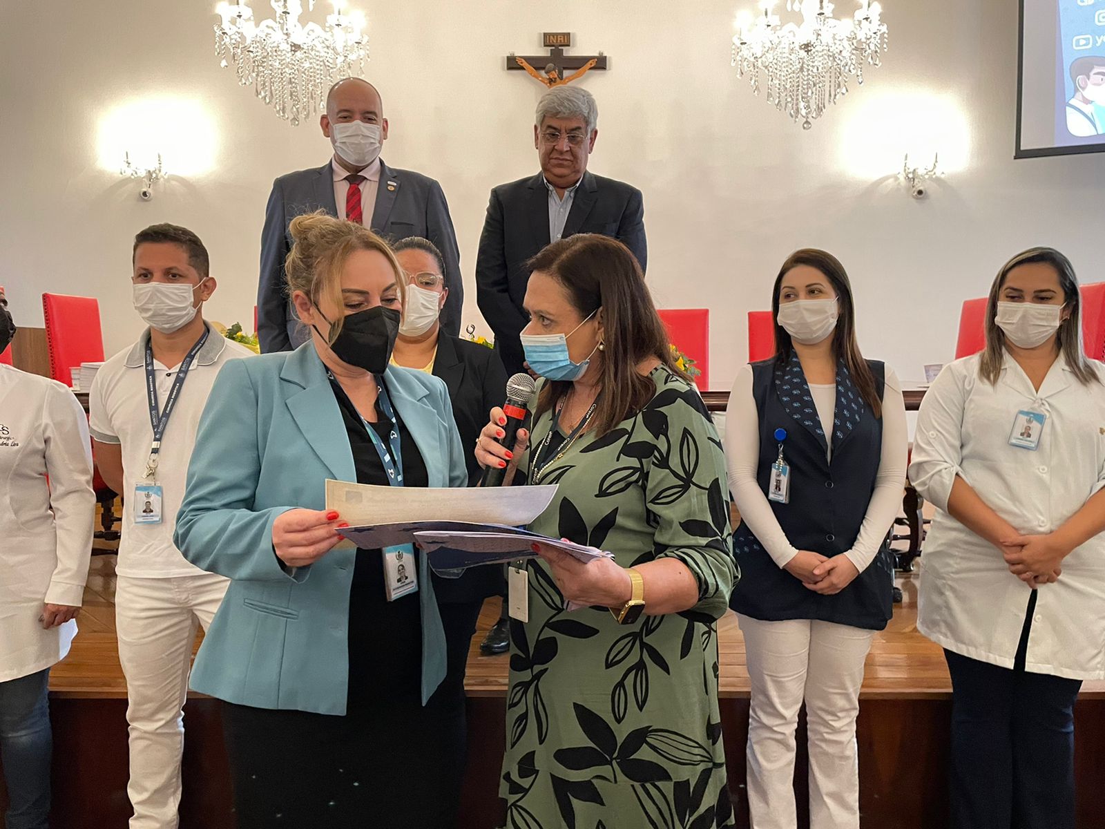 Após o discurso do vice provedor, os 22 membros da Comissão de Ética de Enfermagem 2022/2025 tomaram posse, sendo eleita como presidente a Enfª. Juliana Cordella, e como secretária a Enfª. Ionara de Medeiros.