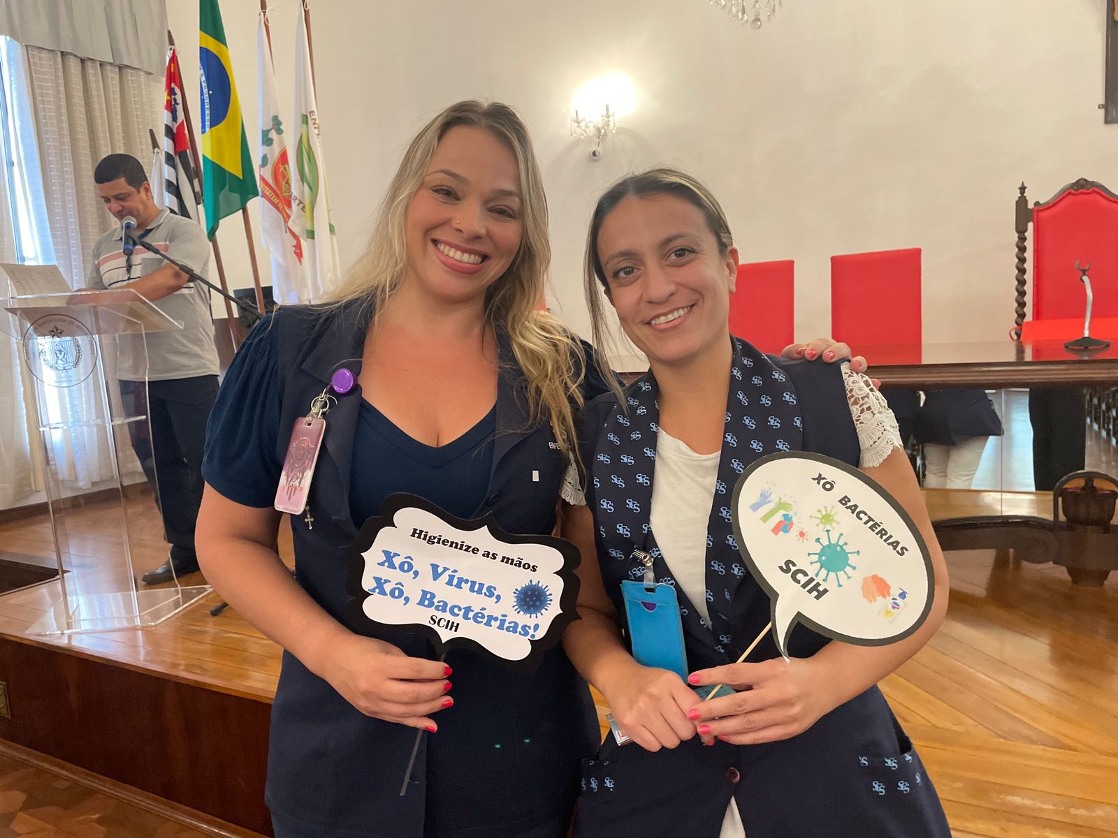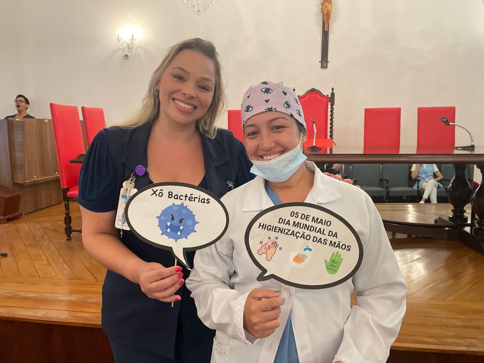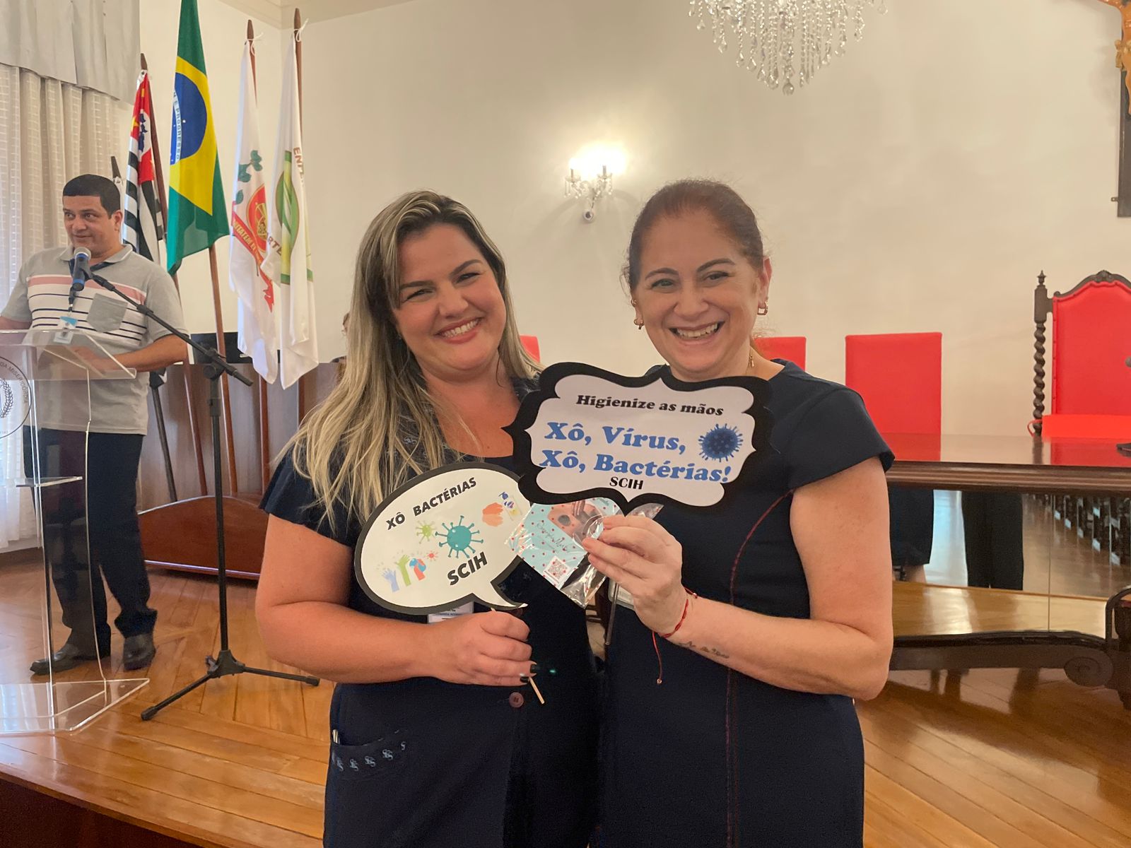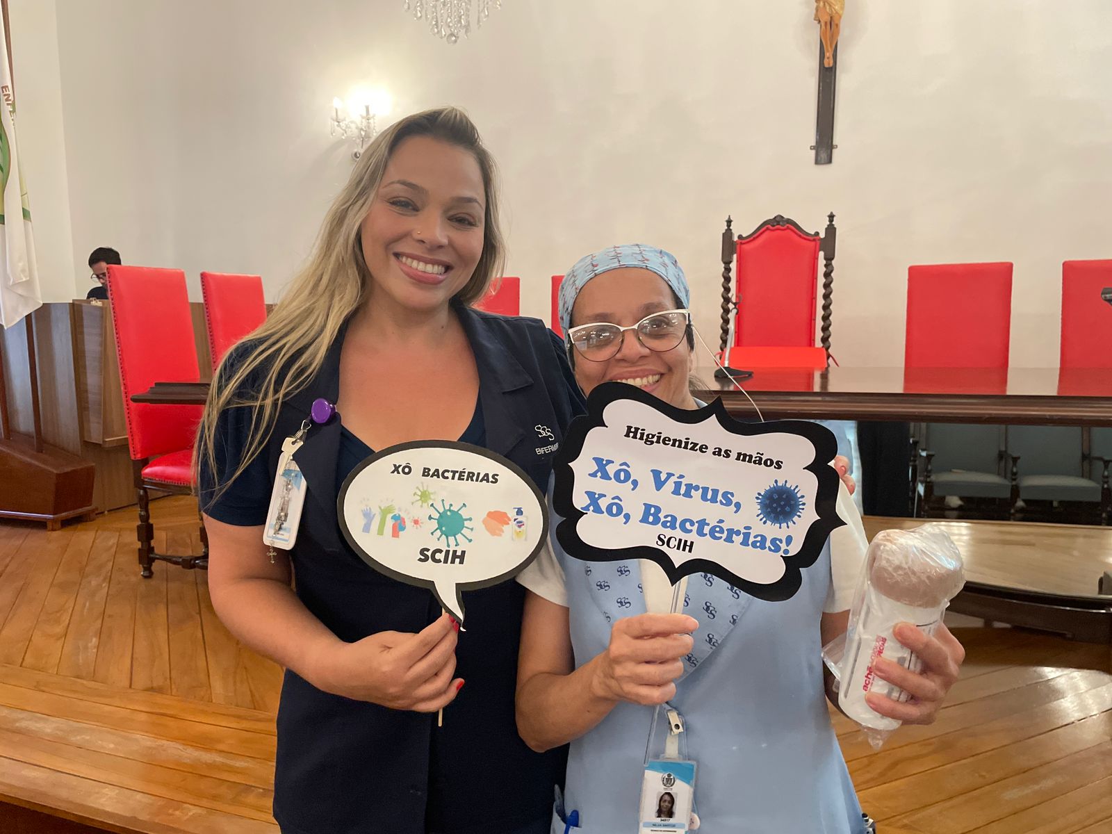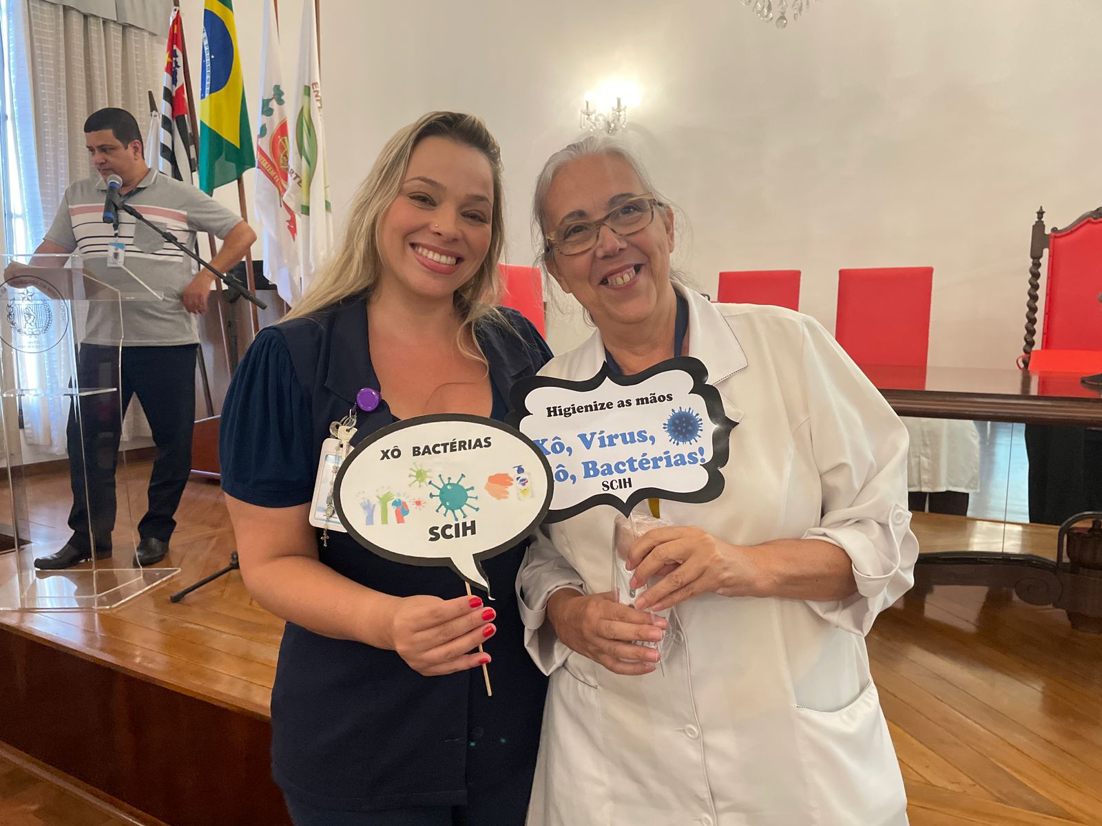 Além disso, foi apresentado vídeos educacionais que ensinam a técnica correta de higienizar as mãos e também o Índice da Taxa de Infecção Hospitalar da Santa Casa de Santos, que em 2015 era de 5,5% e em 2023 caiu para 2,2%. Esse número é o resultado do trabalho da equipe da CCIH, dentro das unidades de internação, especialmente nas UTI’s.