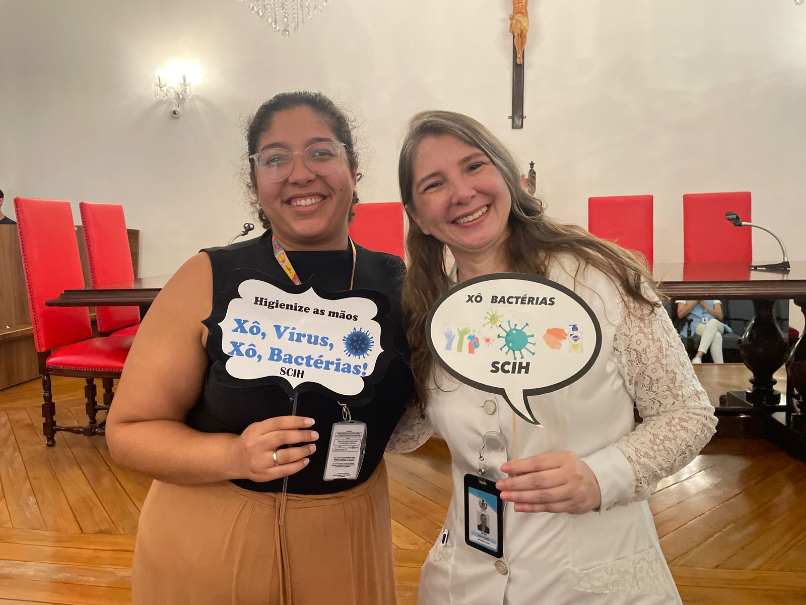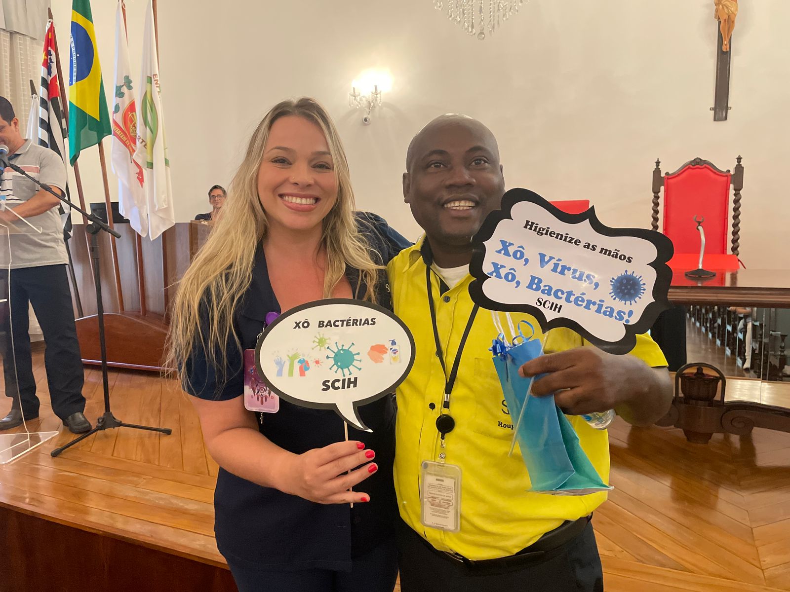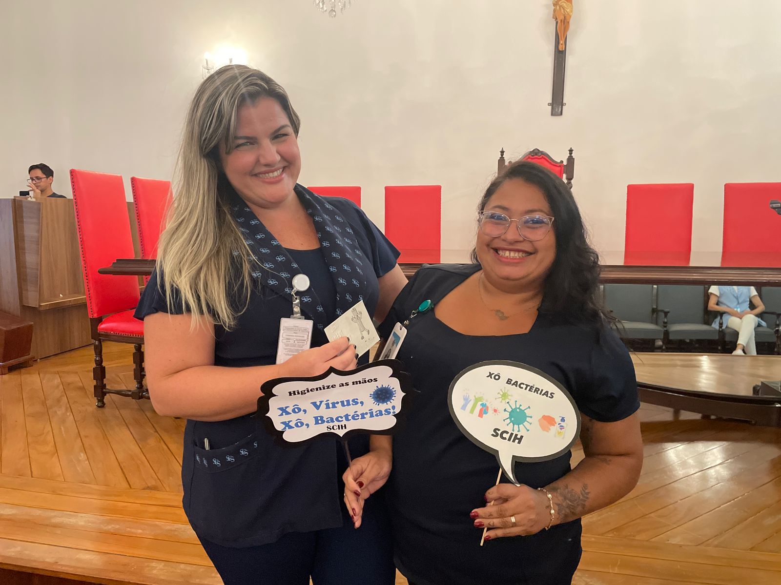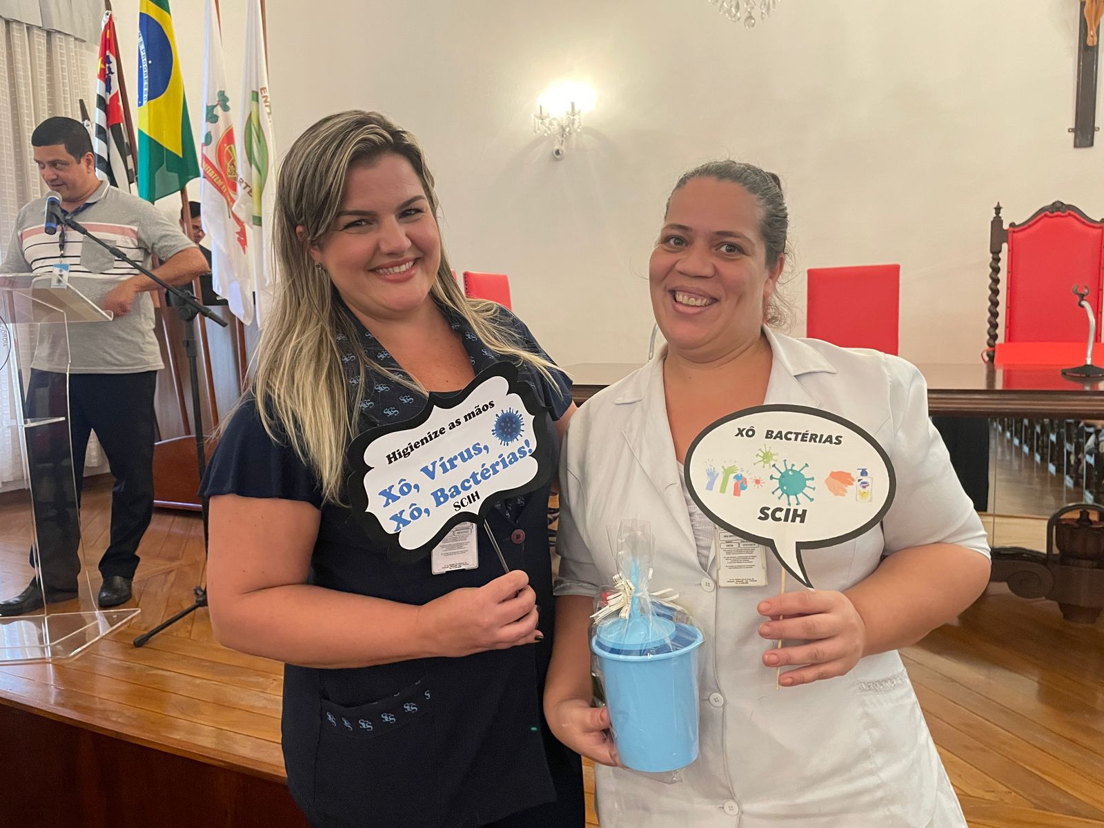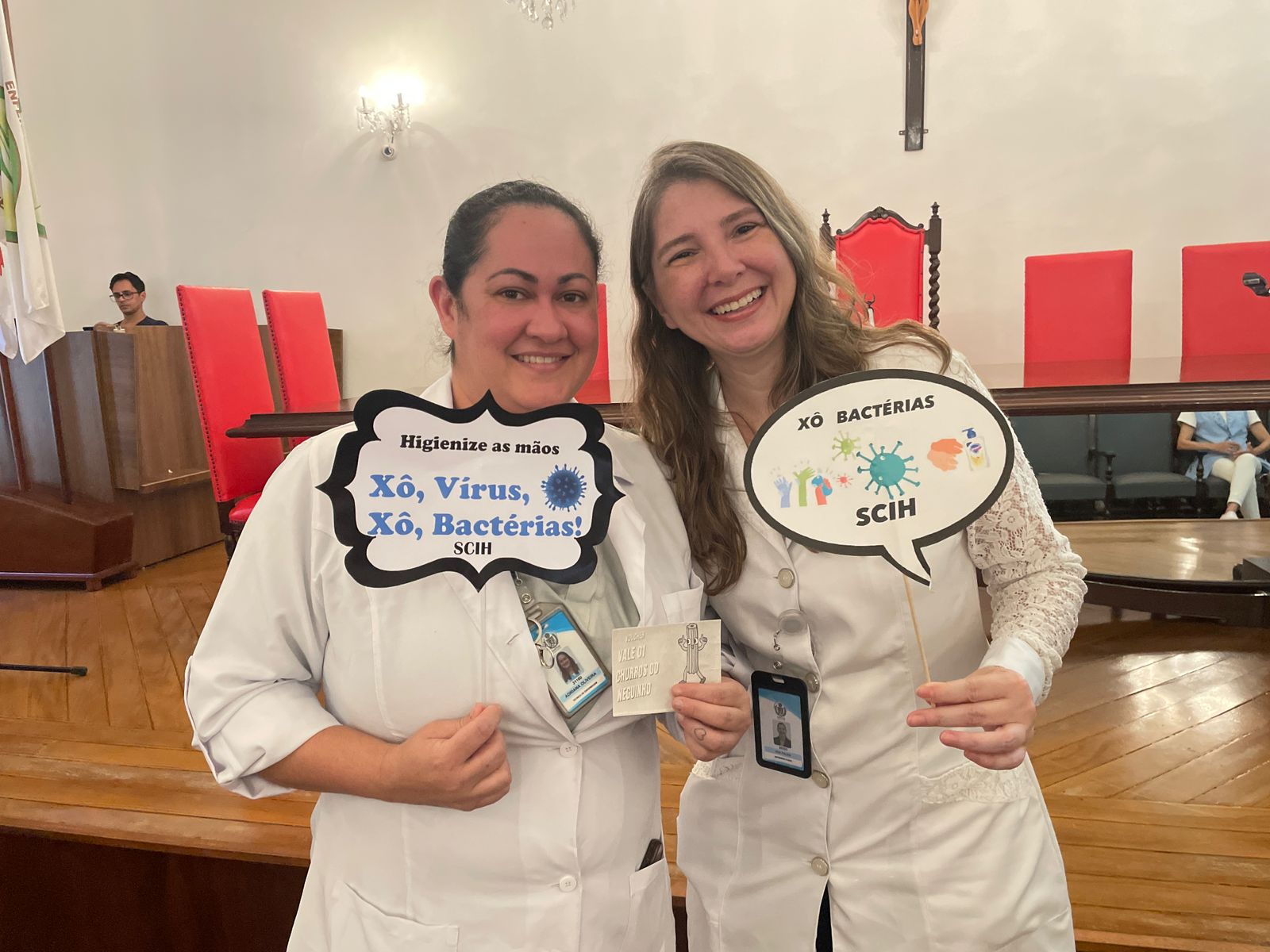 Além disso, foi apresentado vídeos educacionais que ensinam a técnica correta de higienizar as mãos e também o Índice da Taxa de Infecção Hospitalar da Santa Casa de Santos, que em 2015 era de 5,5% e em 2023 caiu para 2,2%. Esse número é o resultado do trabalho da equipe da CCIH, dentro das unidades de internação, especialmente nas UTI’s.