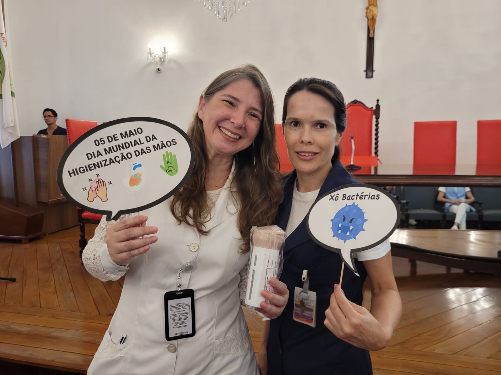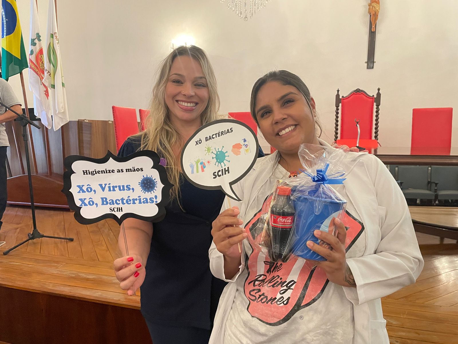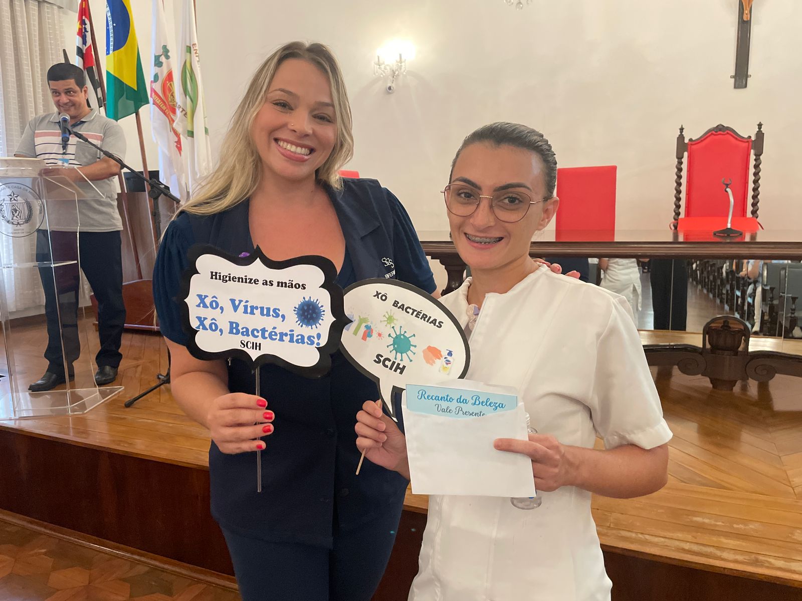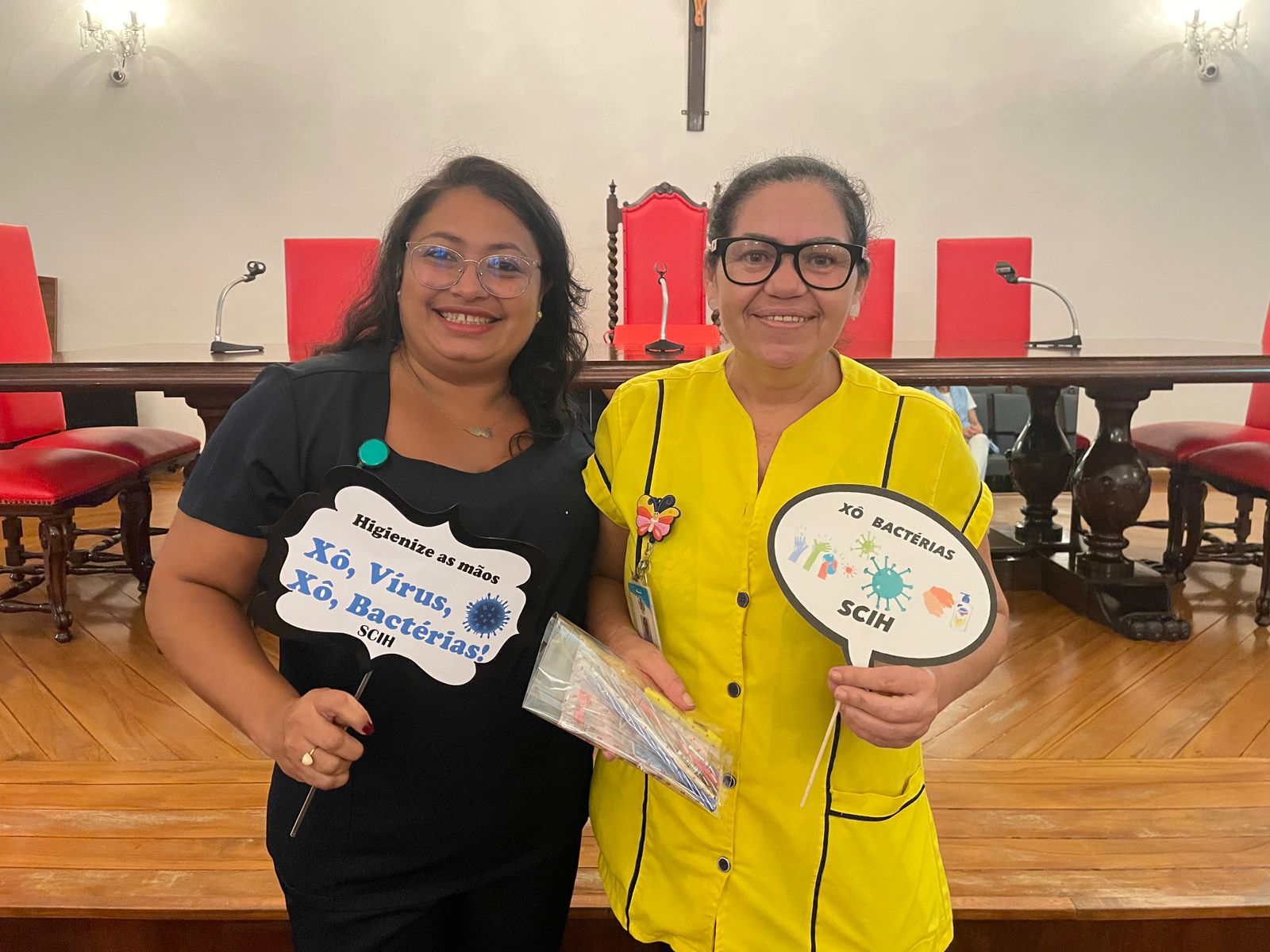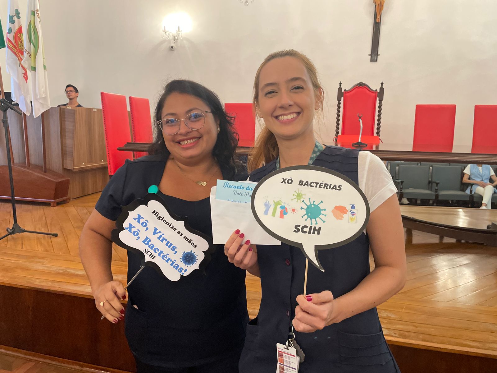 Além disso, foi apresentado vídeos educacionais que ensinam a técnica correta de higienizar as mãos e também o Índice da Taxa de Infecção Hospitalar da Santa Casa de Santos, que em 2015 era de 5,5% e em 2023 caiu para 2,2%. Esse número é o resultado do trabalho da equipe da CCIH, dentro das unidades de internação, especialmente nas UTI’s.