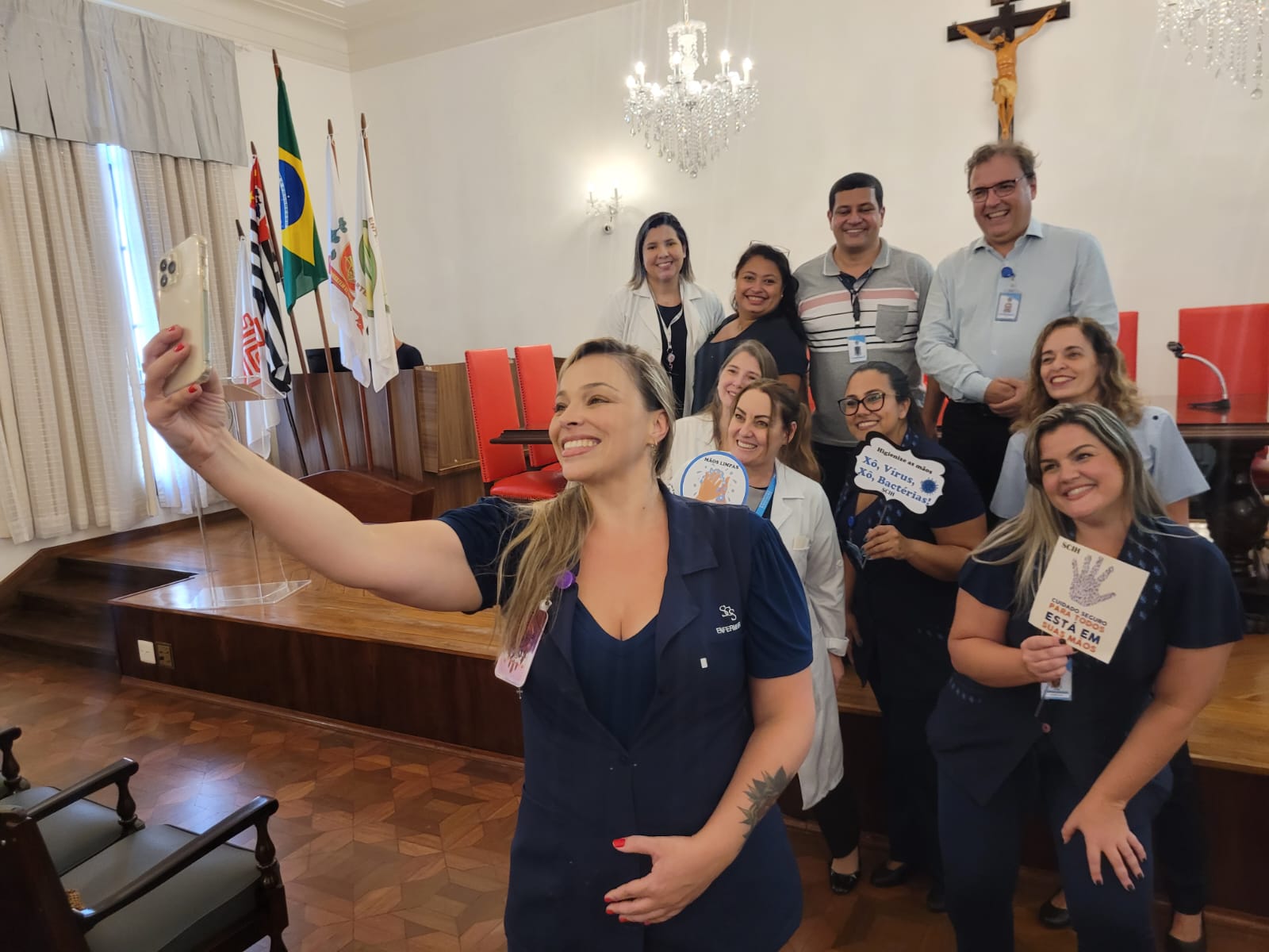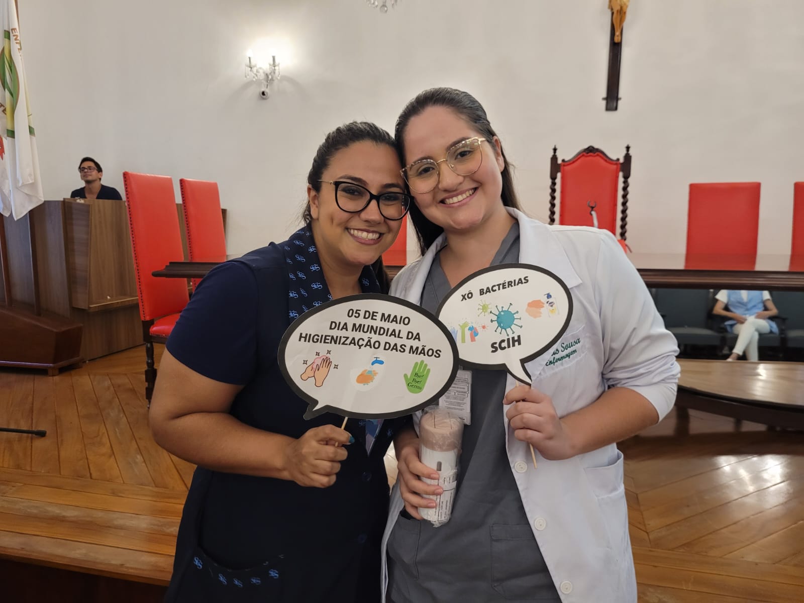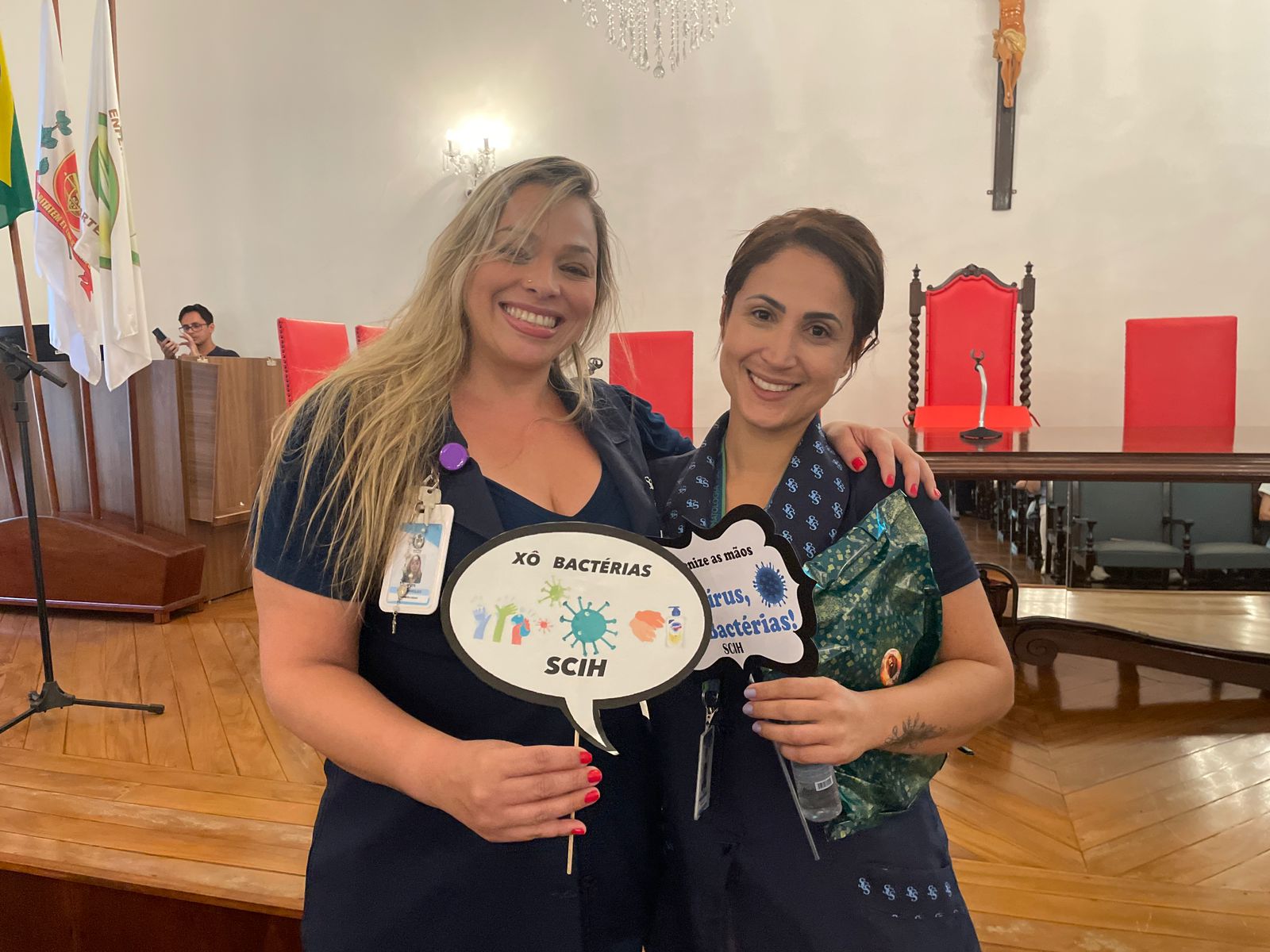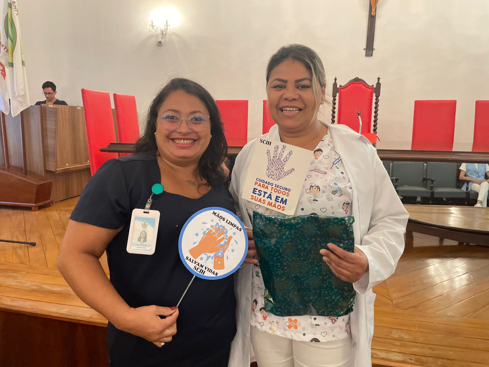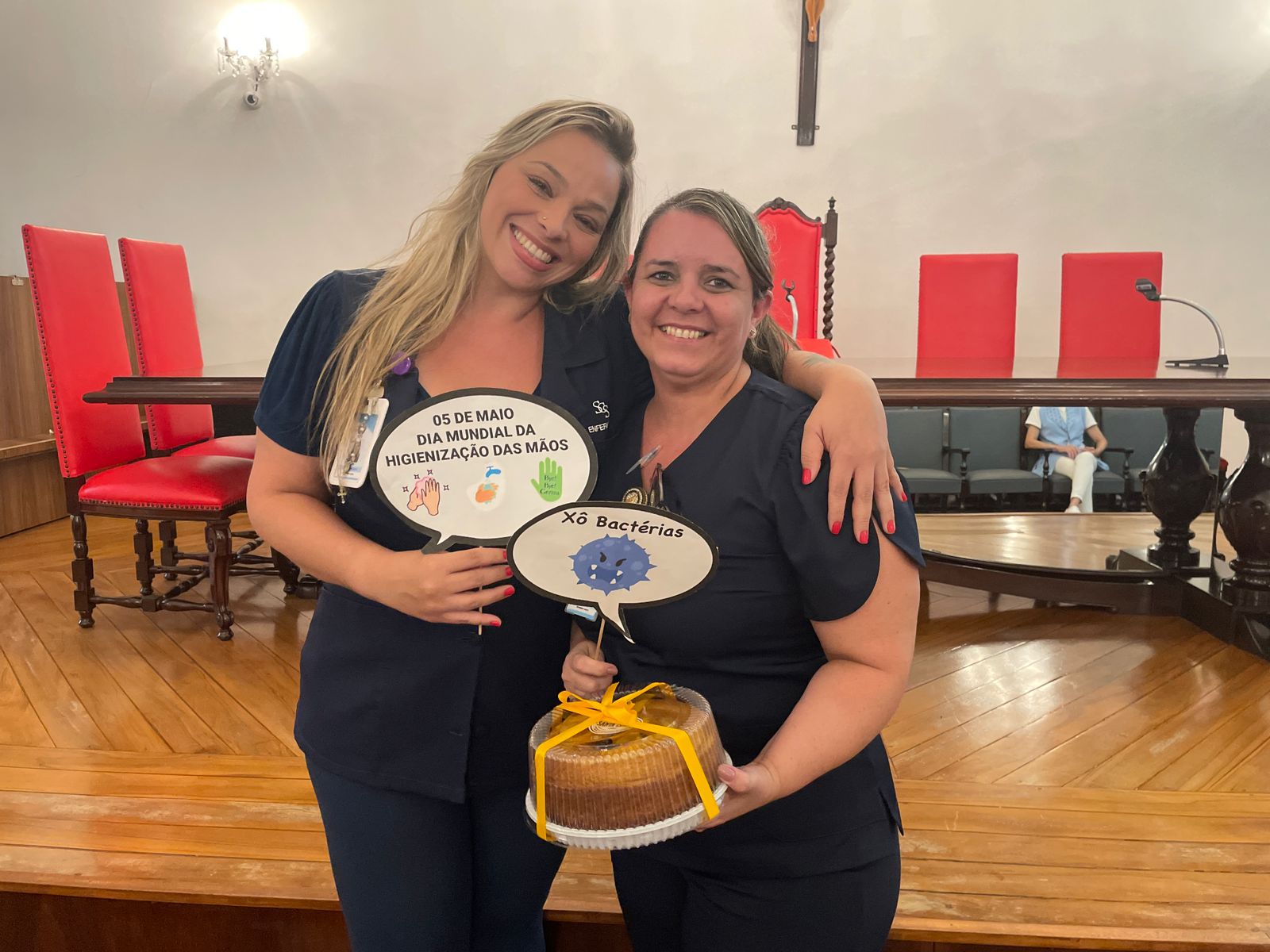 Além disso, foi apresentado vídeos educacionais que ensinam a técnica correta de higienizar as mãos e também o Índice da Taxa de Infecção Hospitalar da Santa Casa de Santos, que em 2015 era de 5,5% e em 2023 caiu para 2,2%. Esse número é o resultado do trabalho da equipe da CCIH, dentro das unidades de internação, especialmente nas UTI’s.