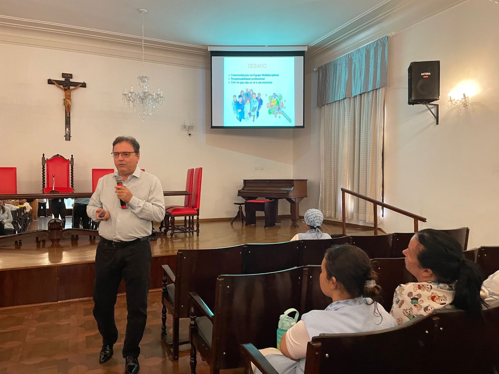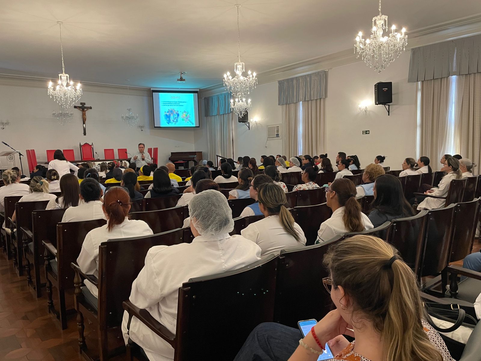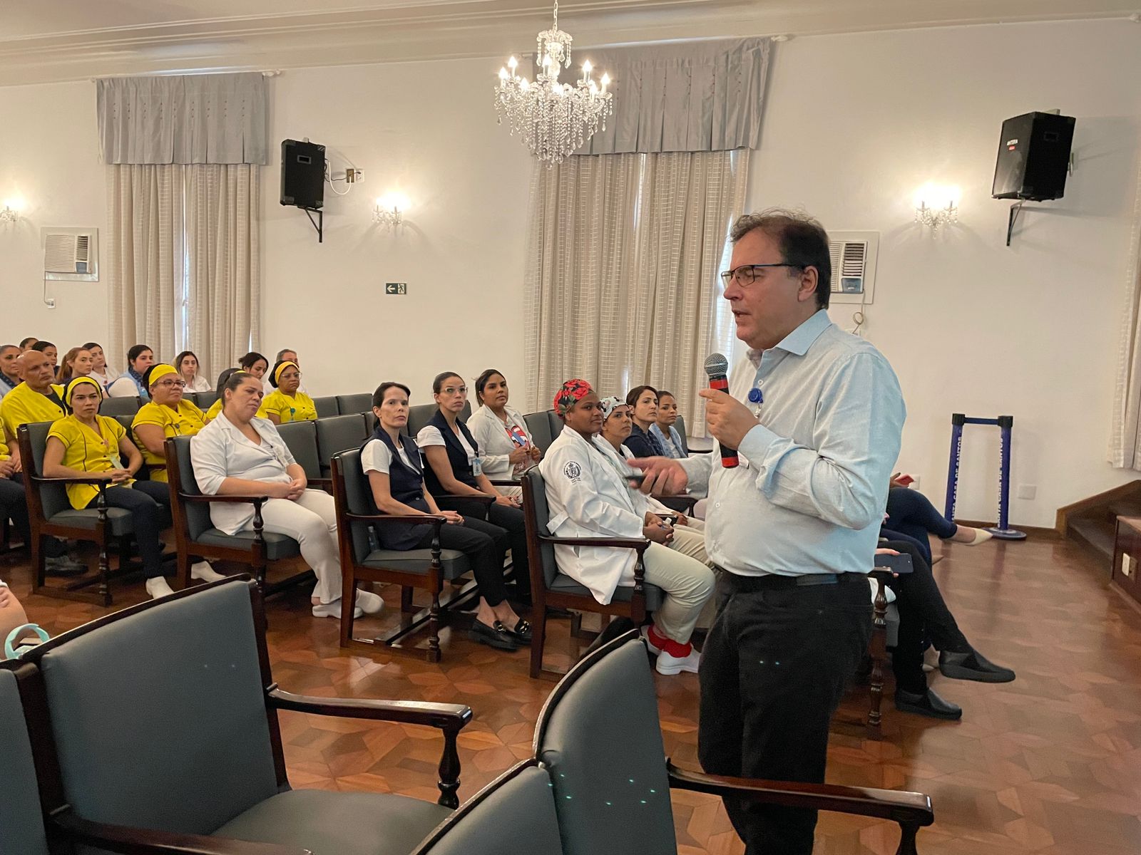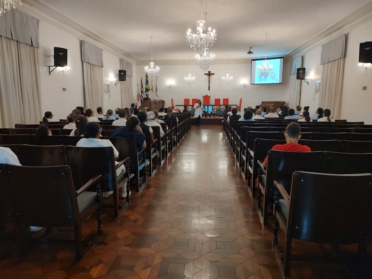 Os colaboradores de todos os setores da Irmandade puderam participar do evento que contou com a presença de gestores e lideranças. O Infectologista Dr. Sergio Feijoó iniciou o curso frisando que “Lavar as mãos é um ato que aprendemos desde a infância, sempre antes de comer e depois de utilizar o banheiro”.