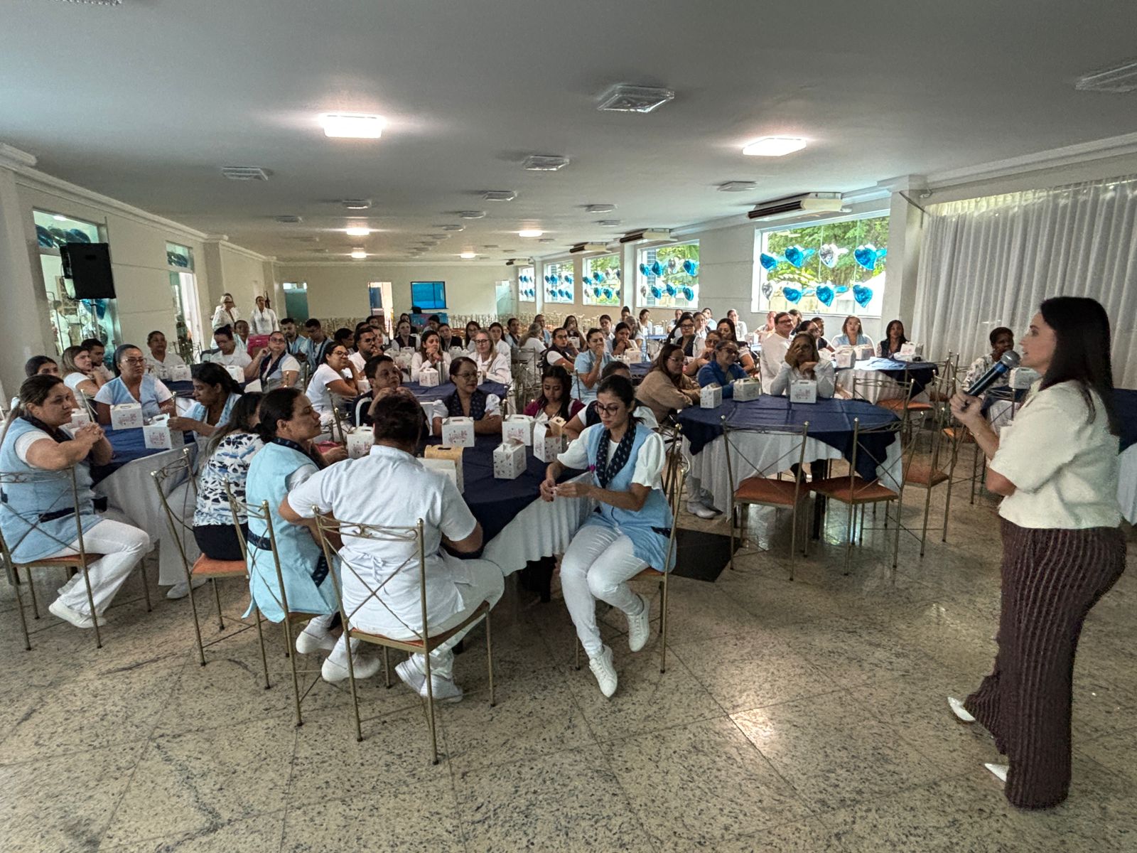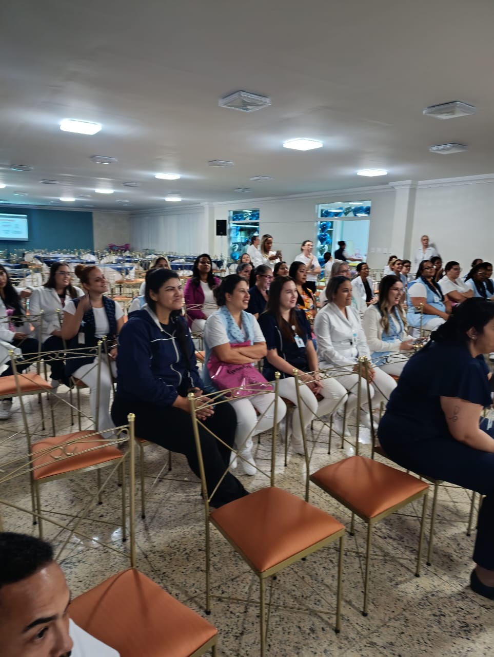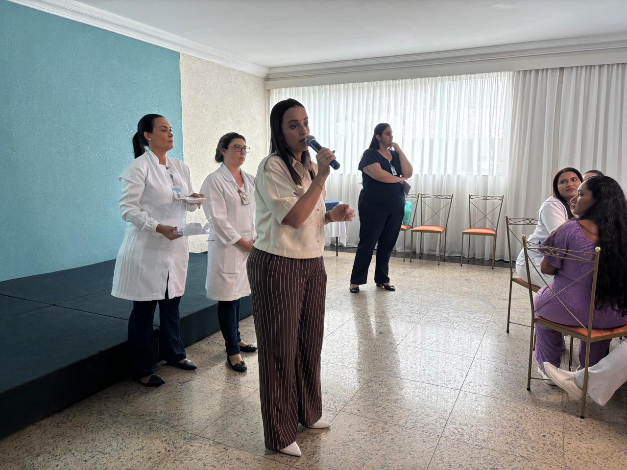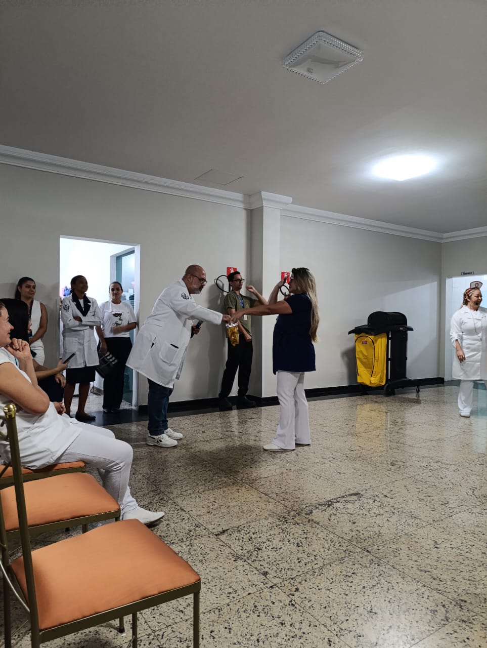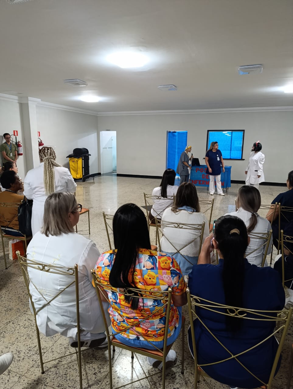 Já na Abrescas, a abertura especial, no período da manhã, contou com apresentação musical dos próprios colaboradores. A Enfª Ester, que atua no 5ºA, cantou duas músicas e agitou o pessoal.