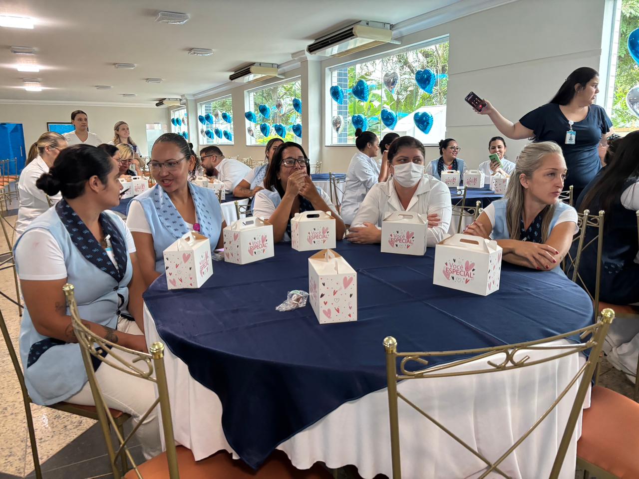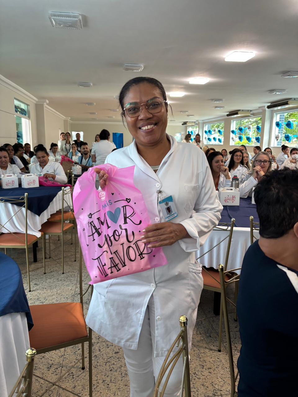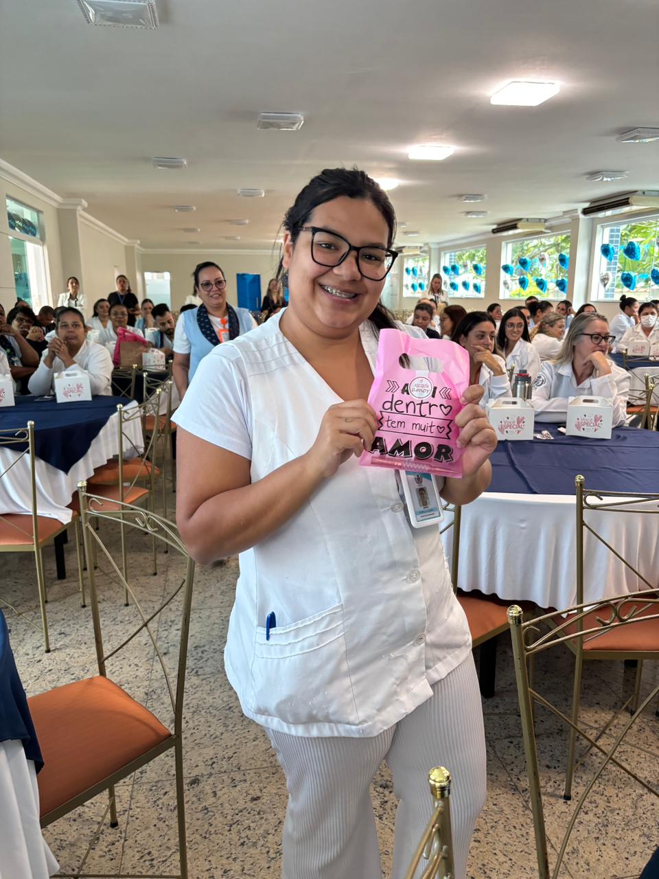 Também foram sorteados diversos brindes e os colaboradores receberam uma caixa com lanche e um porta crachá especial da Semana da Enfermagem.