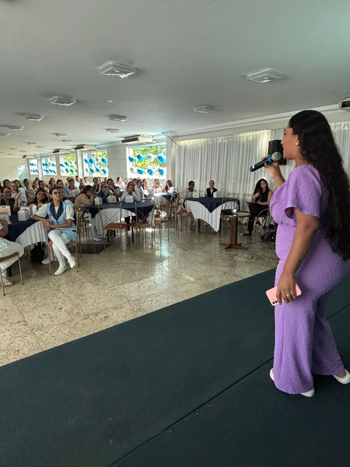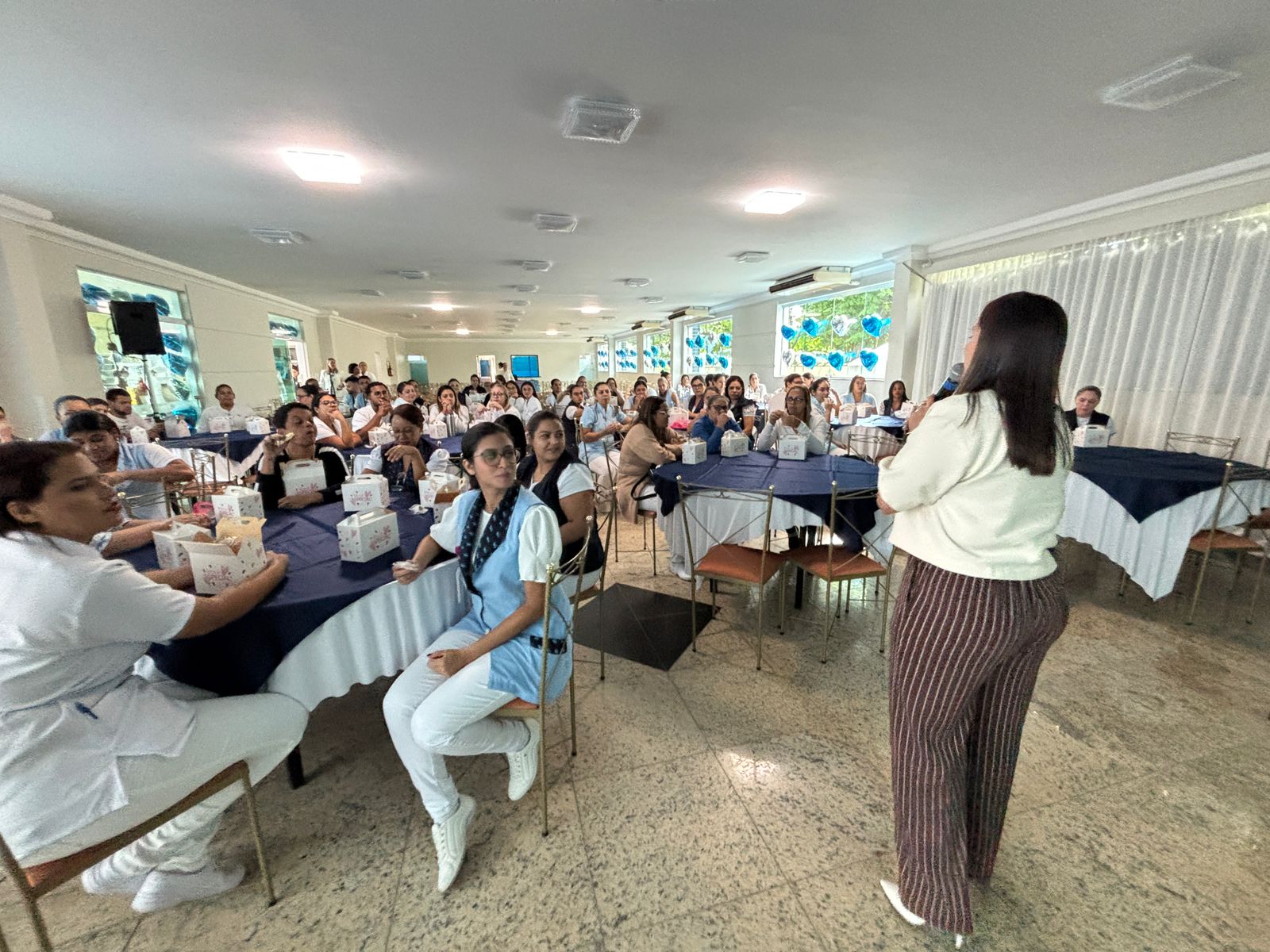 No salão rosa do 2ºA, representantes da Mary Kay, ministraram aulas de auto maquiagem com dicas de beleza. Ficou disponível um toten de fotos impressas para os colaboradores registrarem o momento. Além disso, também tinha disponível aula prática de Yoga e massagem.