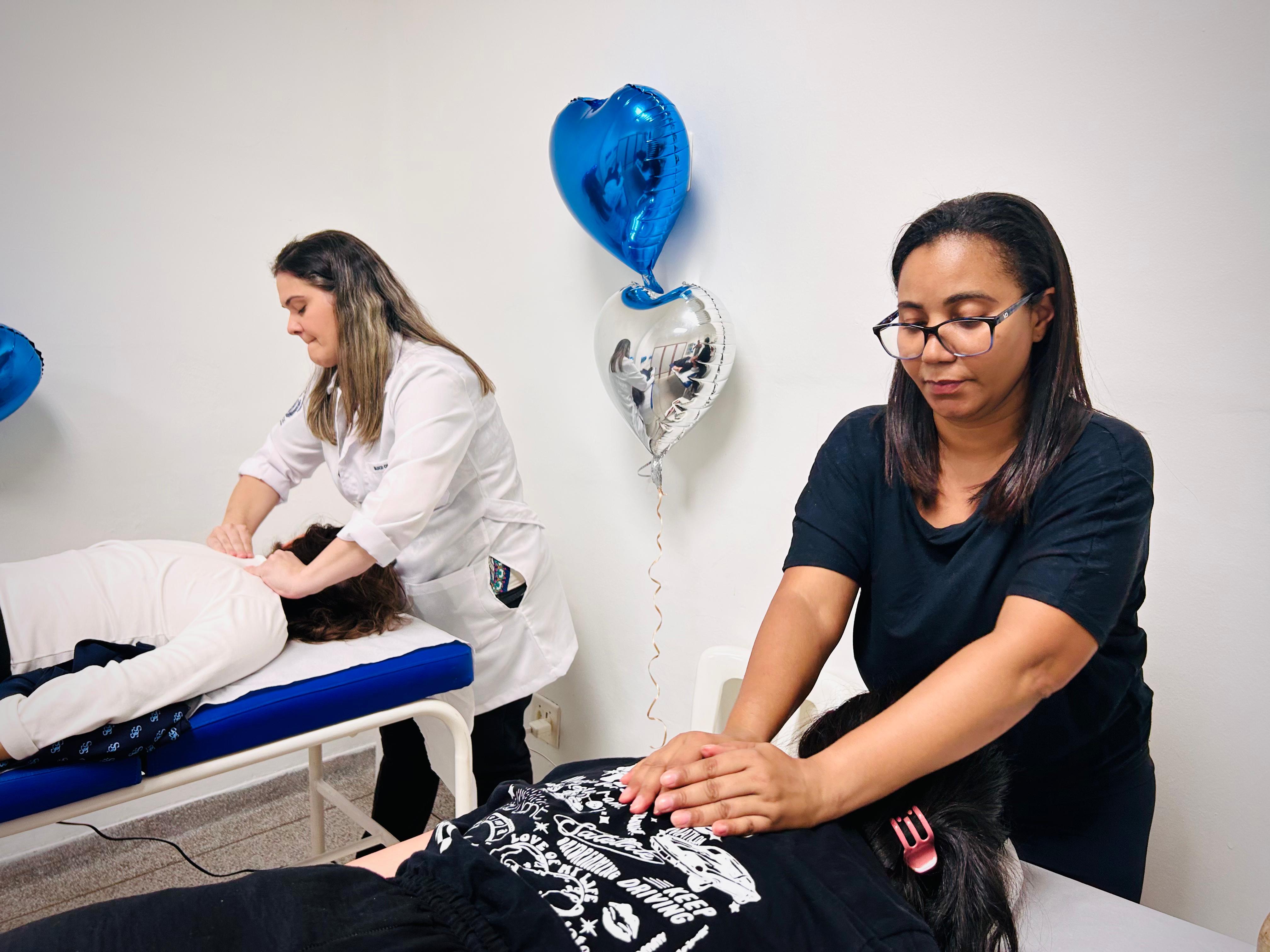Aula de Yoga e Massagem.