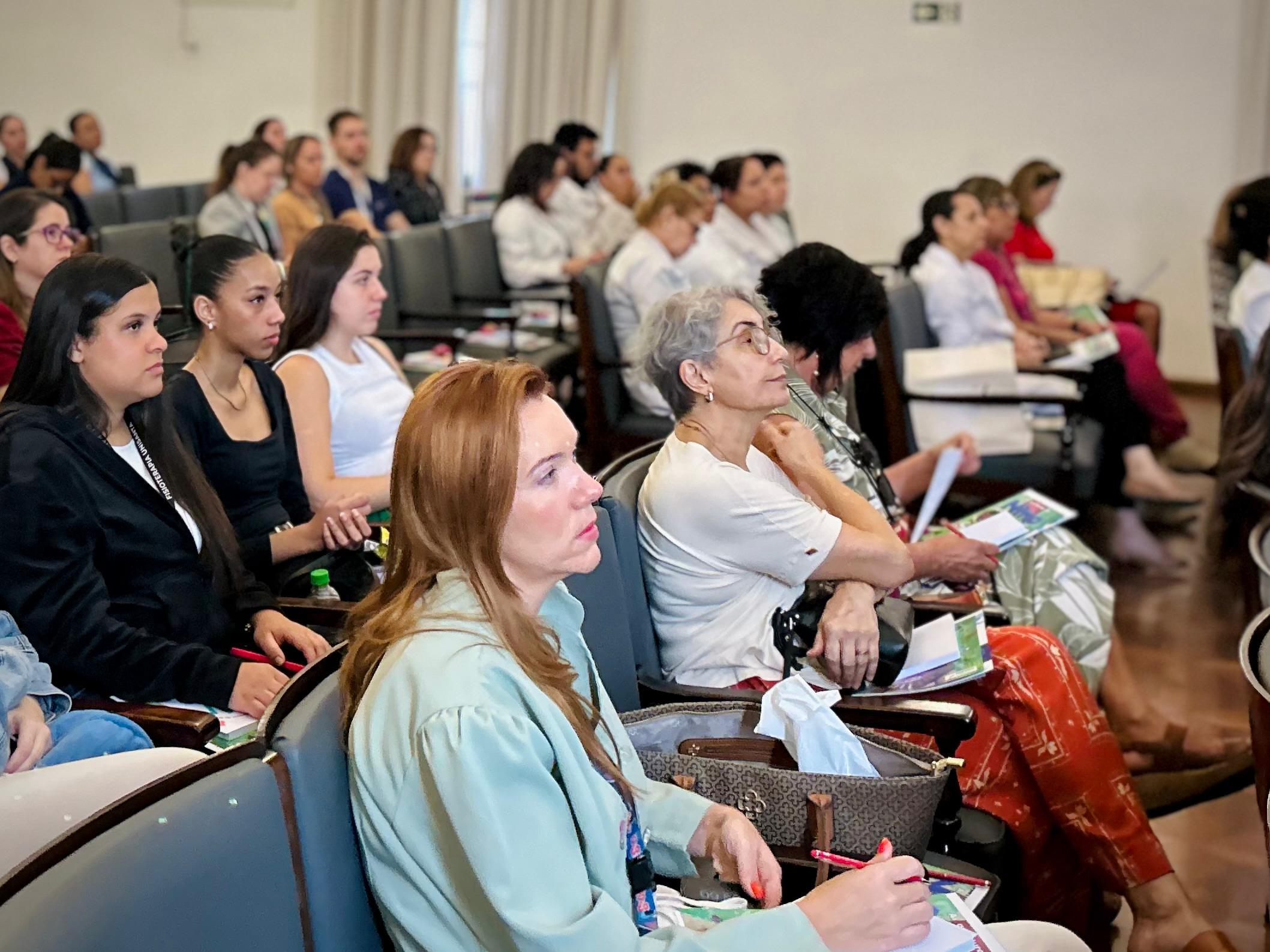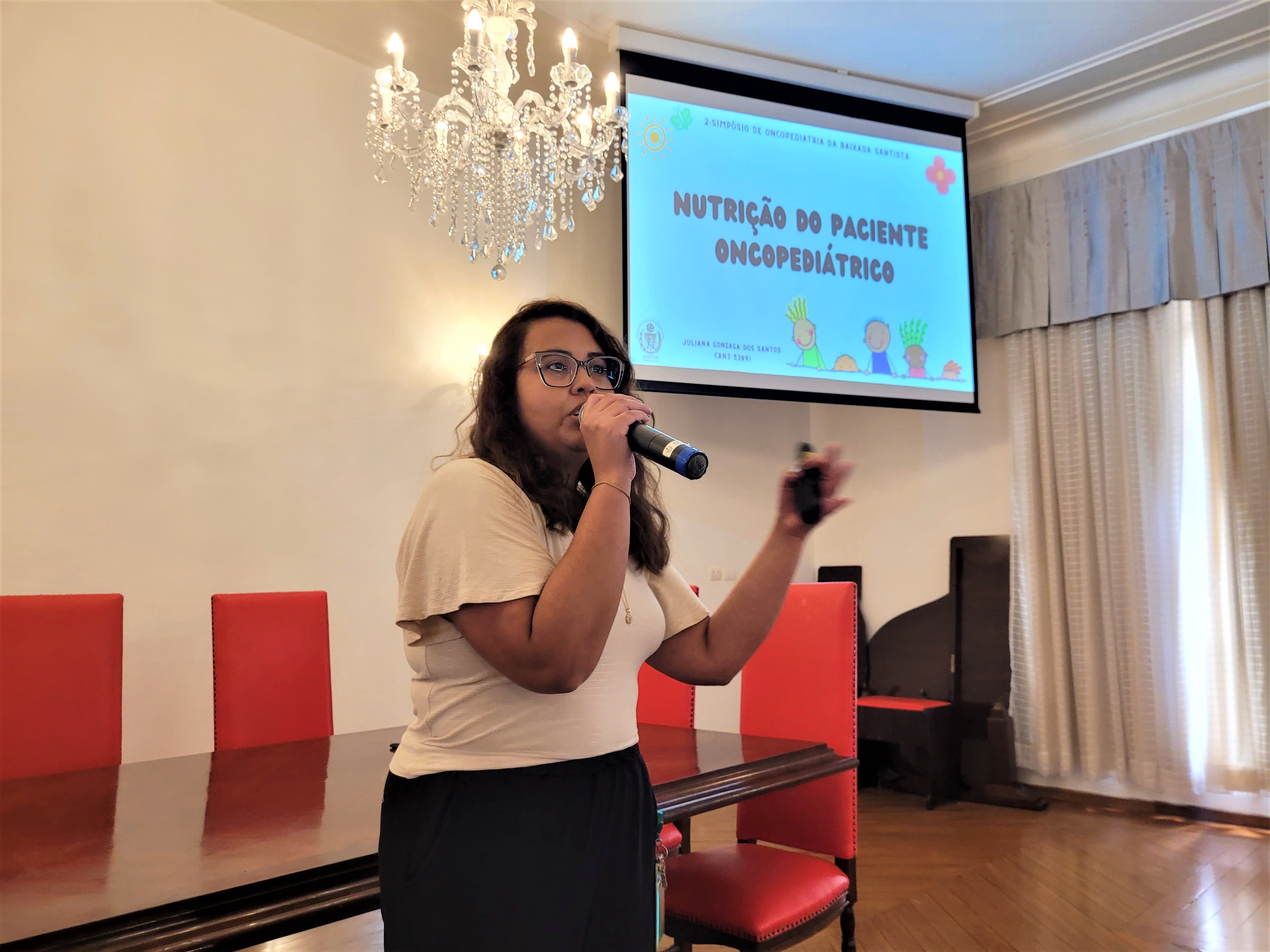 Depois, foi a vez da nutricionista da Santa Casa, Juliana Gonzaga, que explicou sobre a nutrição do paciente oncológico, e da Enfª. Dileiny Geronutti, que falou dos cuidados paliativos em pacientes oncológicos.