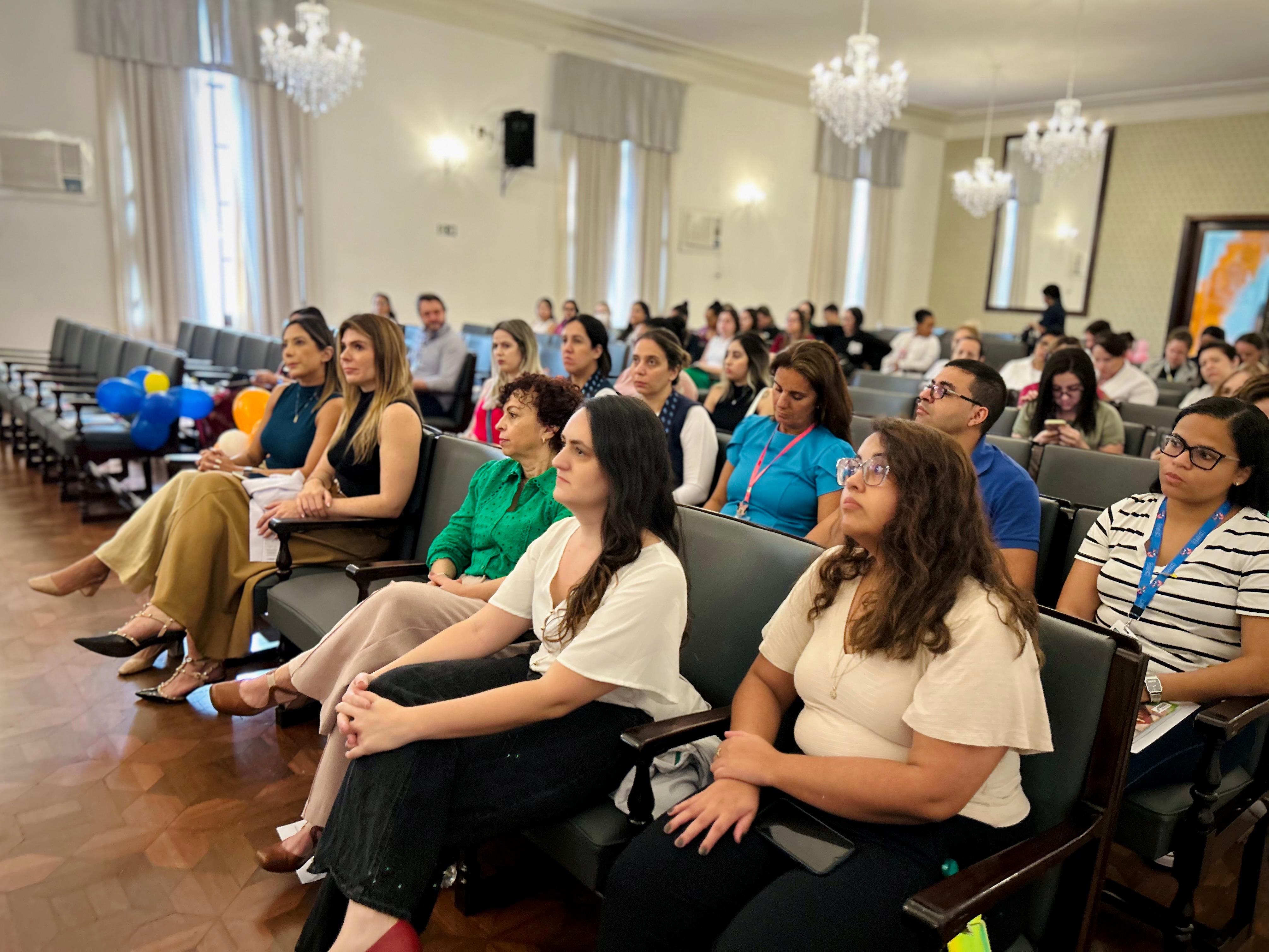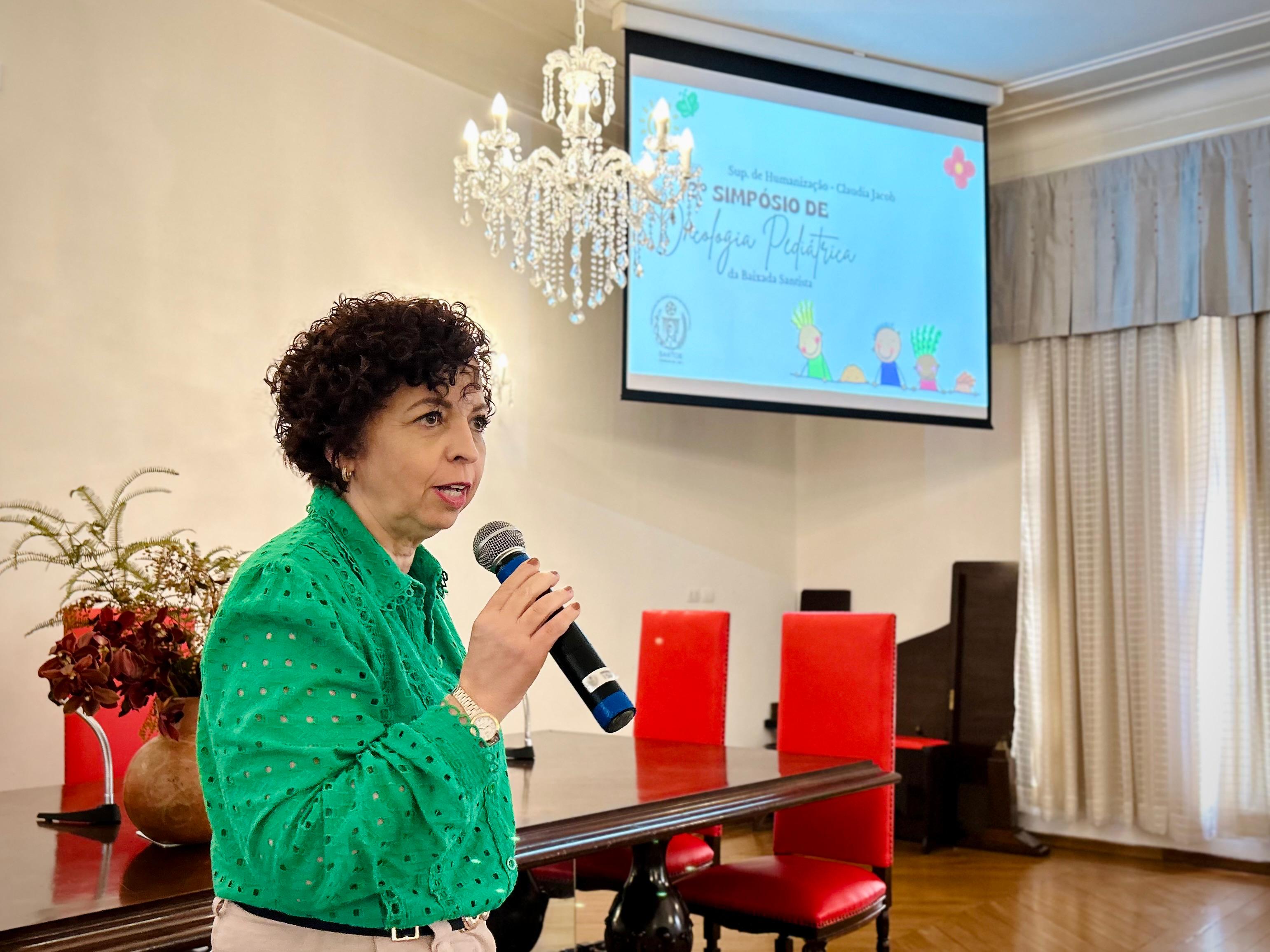 A primeira palestra foi com a assistente social Cláudia Jacob, do Centro Integrado de Humanização, que explicou quais são os profissionais envolvidos na assistência dos pacientes da Oncologia Pediátrica e detalhou o fluxo de atendimento desde antes da chegada no serviço até o acompanhamento pós alta.