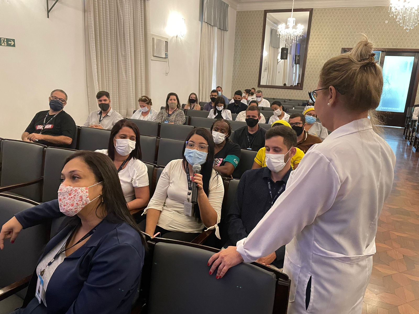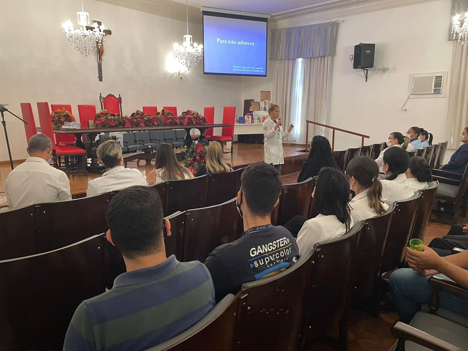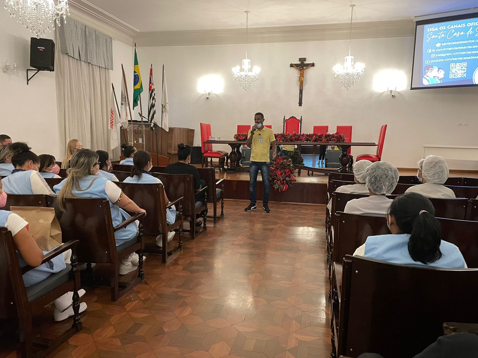Vale destacar que, na noite de ontem, das 19h às 21h, completando a programação do 2º dia de evento, e para atender os funcionários do noturno, aconteceram também as palestras “Serviço de Controle Hospitalar: O que você não sabia”, com o Enfº Sérgio Félix Cardoso, e “Prevenção de Acidentes de Trabalho e Trajeto”, com o Técnico de Segurança do Trabalho, Flávio Leite, que apresentou o tema novamente para contemplar as equipes que não puderam participar no período da manhã.