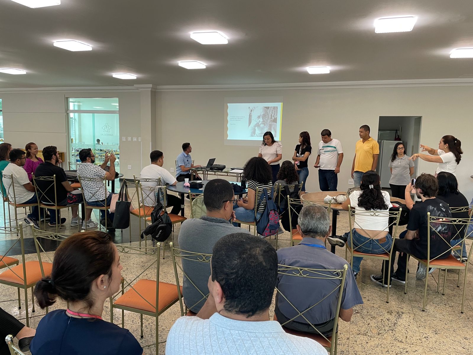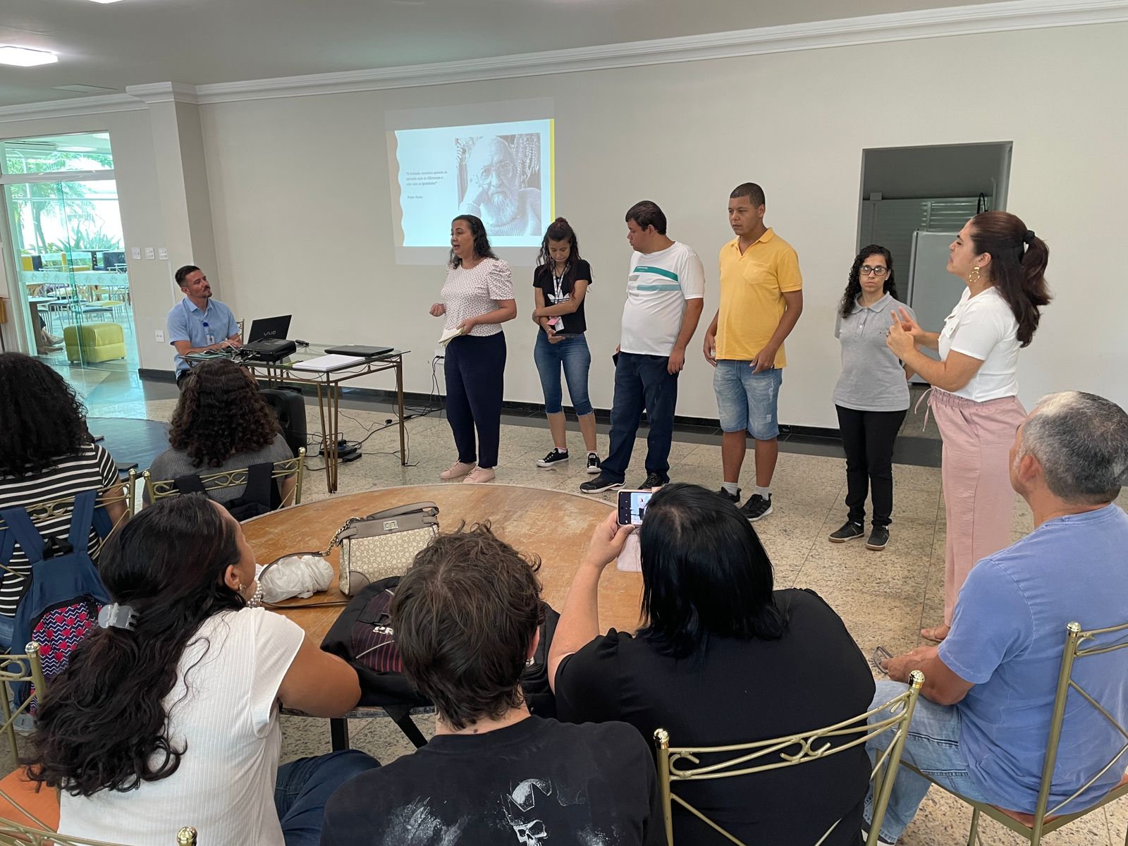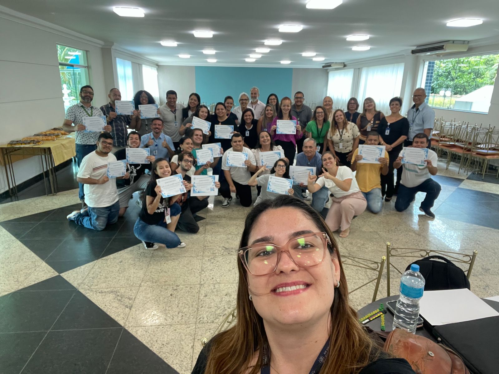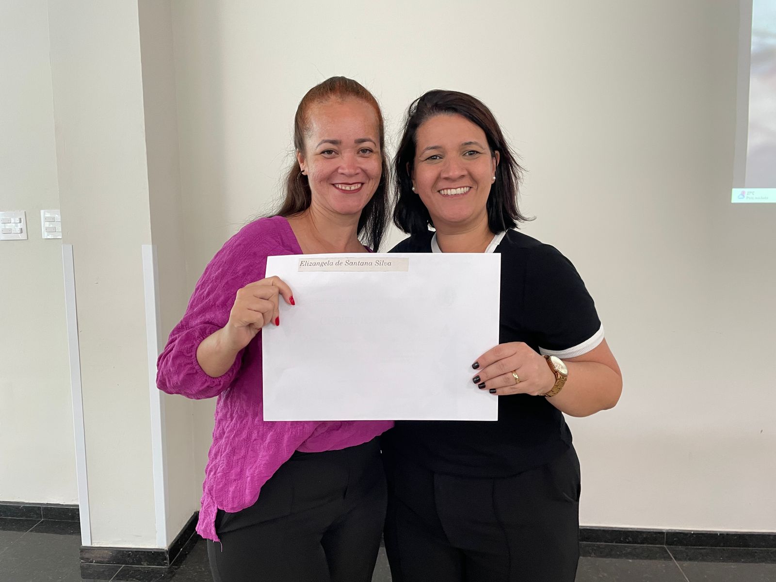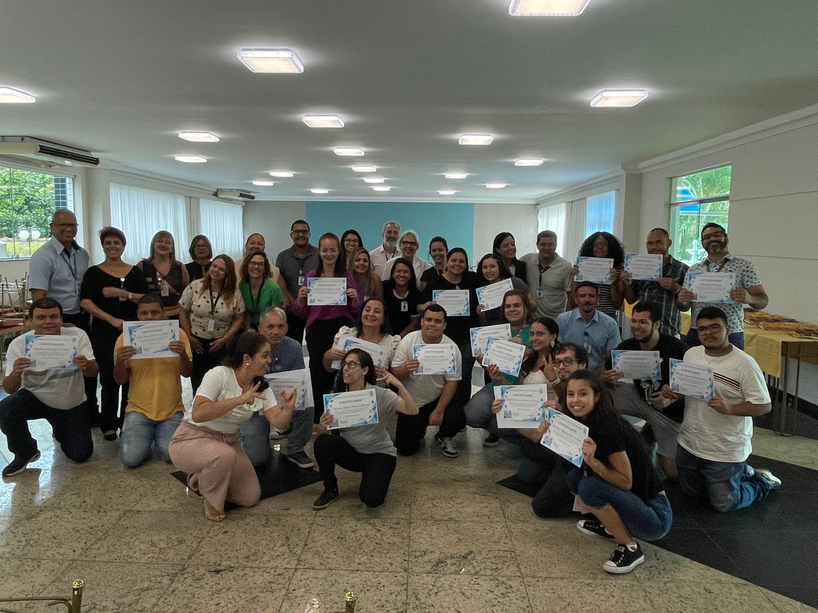Após a apresentação, que foi aplaudida e aprovada por todos os presentes, os certificados foram entregues aos participantes pelos profissionais que ministraram as aulas, como forma de reconhecimento pela dedicação e empenho no compartilhamento de conhecimento.