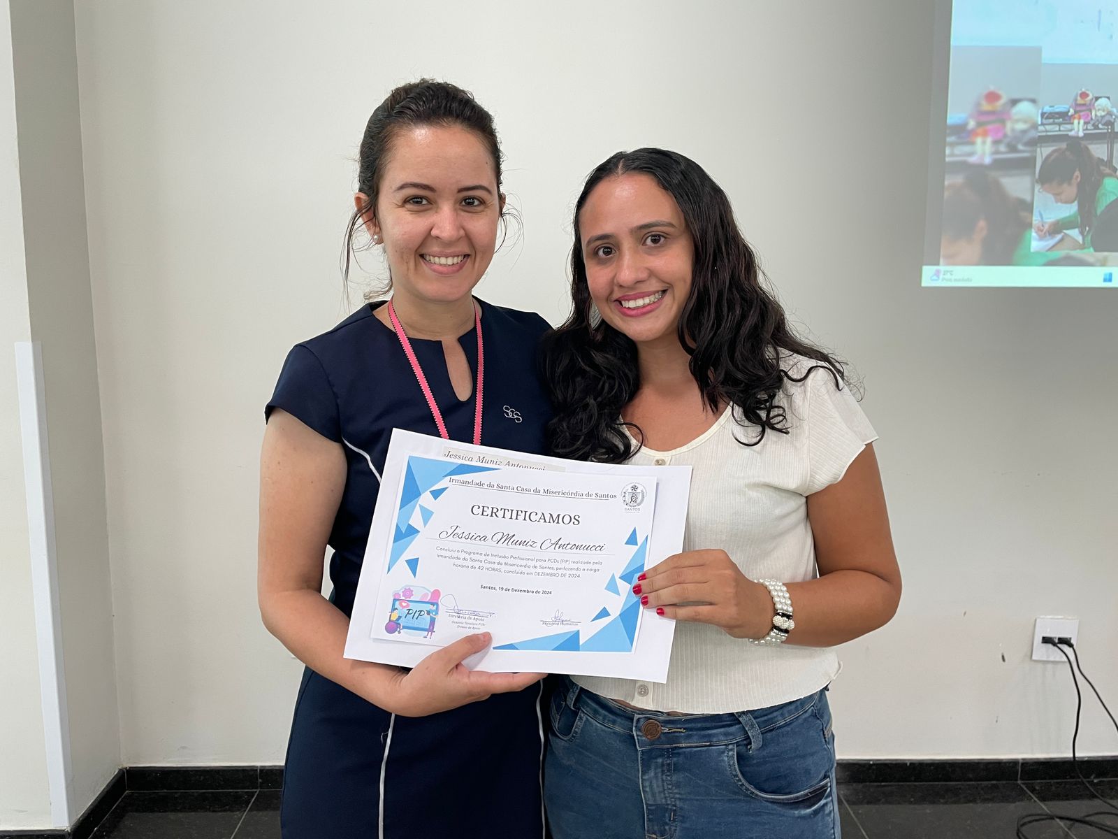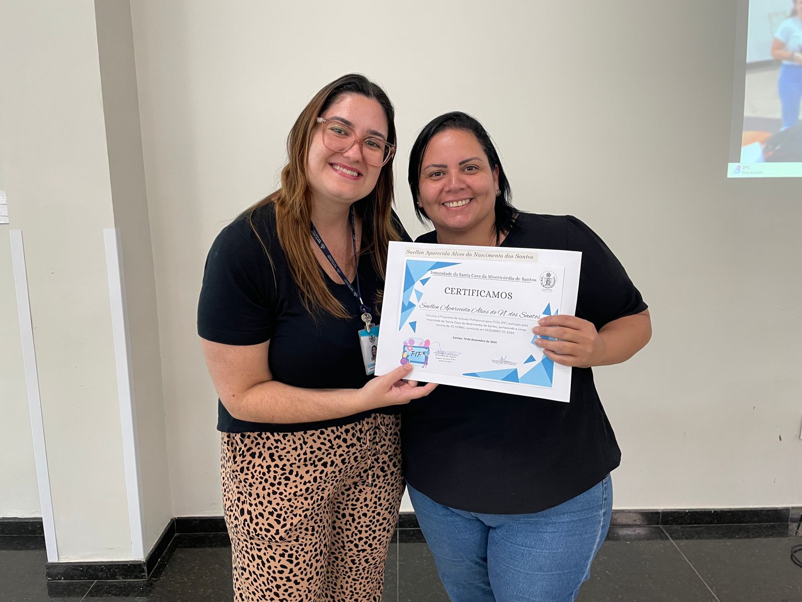 A cerimônia de encerramento para a entrega de certificados aconteceu no salão da Abrescas, com as presenças do vice provedor da Santa Casa, Carlos Teixeira Filho, e do diretor de apoio, Octavio Tavolaro Filho.